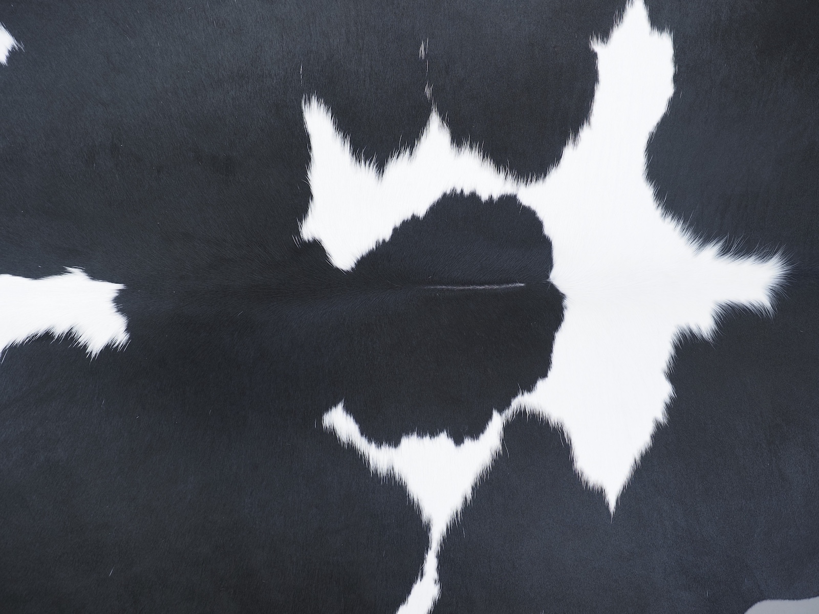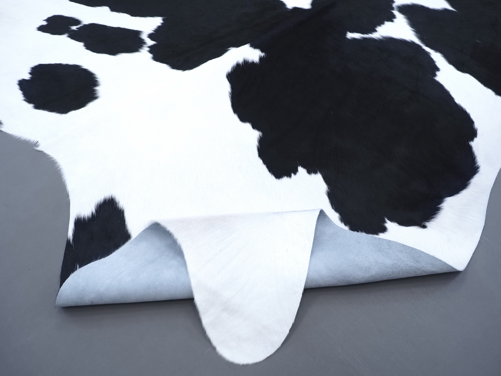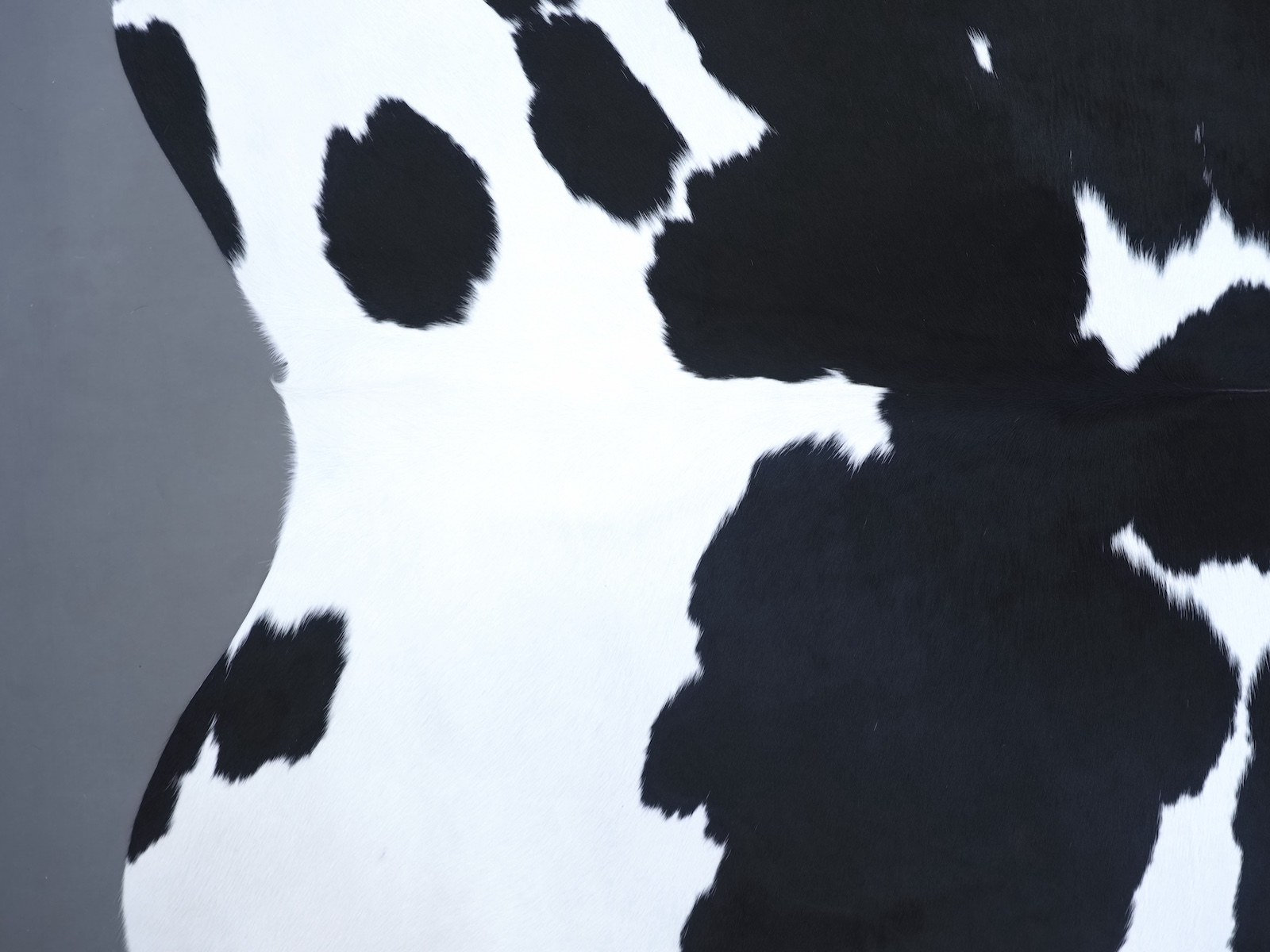 Шкура коровья натуральная черно-белая - порода характеризуется черно-белыми крупными пятнами, может иметь оттенок горького шоколада, имеет блеск волосяного покрова.