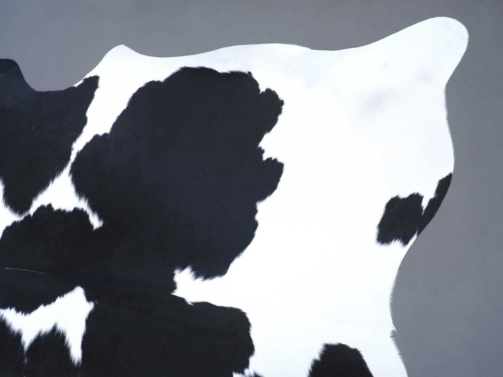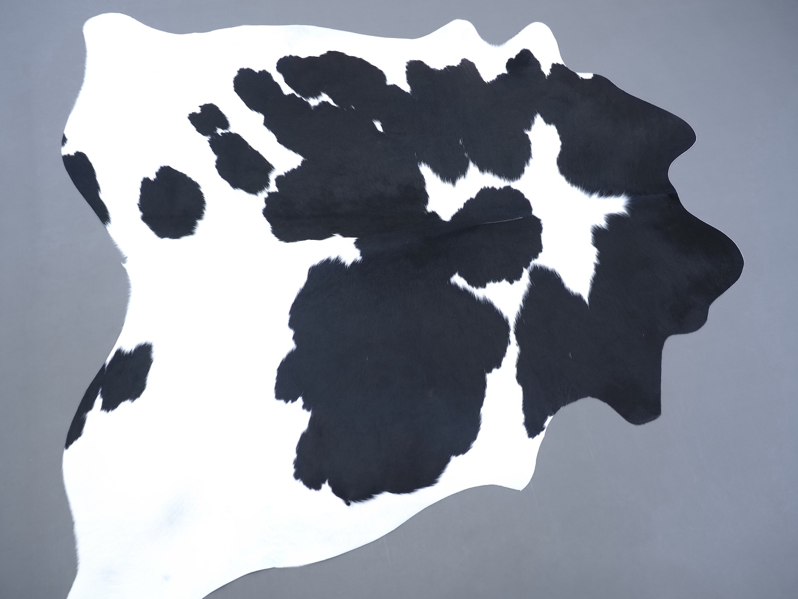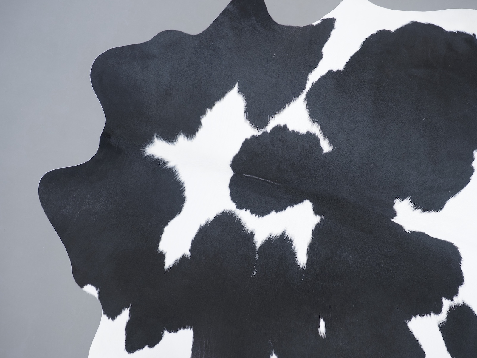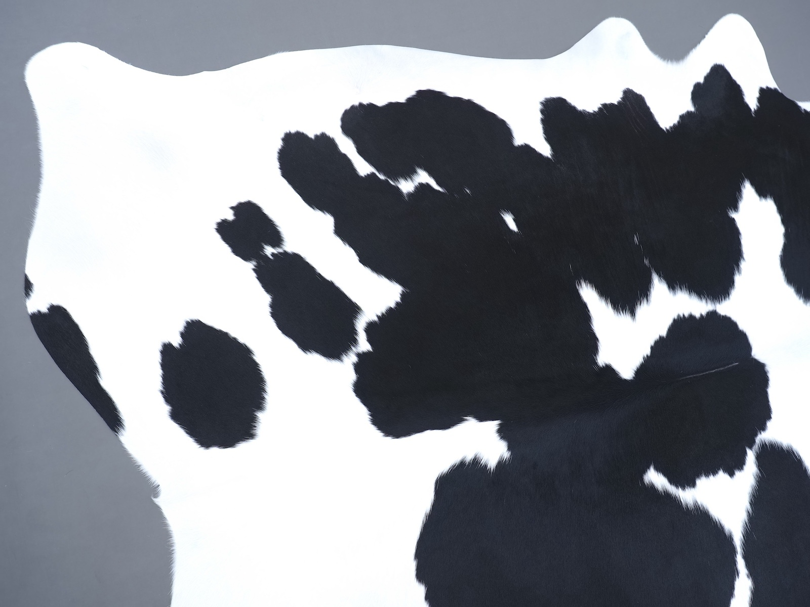 Шкура коровья натуральная черно-белая - порода характеризуется черно-белыми крупными пятнами, может иметь оттенок горького шоколада, имеет блеск волосяного покрова.