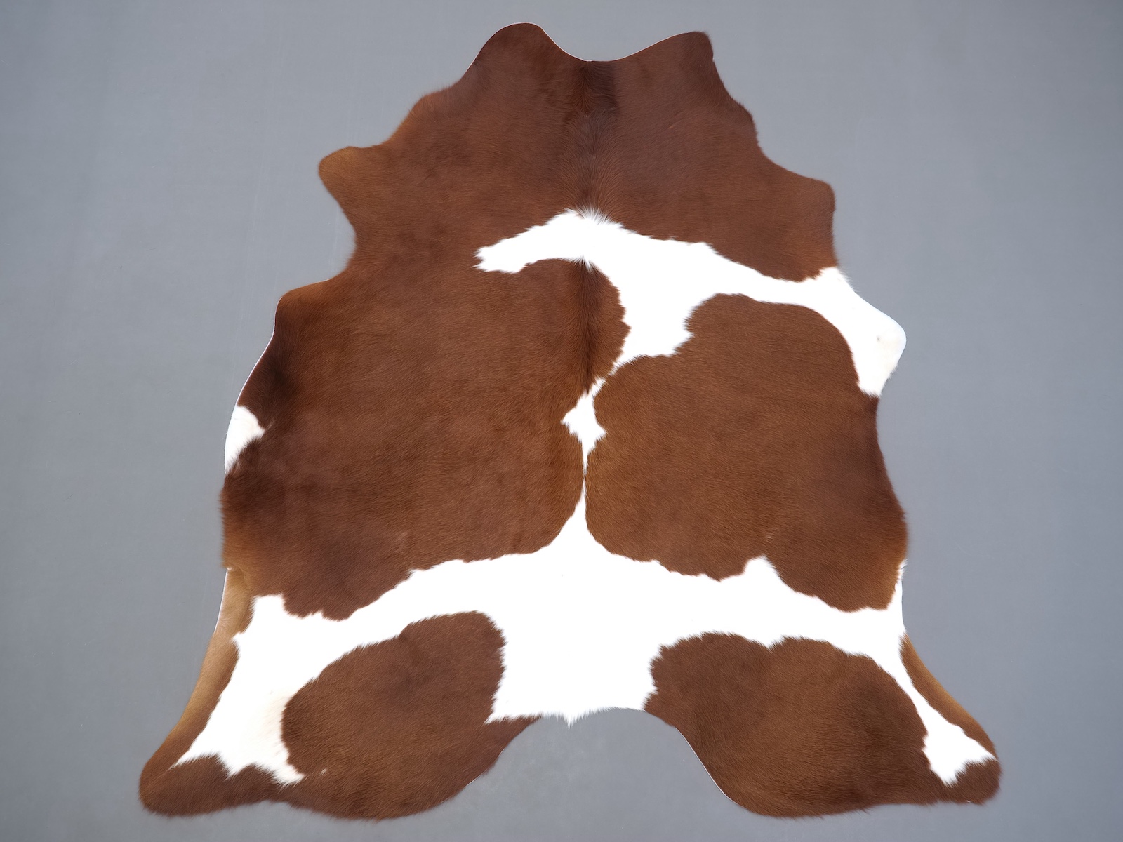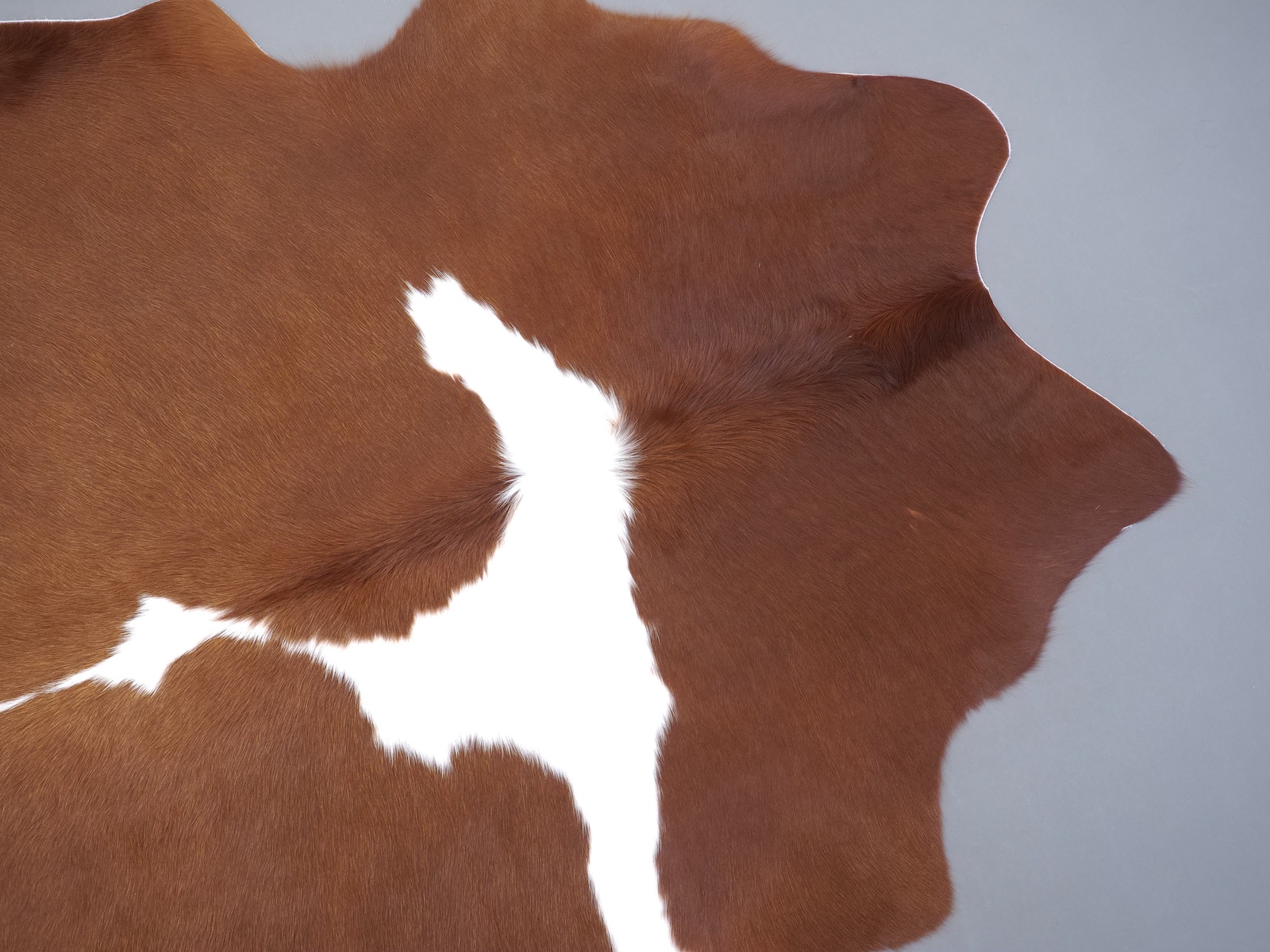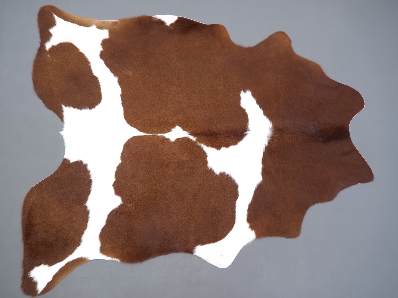 Натуральная шкура коровы коричнево-белая — порода характерезуется крупными пятнами на белом, блеск волосяного покрова.