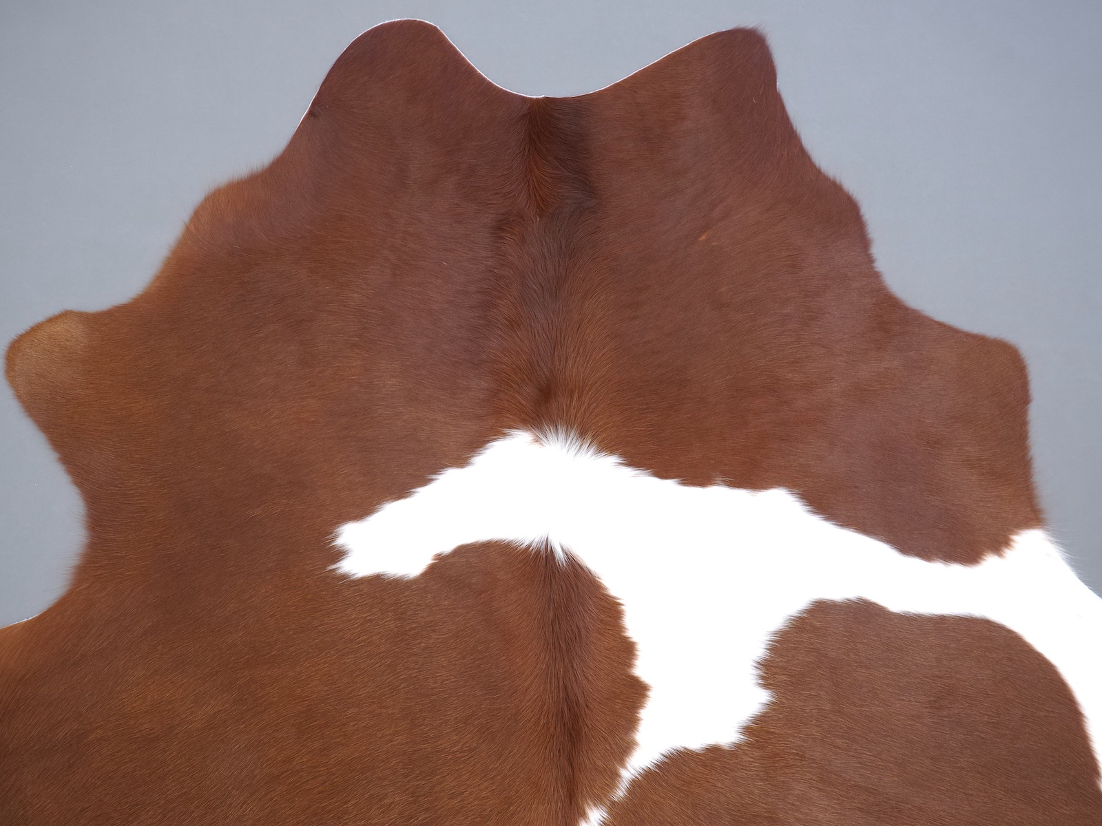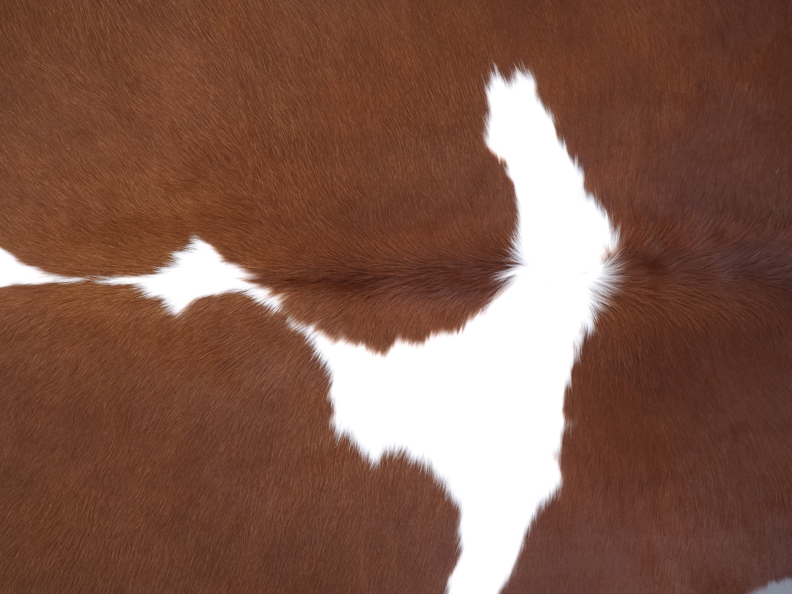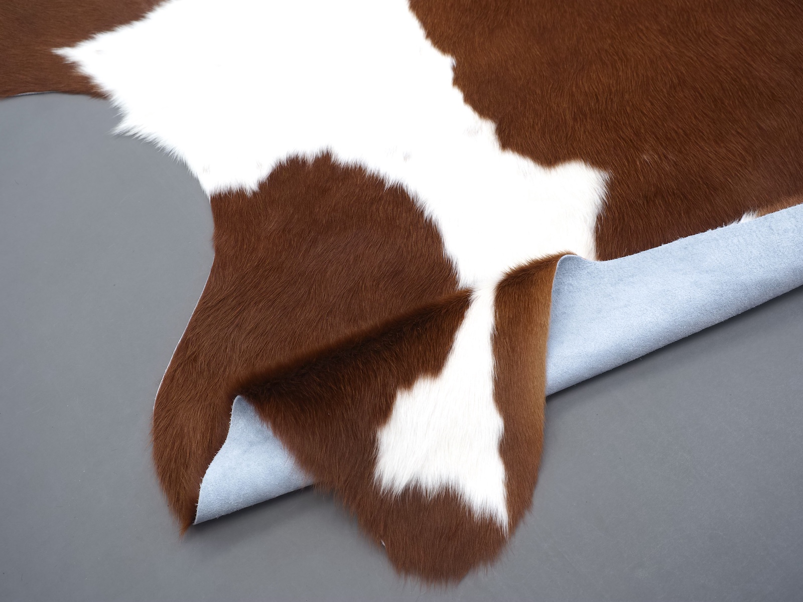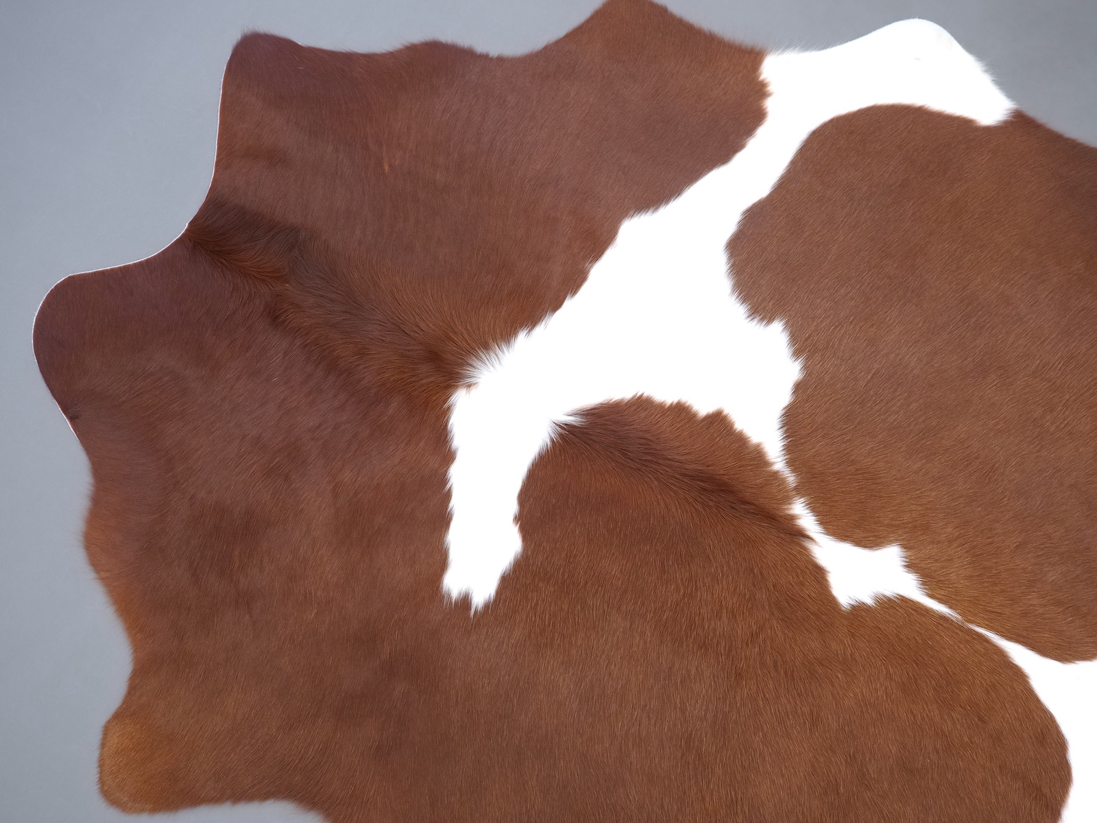 Натуральная шкура коровы коричнево-белая — порода характерезуется крупными пятнами на белом, блеск волосяного покрова.