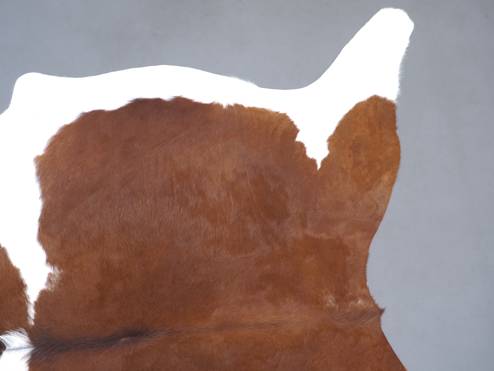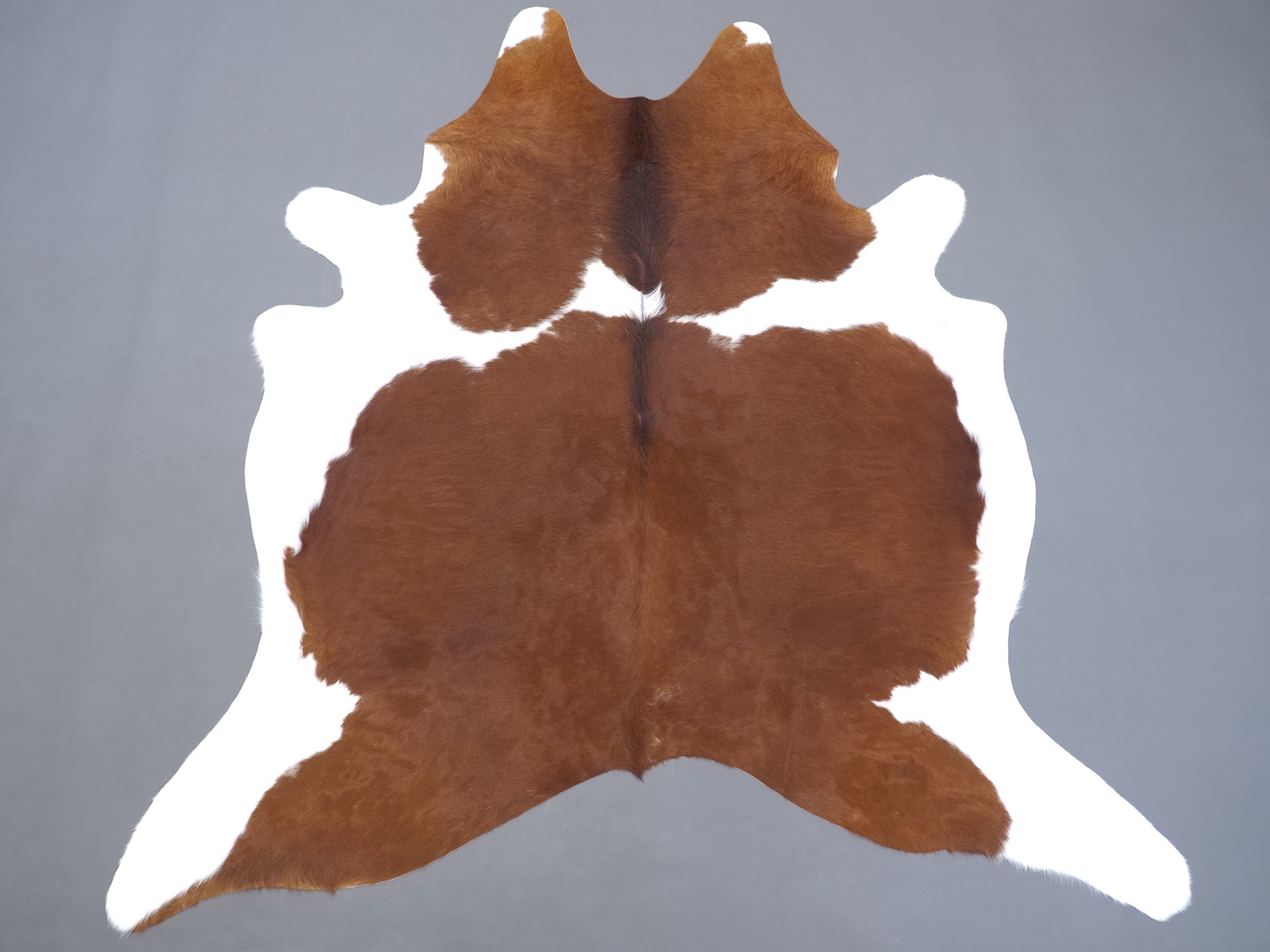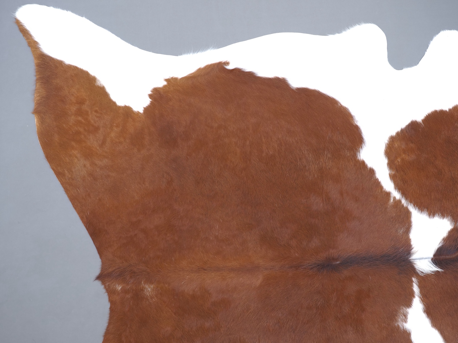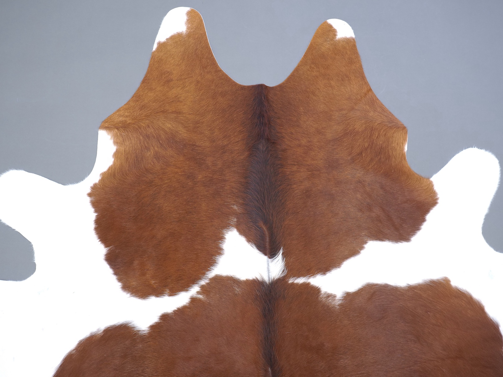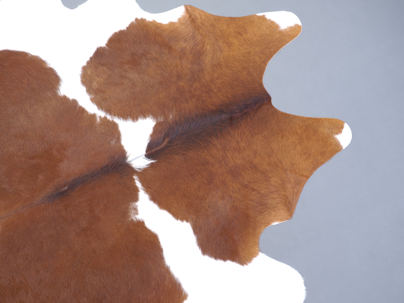 Натуральная шкура коровы коричнево-белая — порода характерезуется крупными пятнами на белом, блеск волосяного покрова.