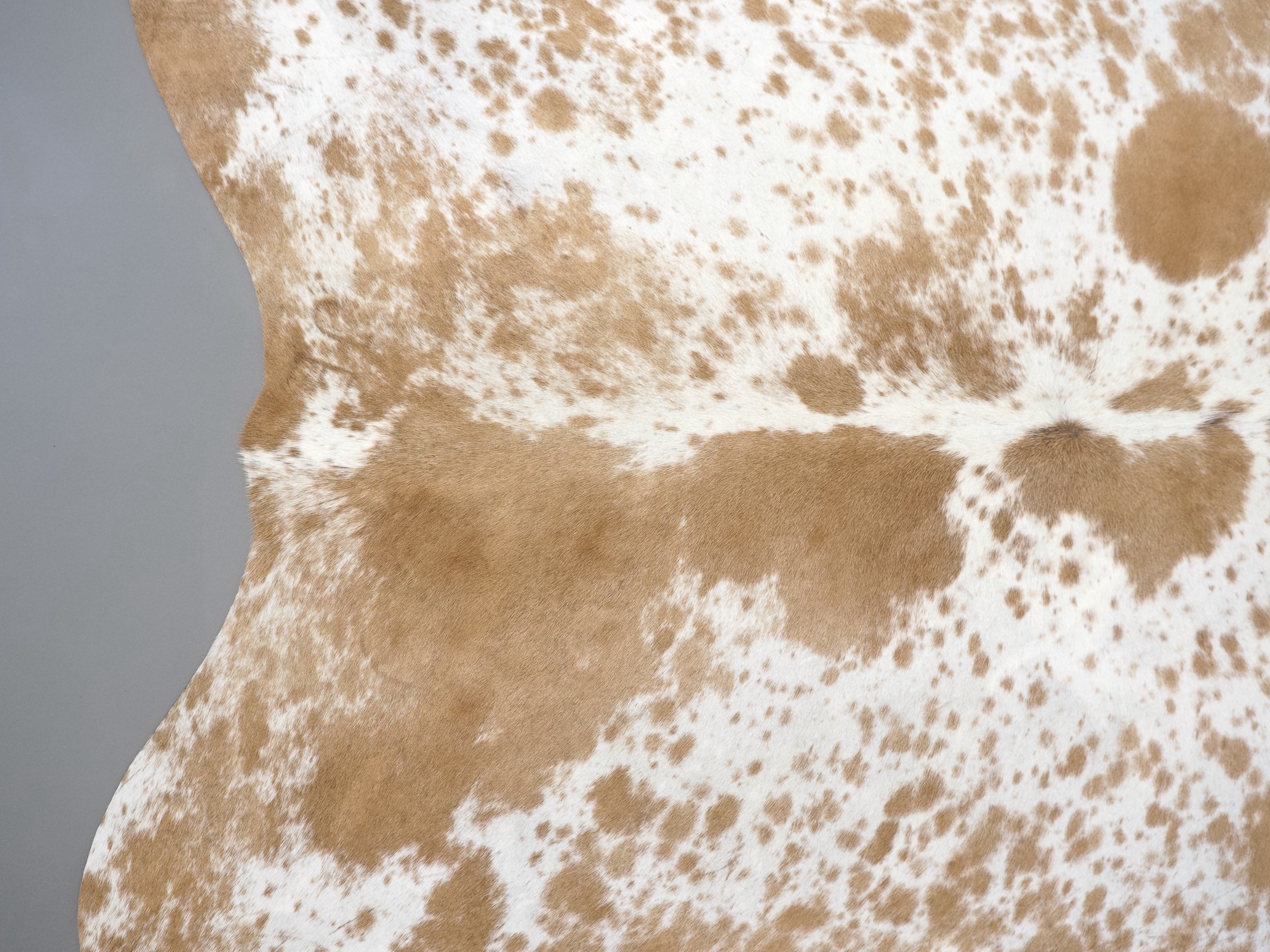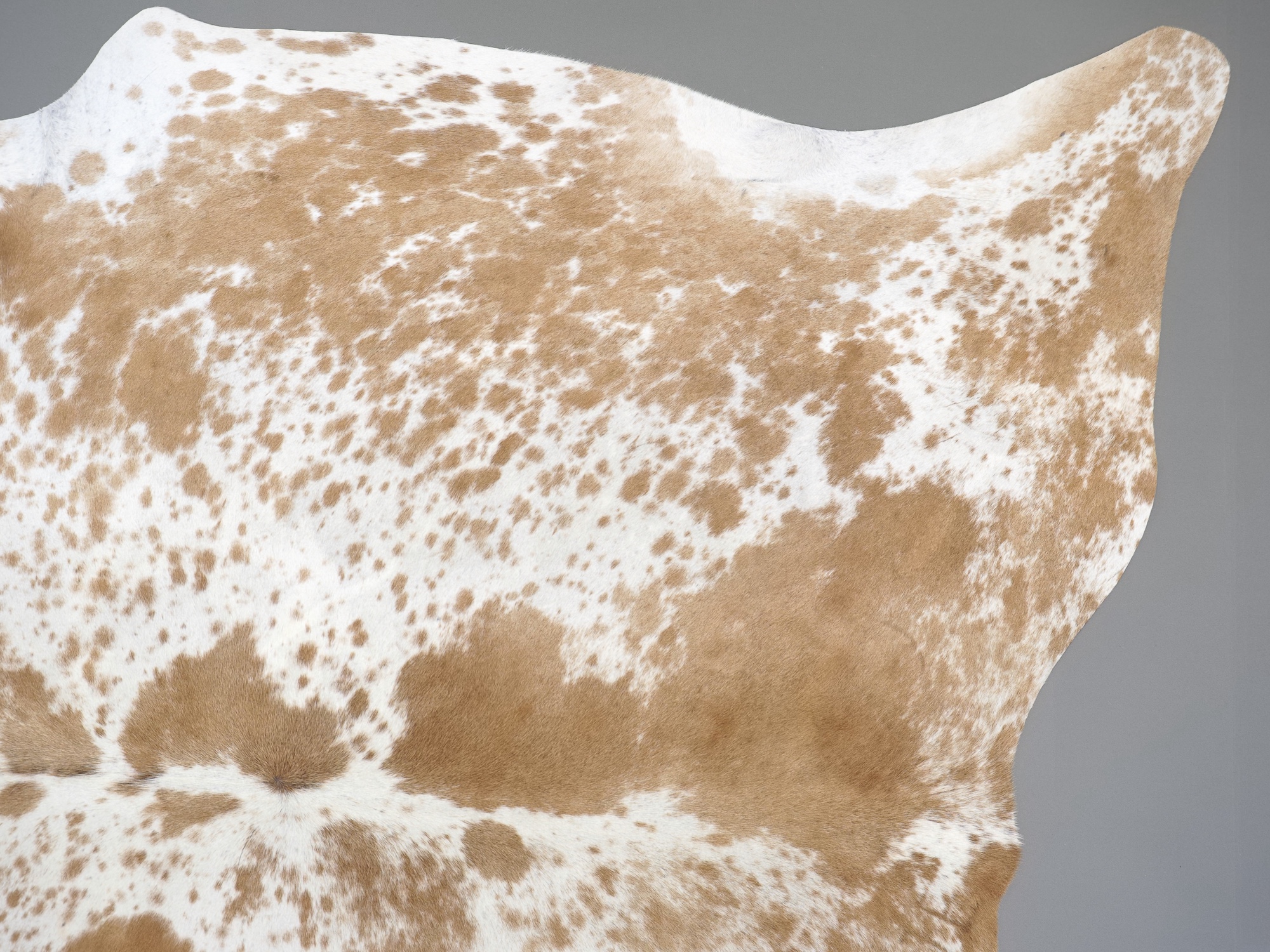 Натуральная шкура коровы коричнево-белая — порода характерезуется крупными пятнами на белом, блеск волосяного покрова.