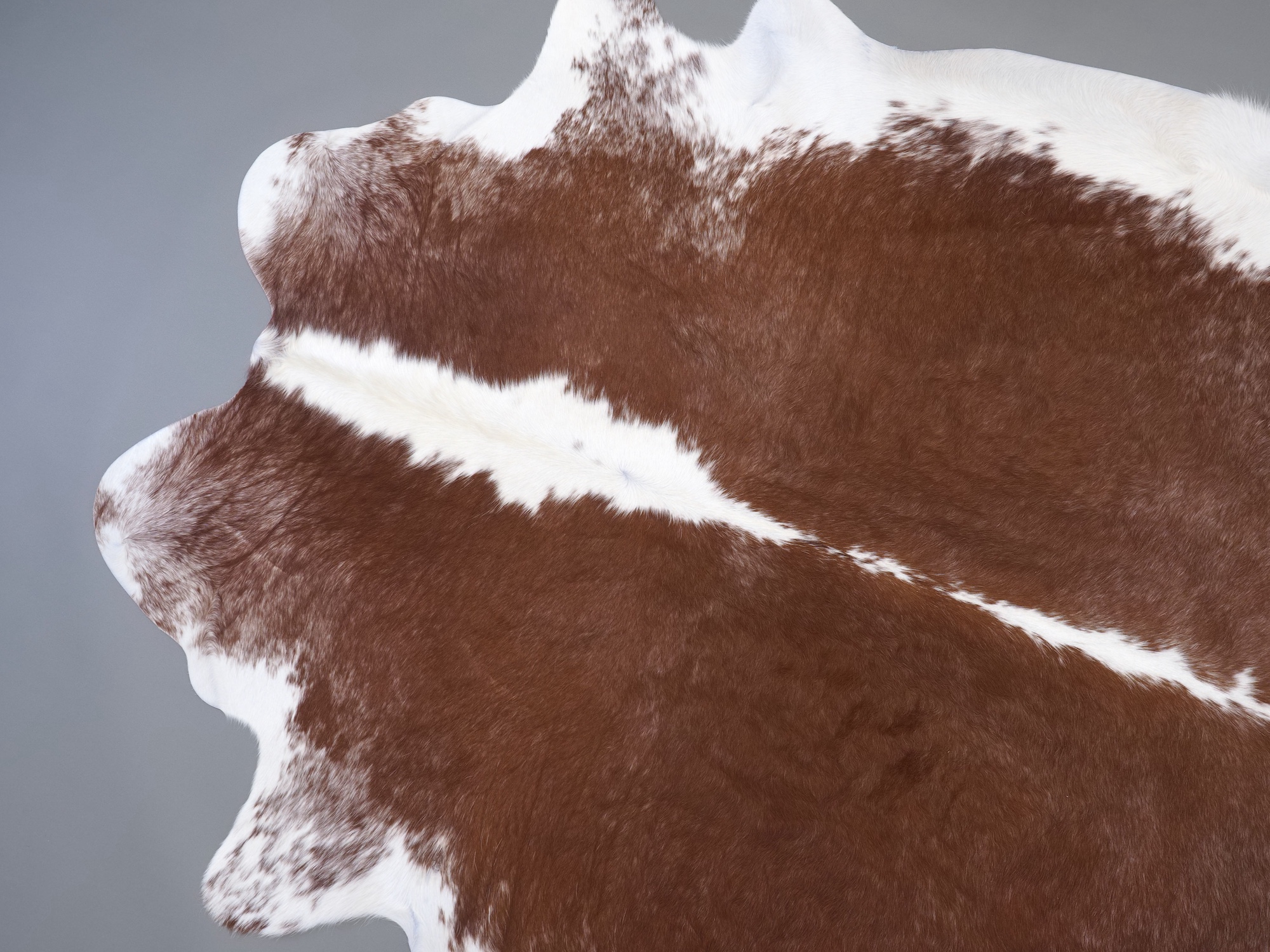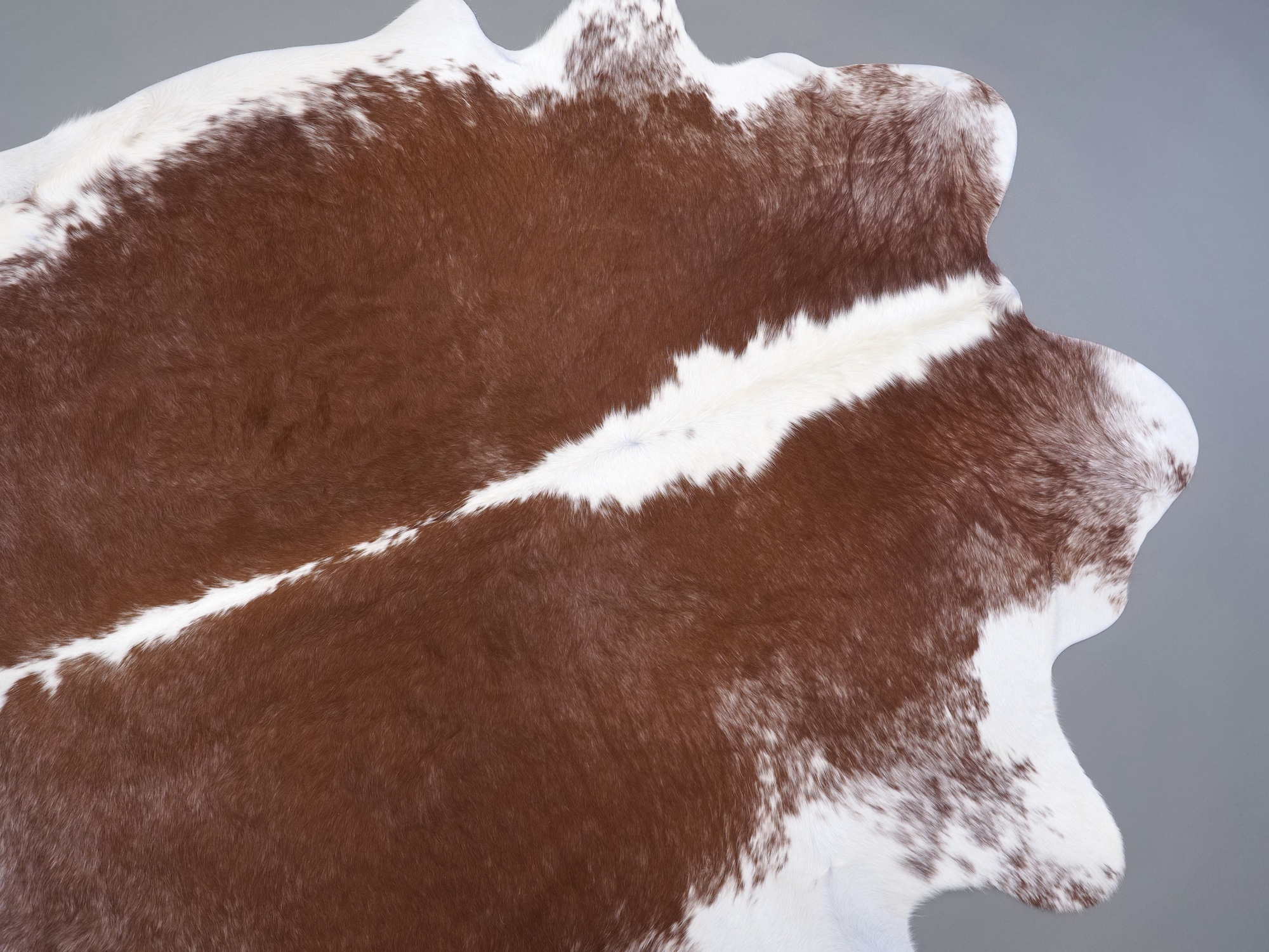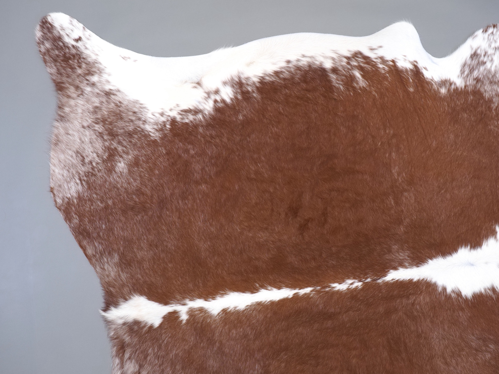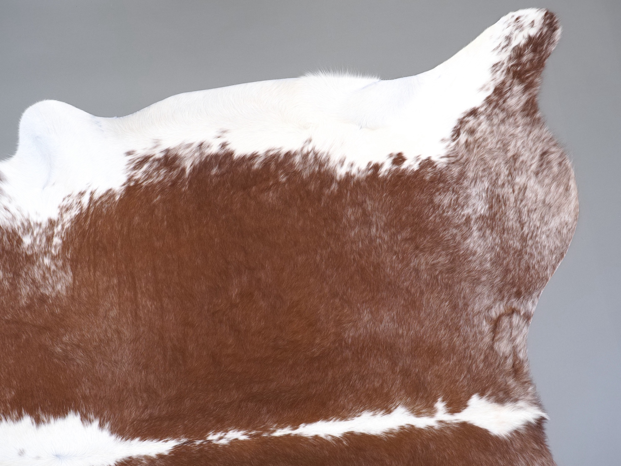 Натуральная шкура коровы коричнево-белая — порода характерезуется крупными пятнами на белом, блеск волосяного покрова.
