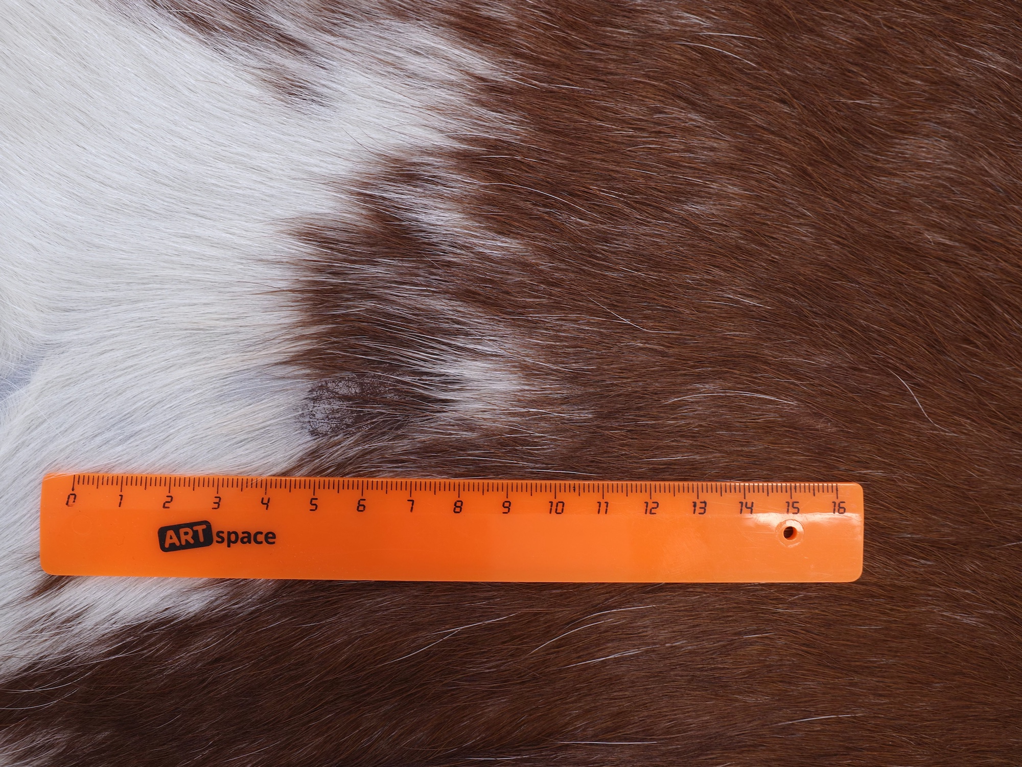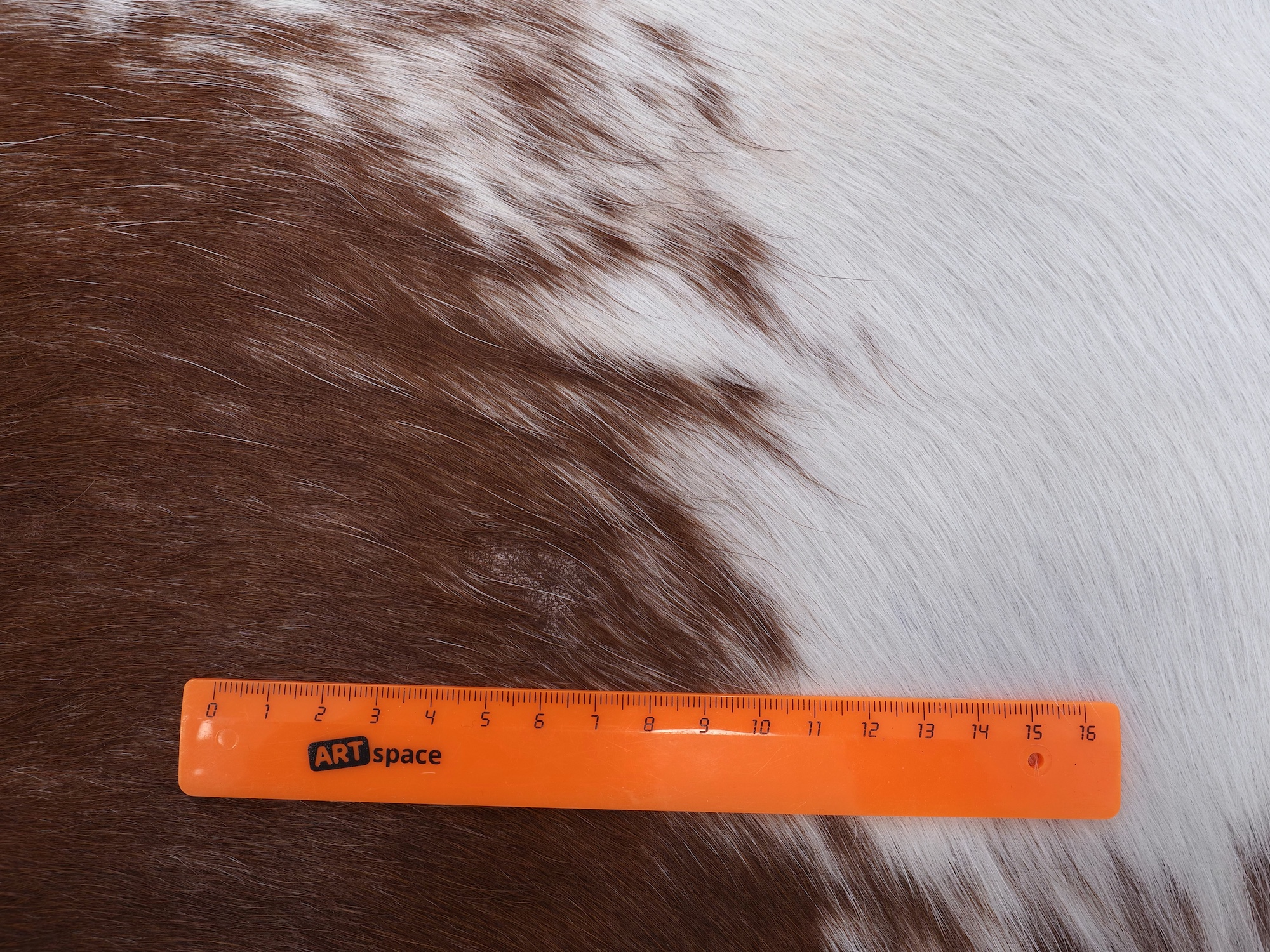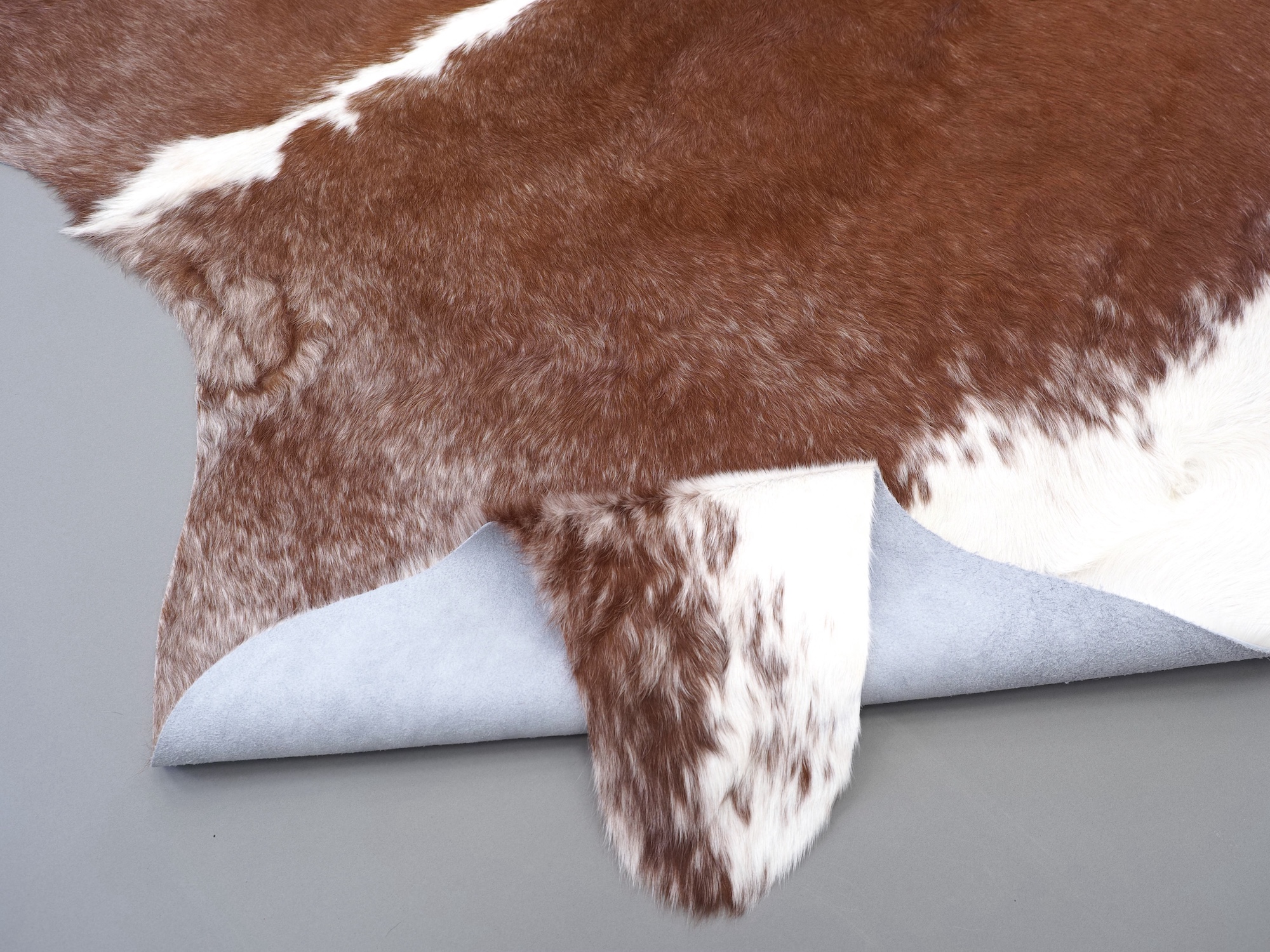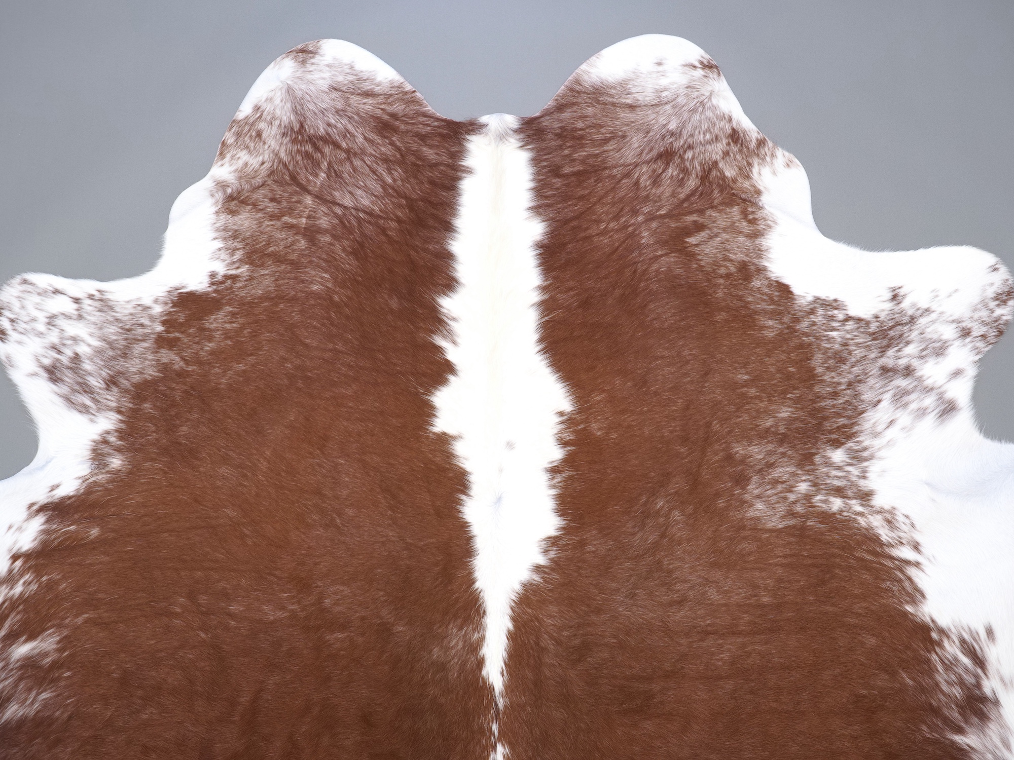 Натуральная шкура коровы коричнево-белая — порода характерезуется крупными пятнами на белом, блеск волосяного покрова.