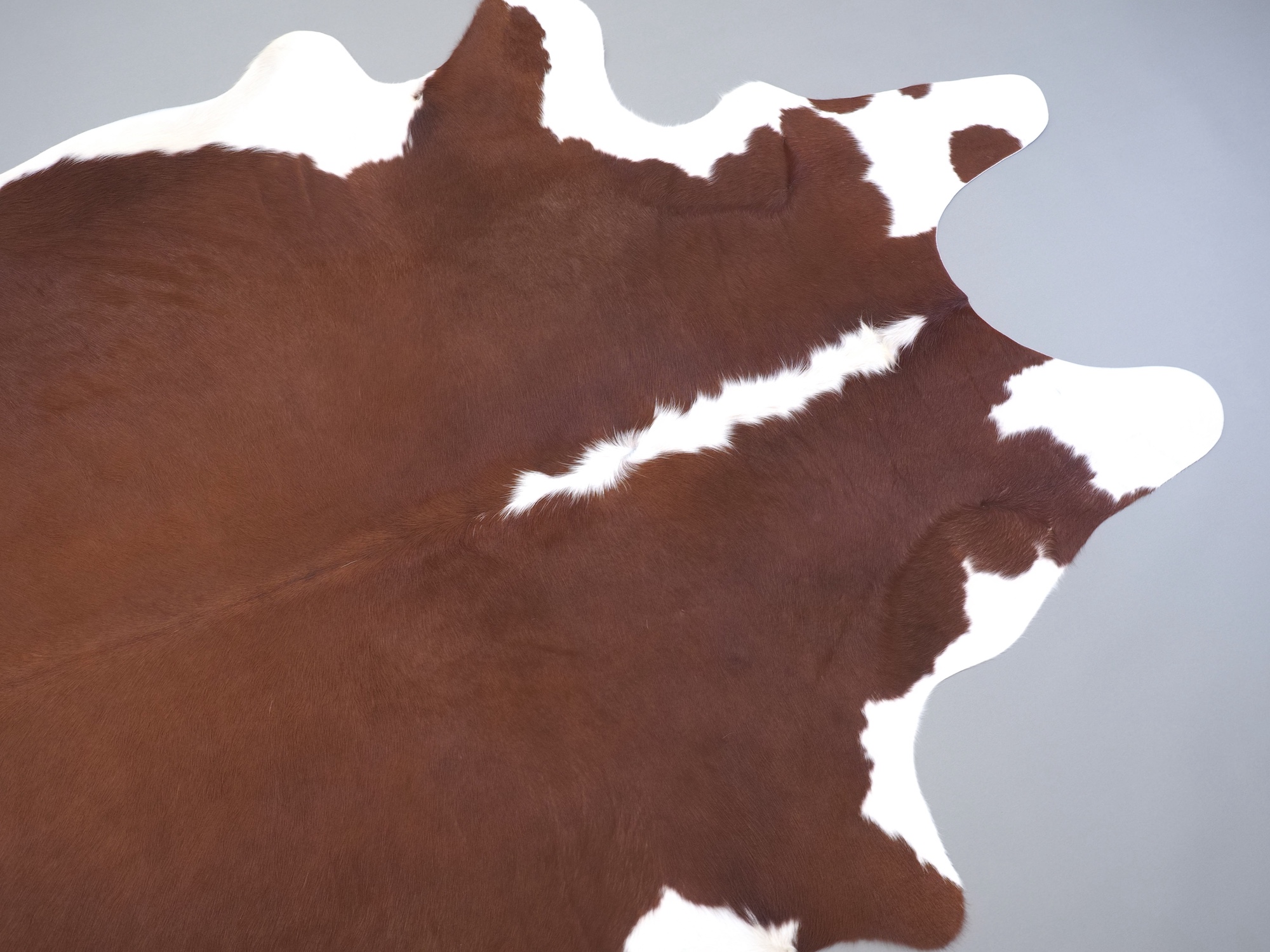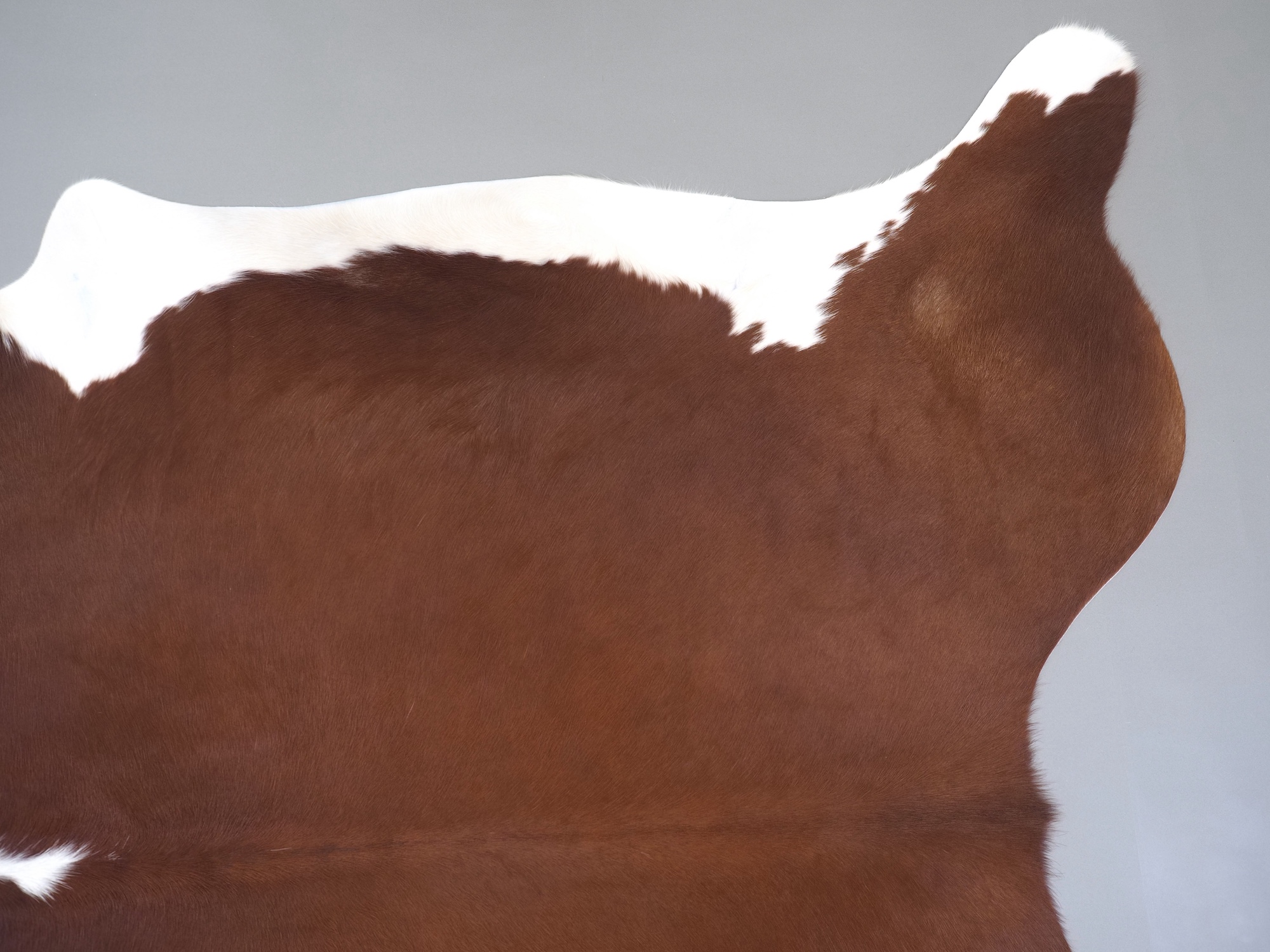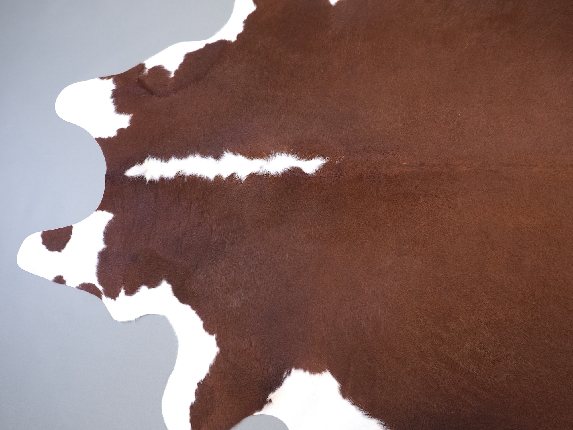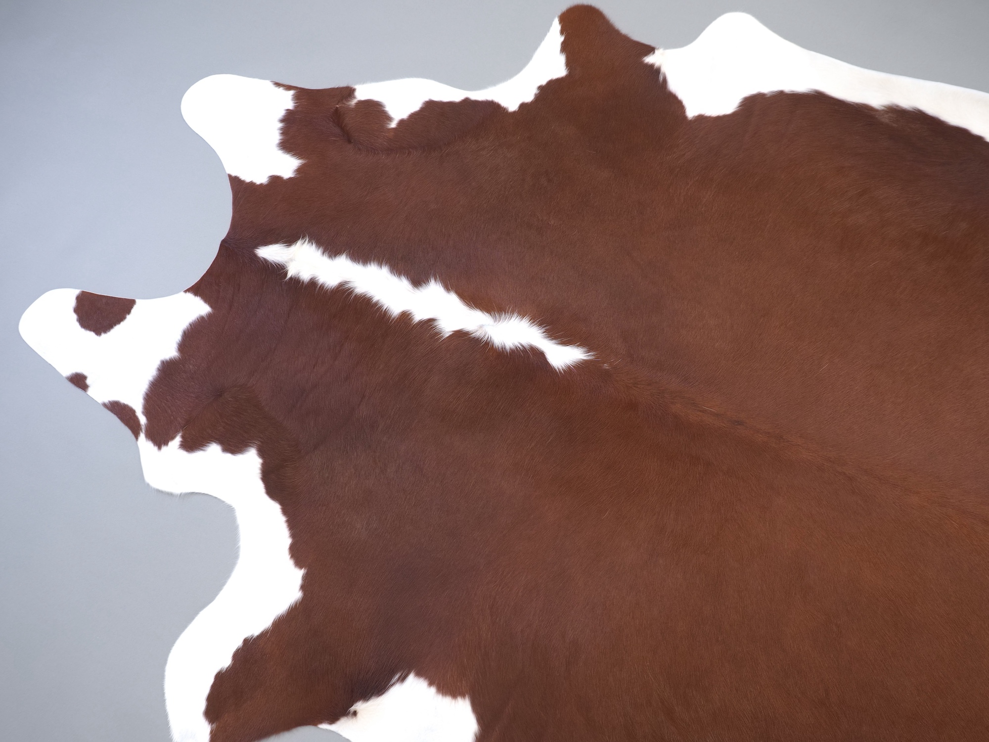 Натуральная шкура коровы коричнево-белая — порода характерезуется крупными пятнами на белом, блеск волосяного покрова.