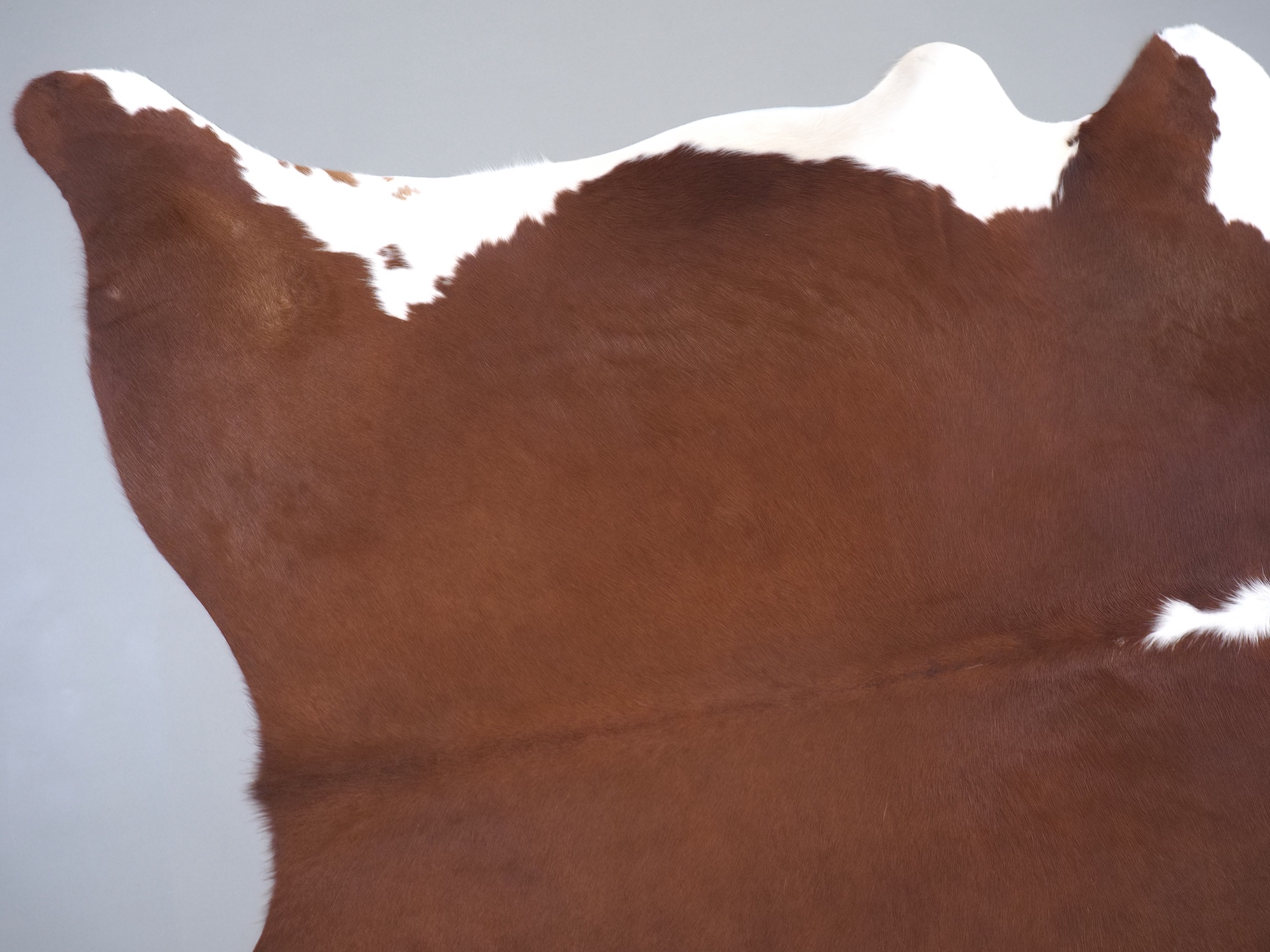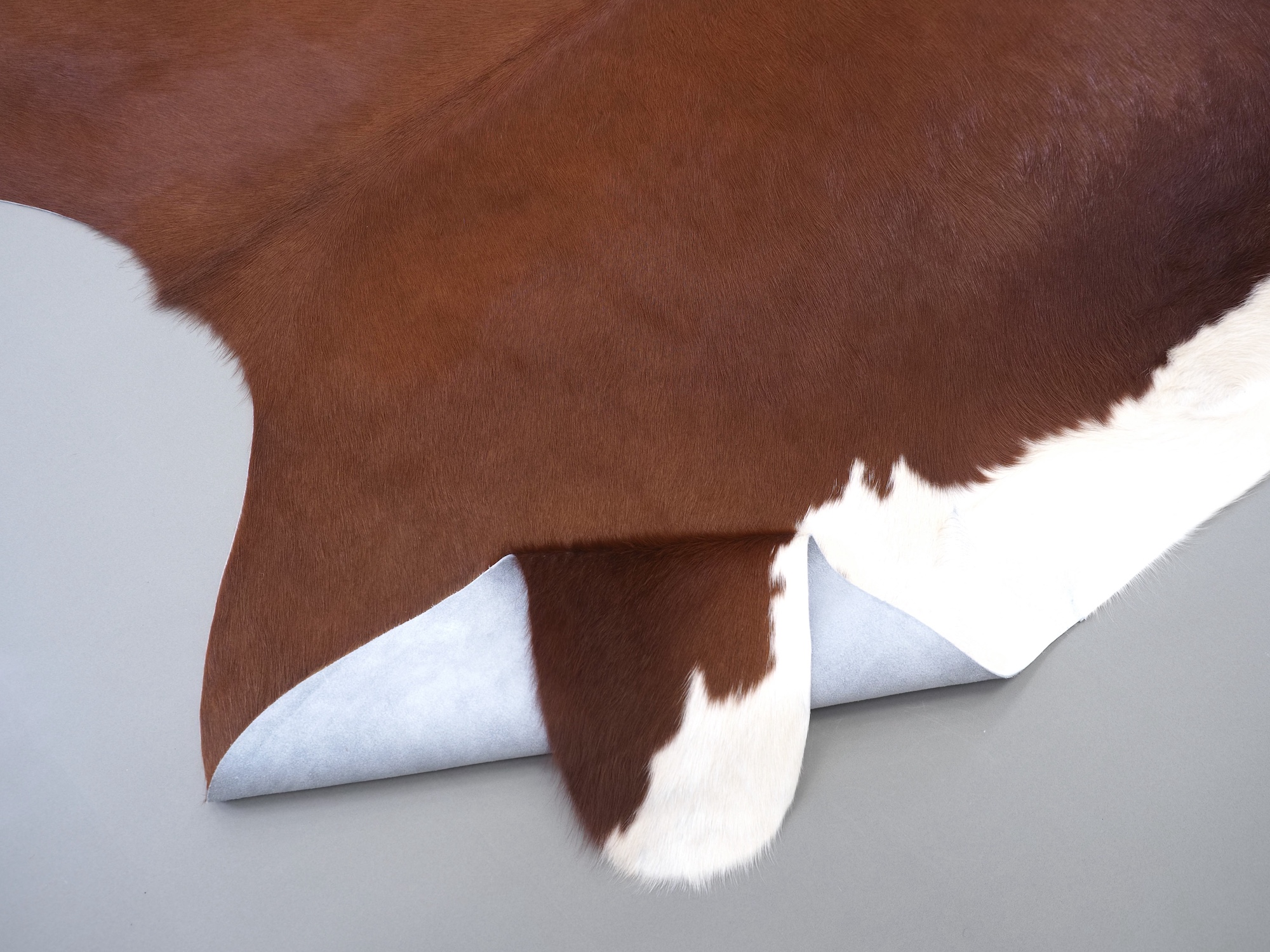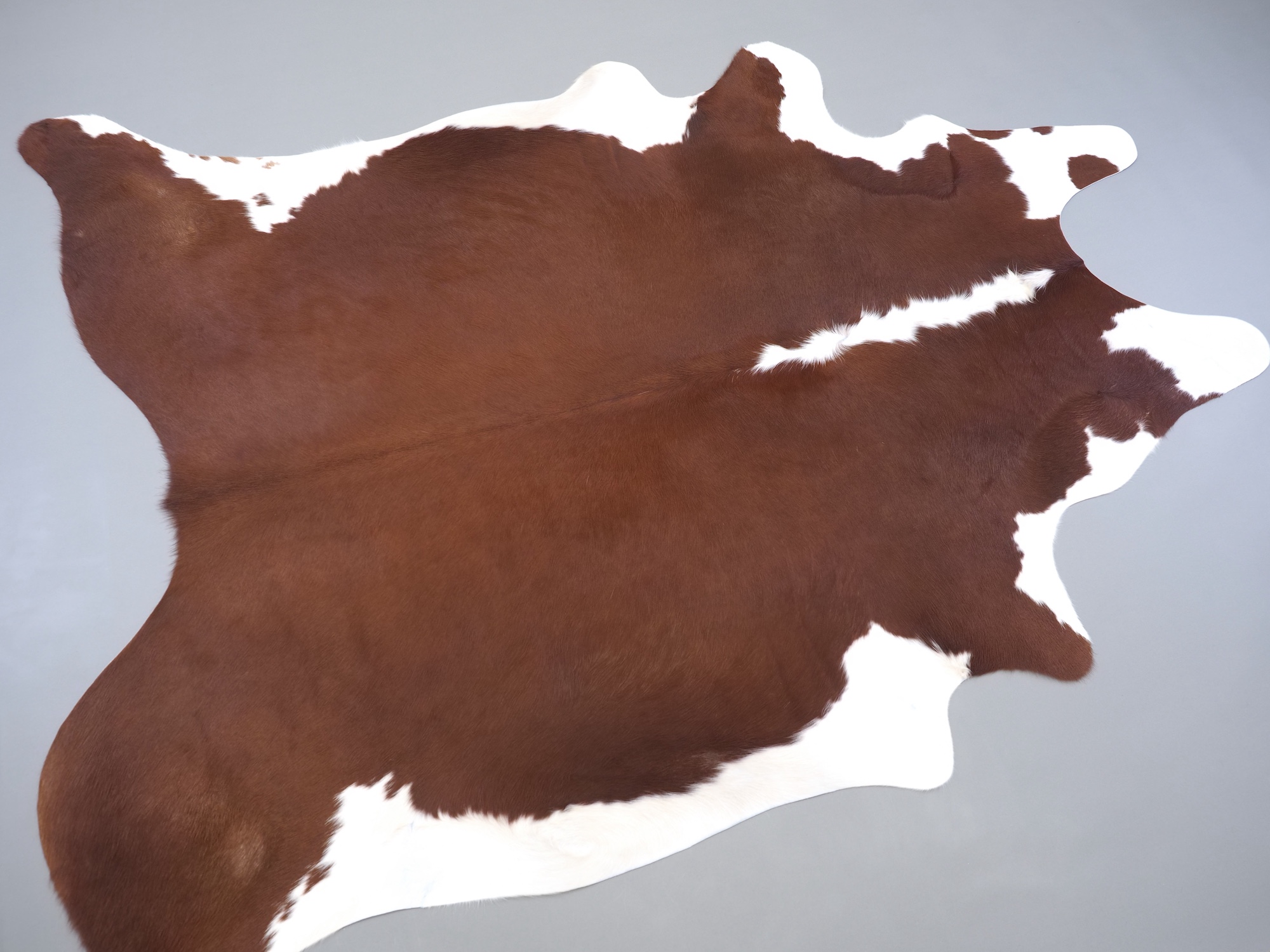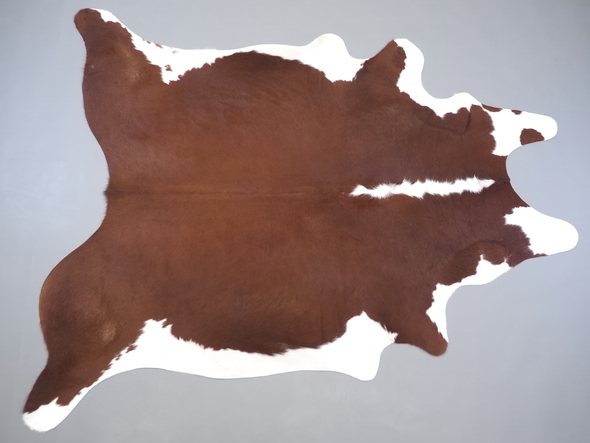Натуральная шкура коровы коричнево-белая — порода характерезуется крупными пятнами на белом, блеск волосяного покрова.