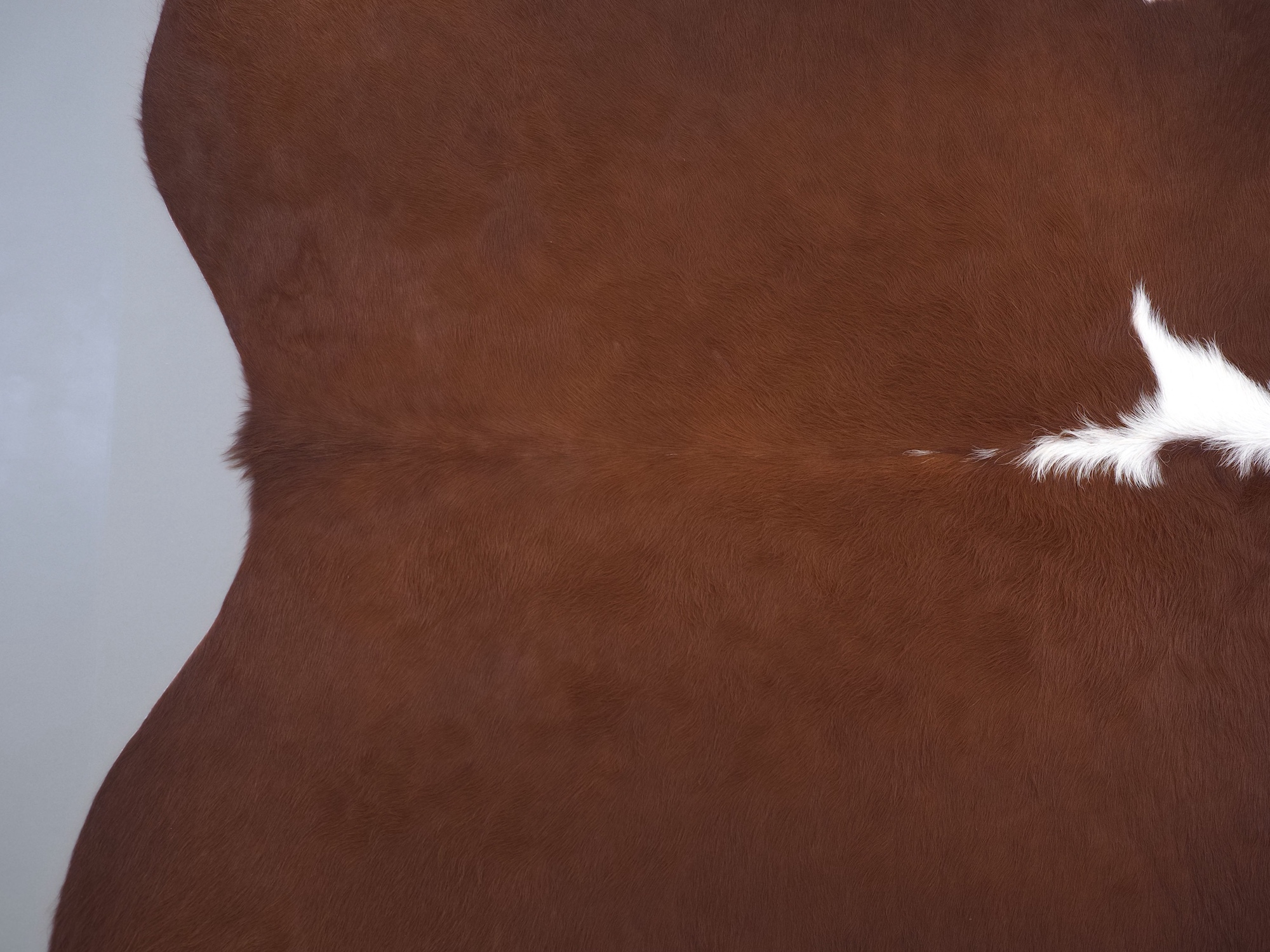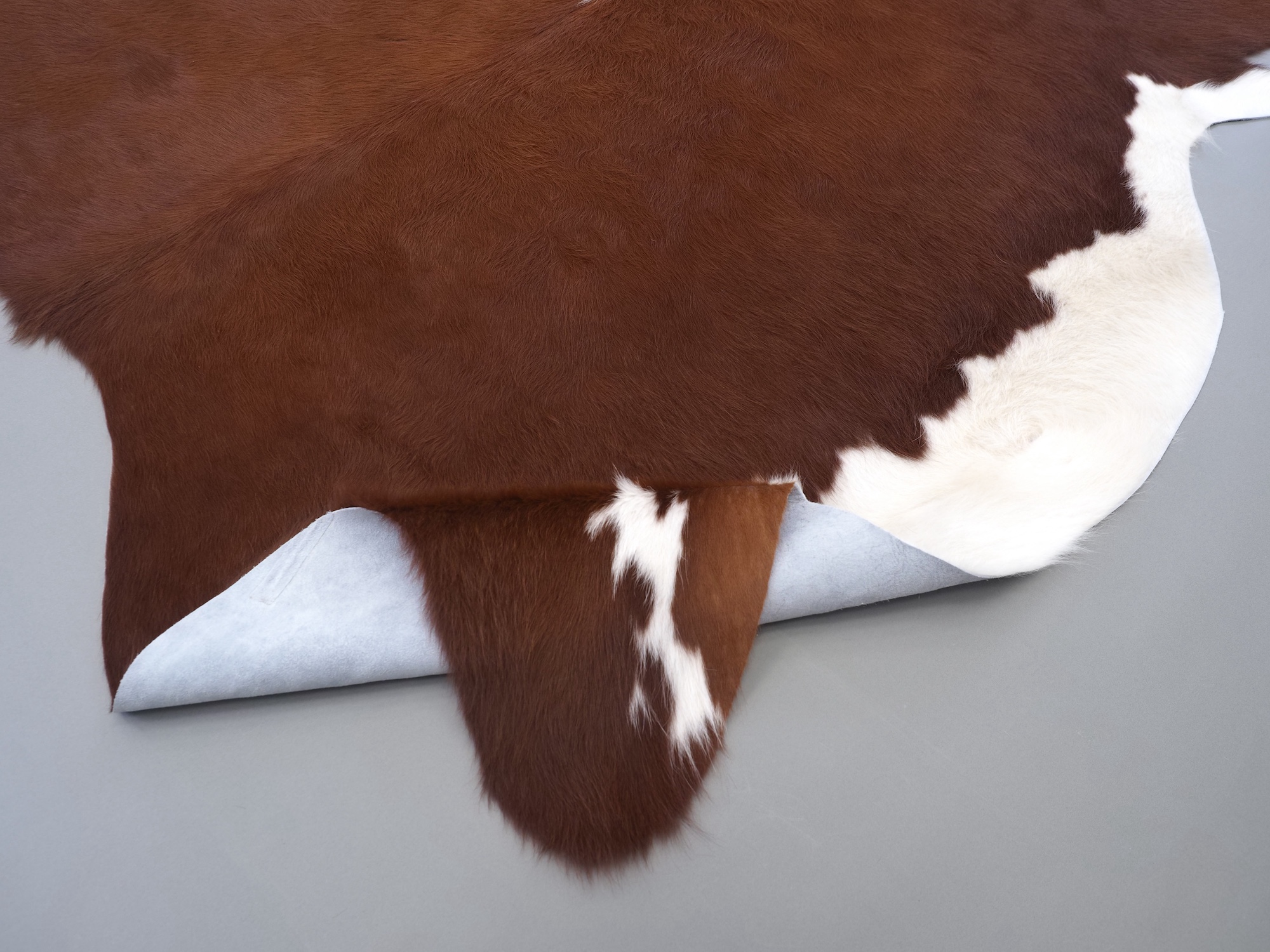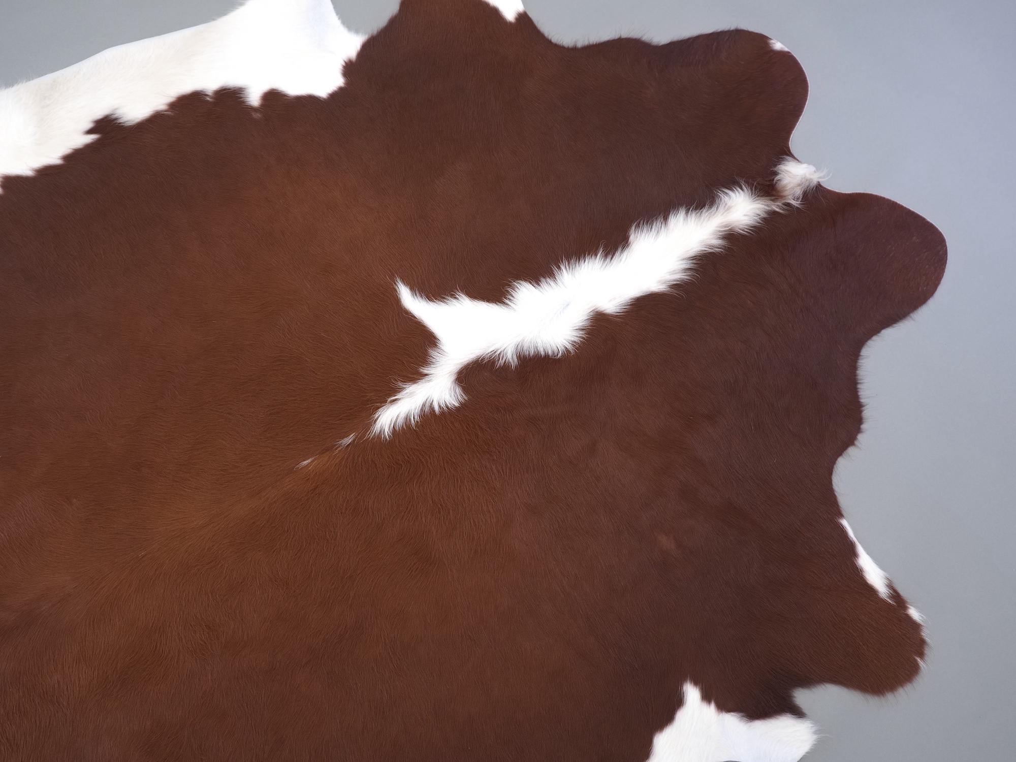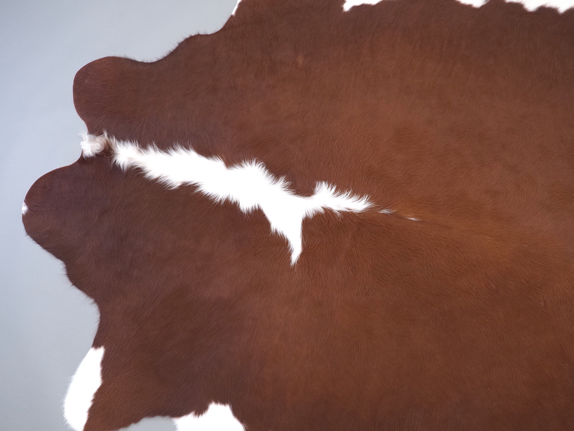 Натуральная шкура коровы коричнево-белая — порода характерезуется крупными пятнами на белом, блеск волосяного покрова.