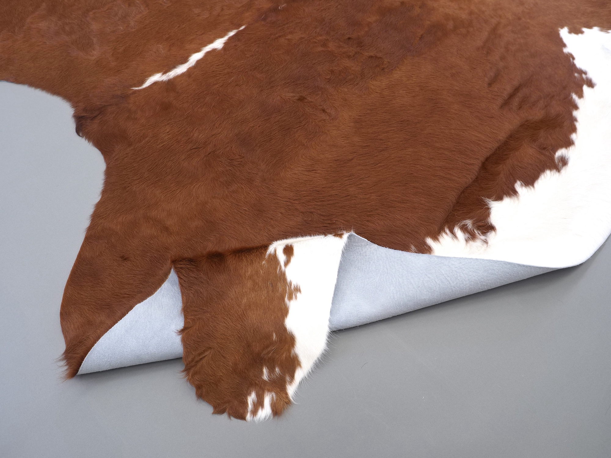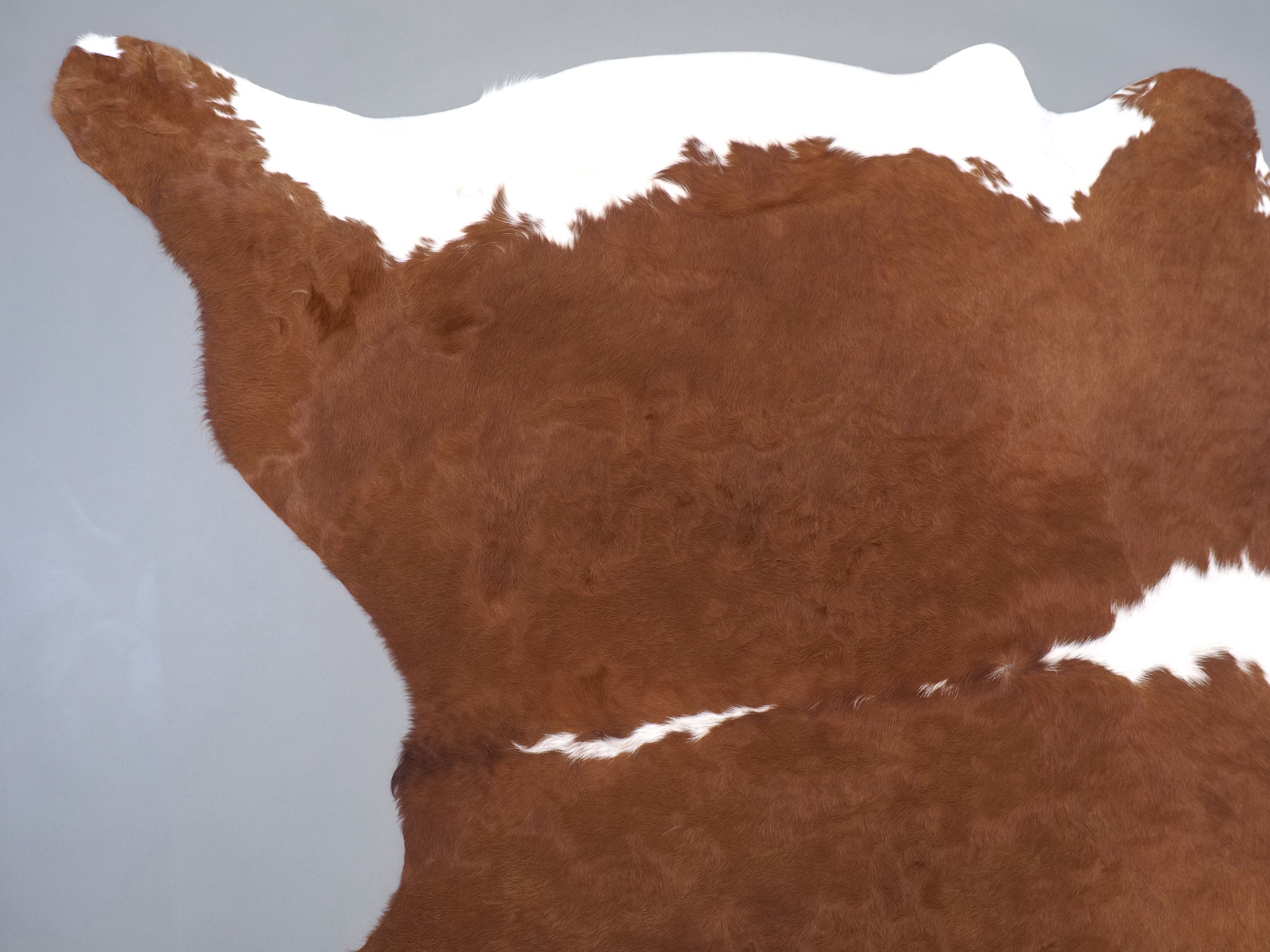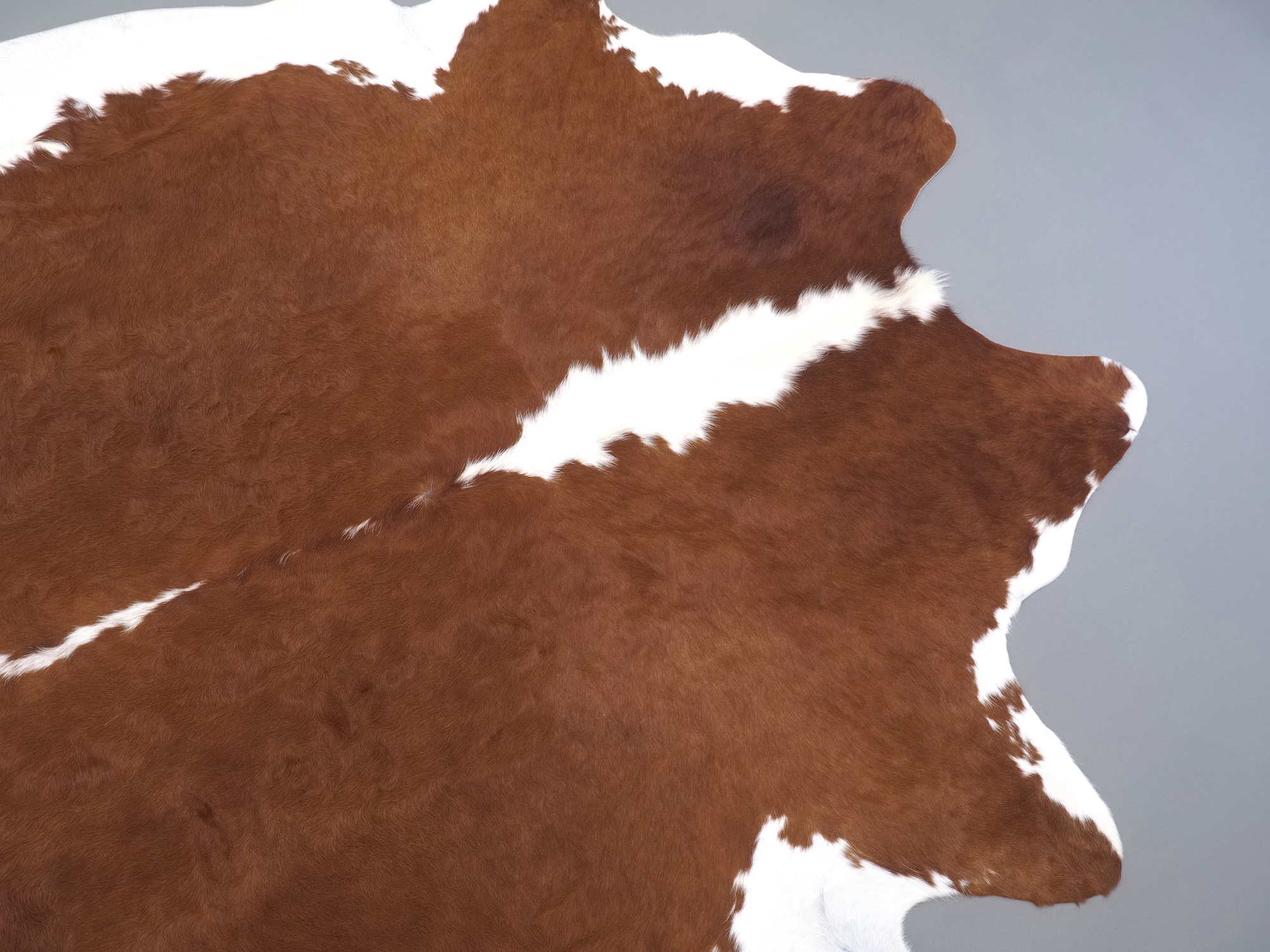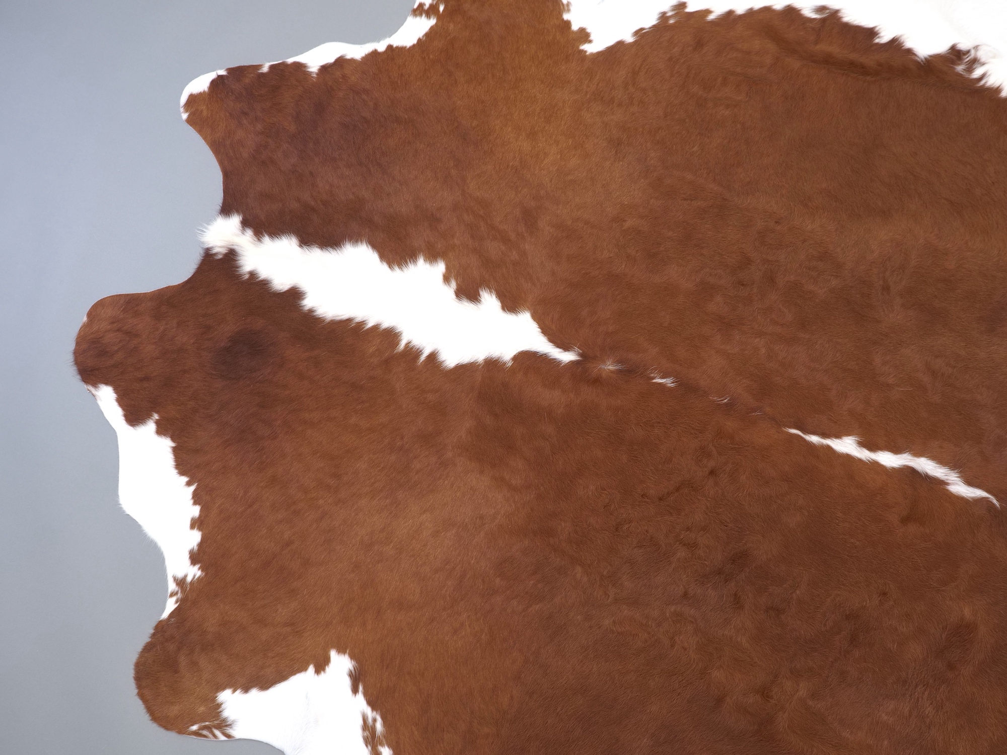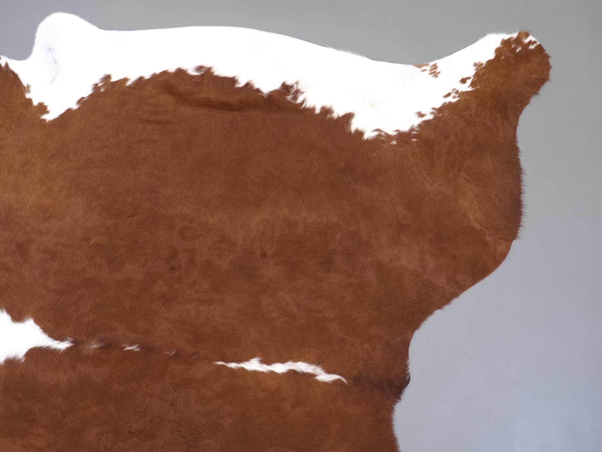 Натуральная шкура коровы коричнево-белая — порода характерезуется крупными пятнами на белом, блеск волосяного покрова.