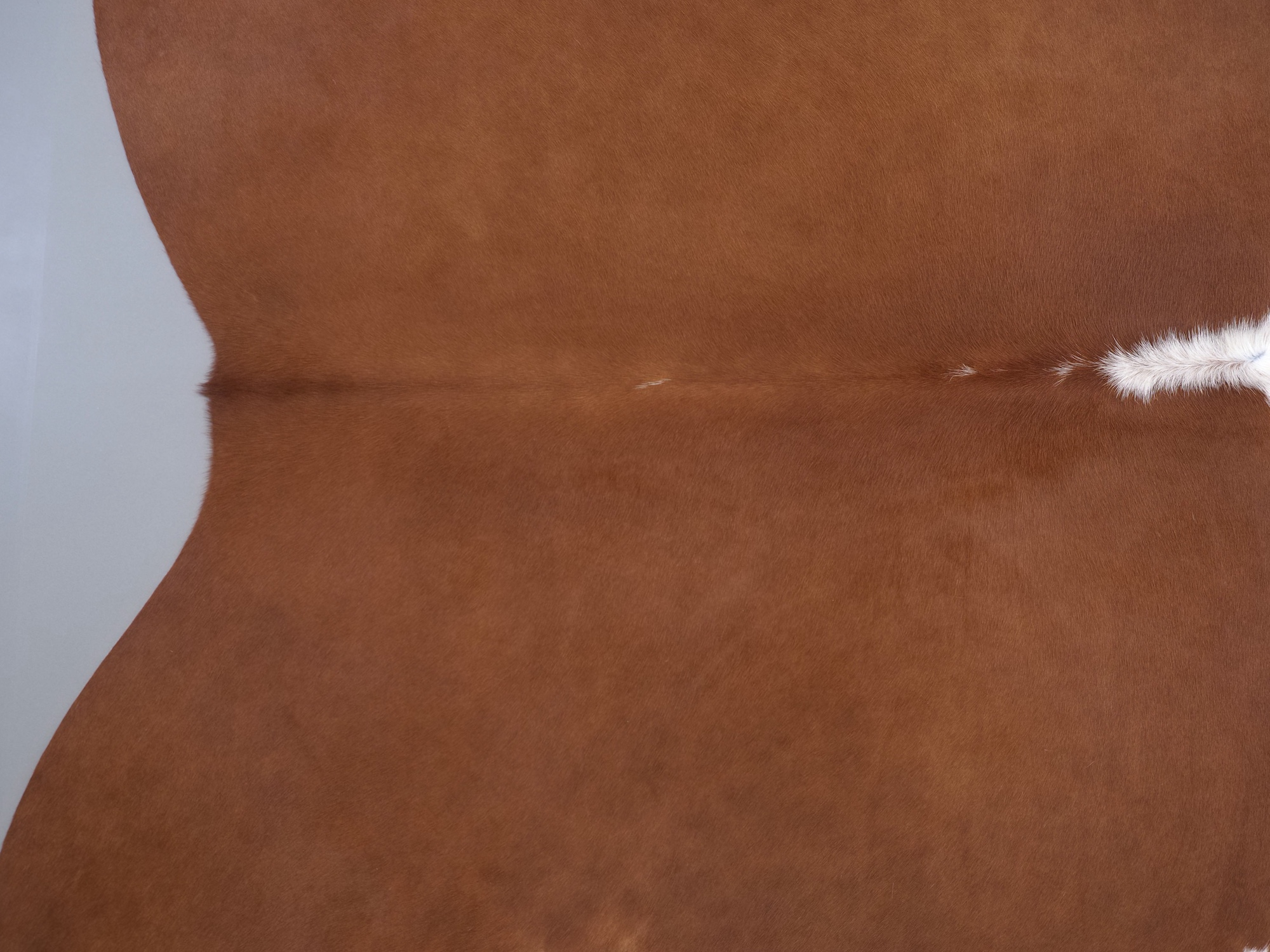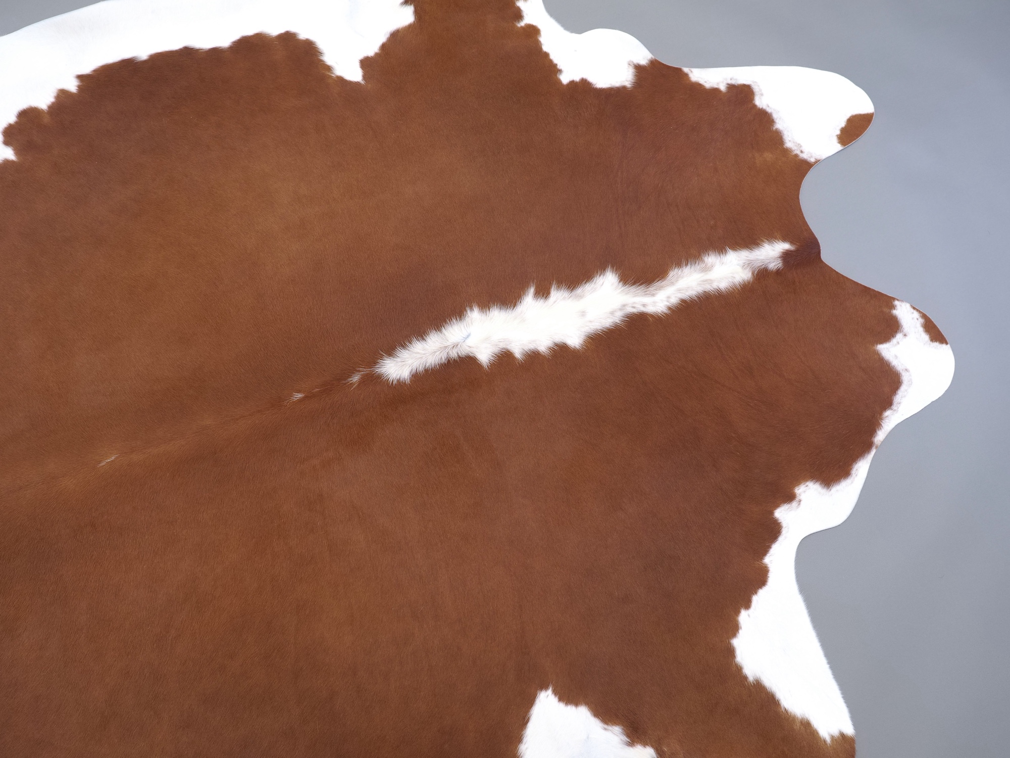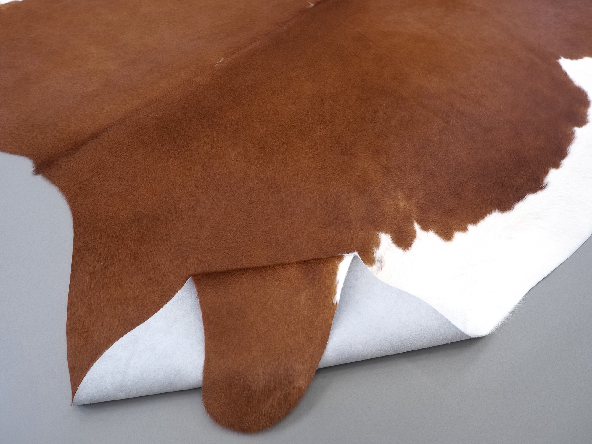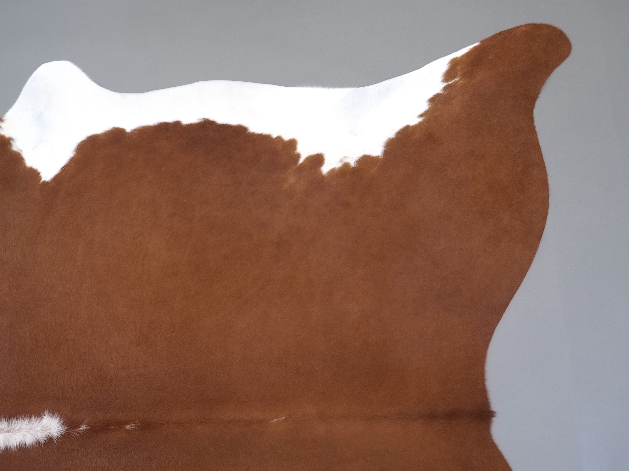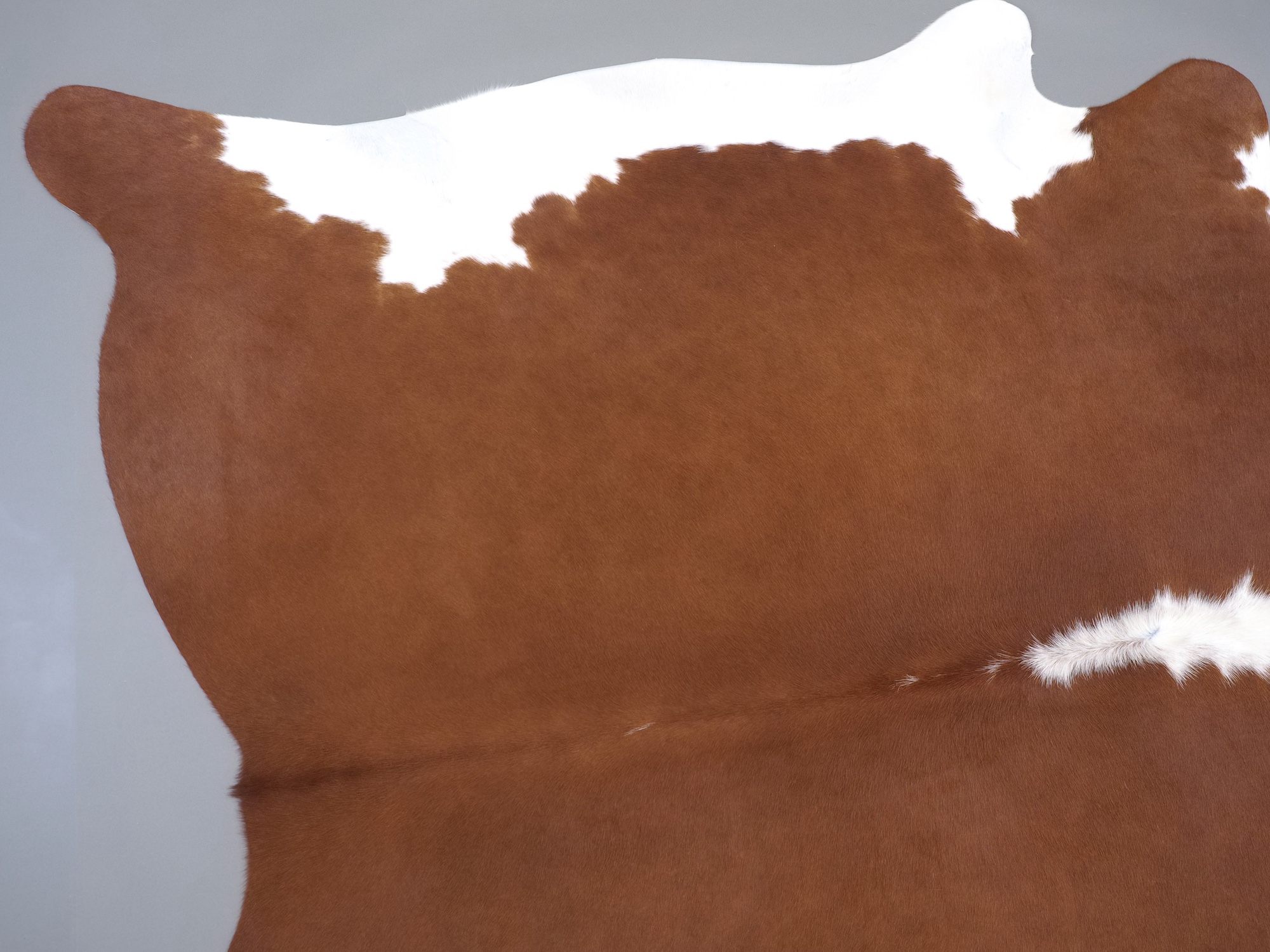 Натуральная шкура коровы коричнево-белая — порода характерезуется крупными пятнами на белом, блеск волосяного покрова.