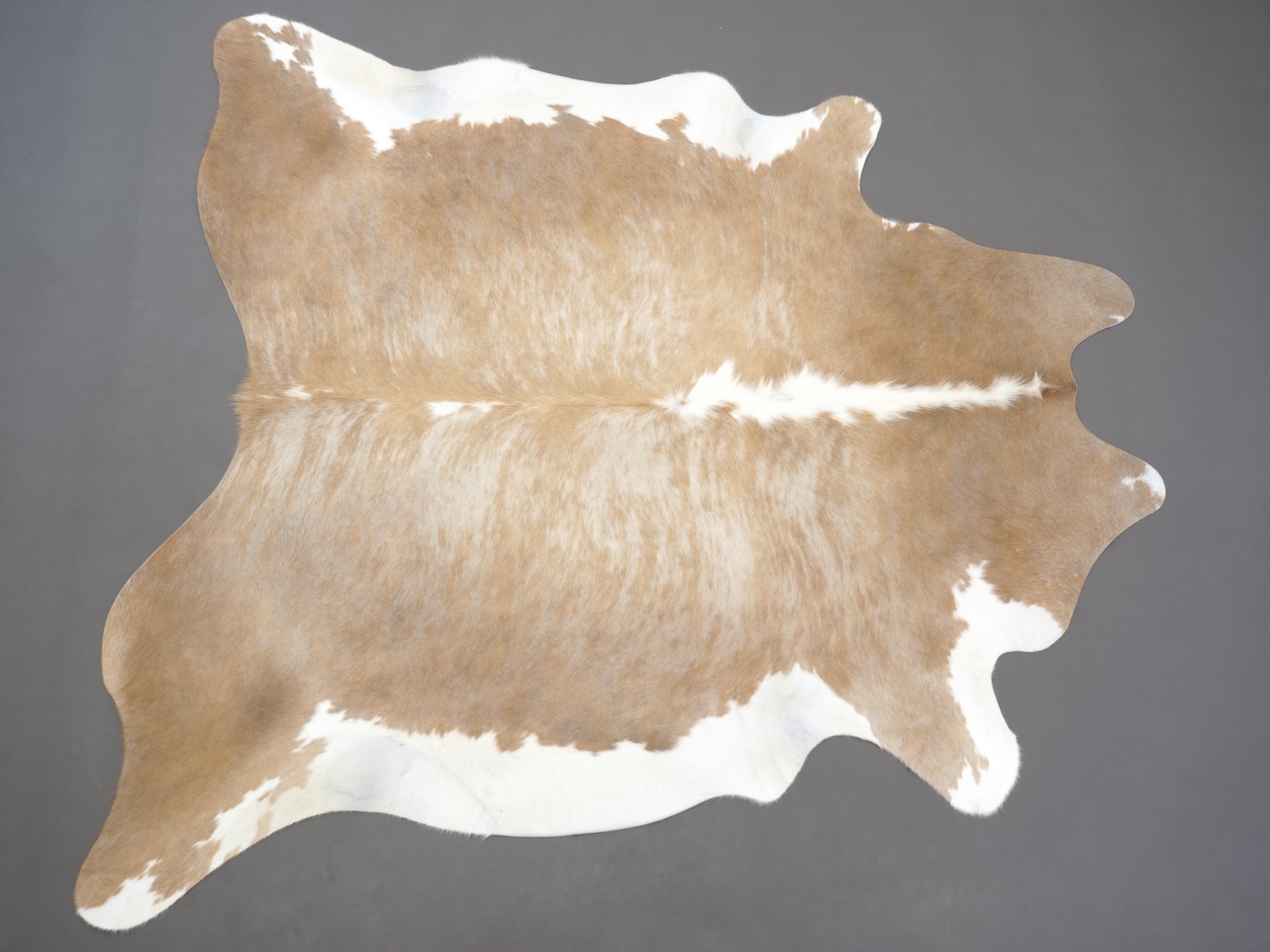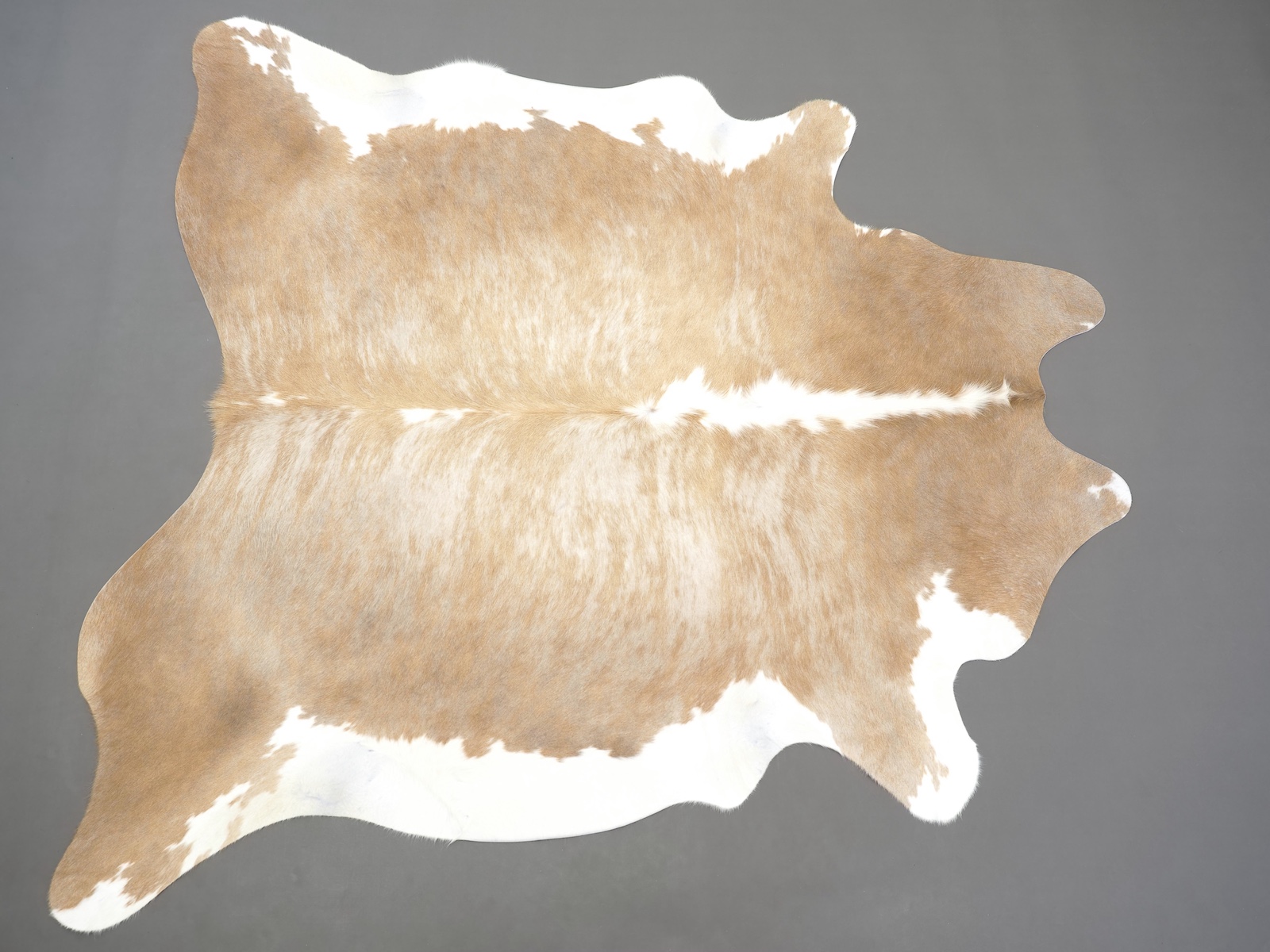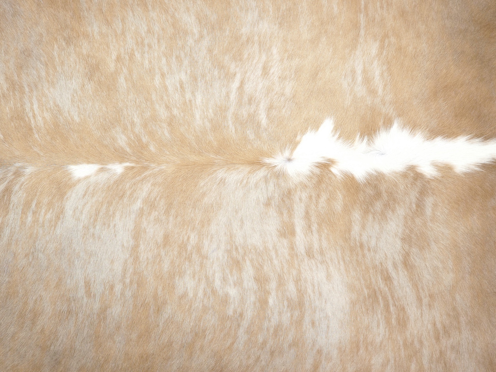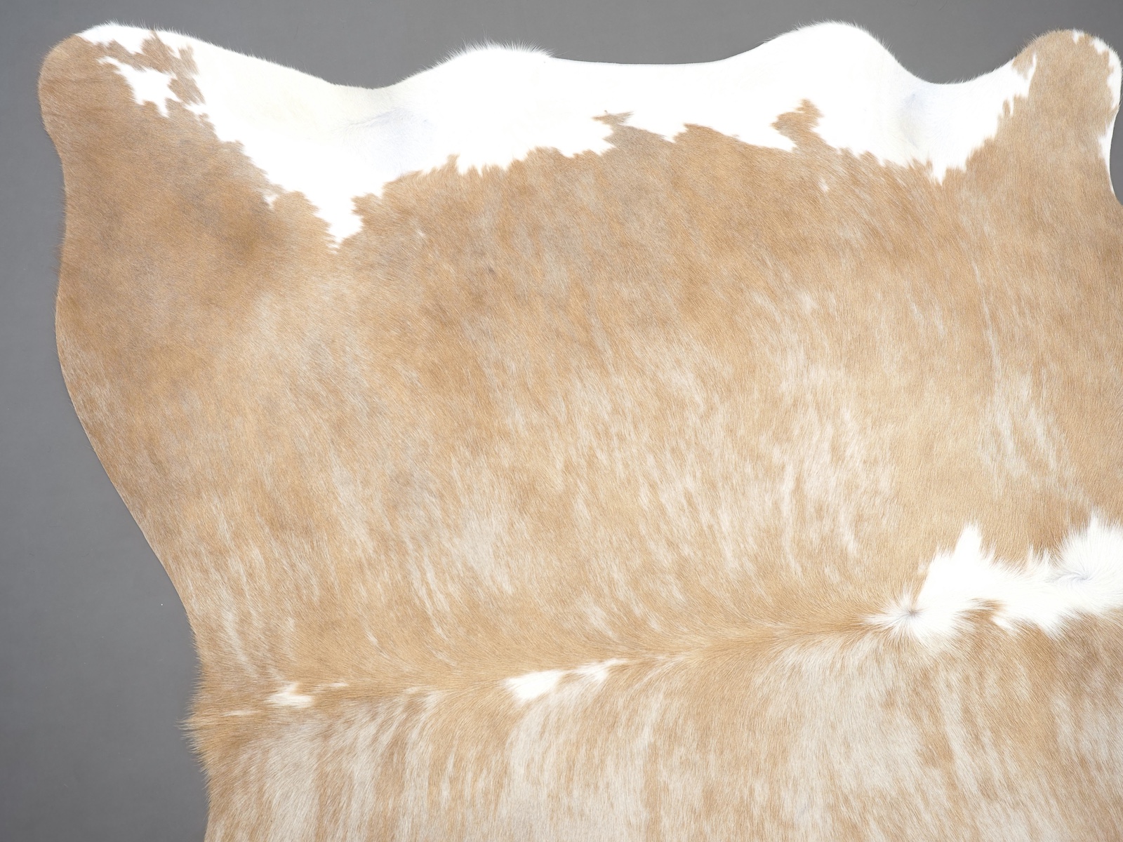 Коровья шкура натуральная бежево-белая - порода имеет бежевые оттенки и блеск волосяного покрова.