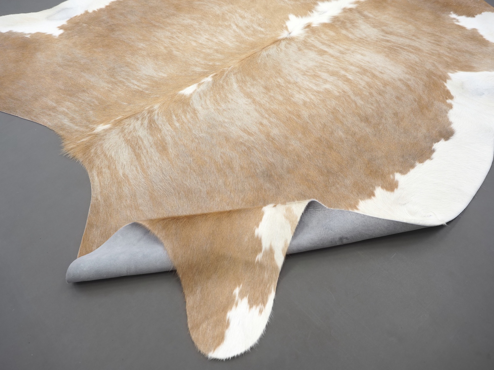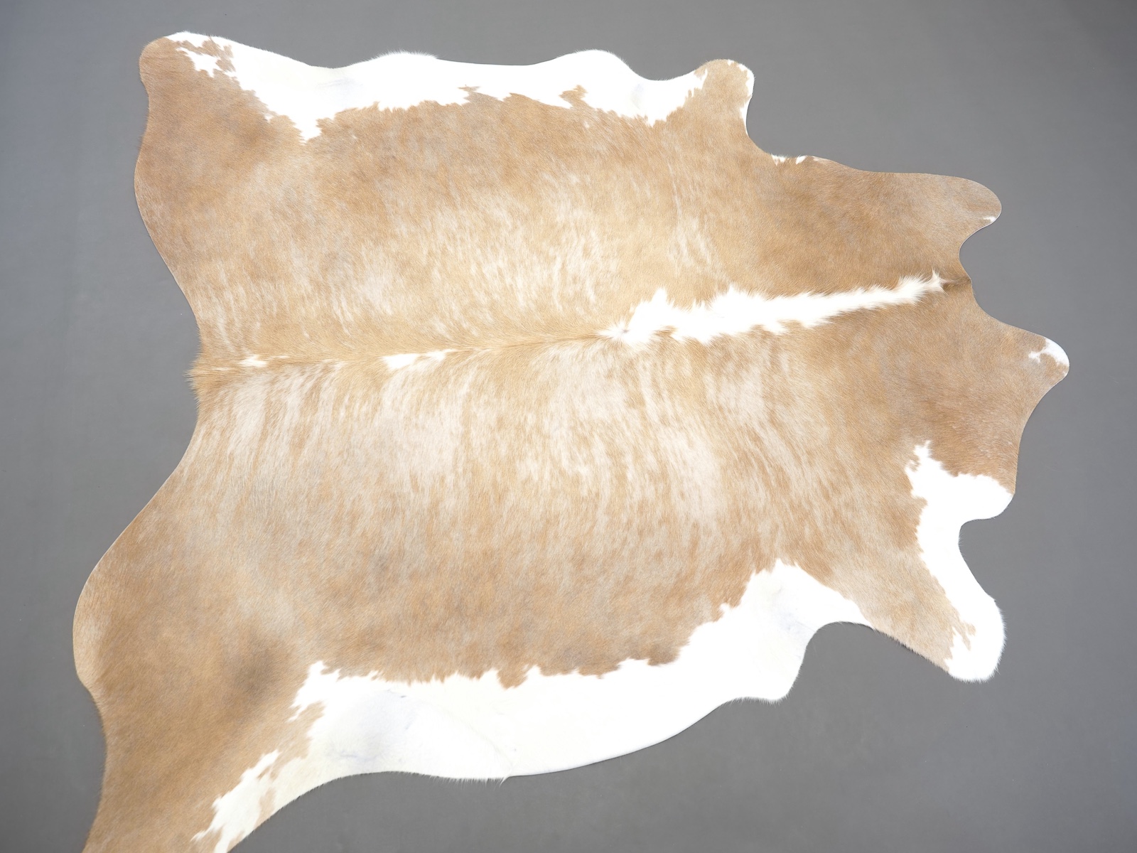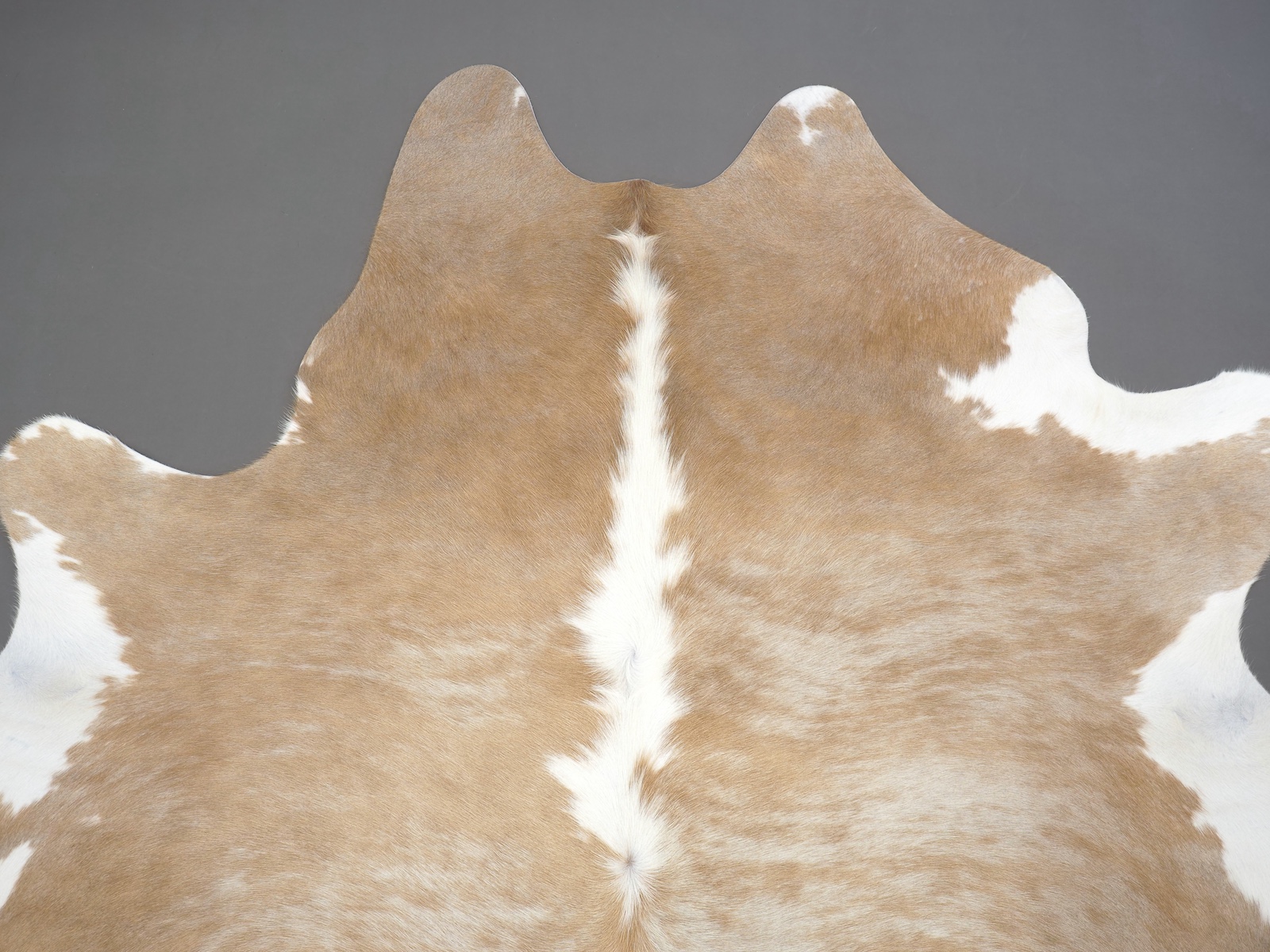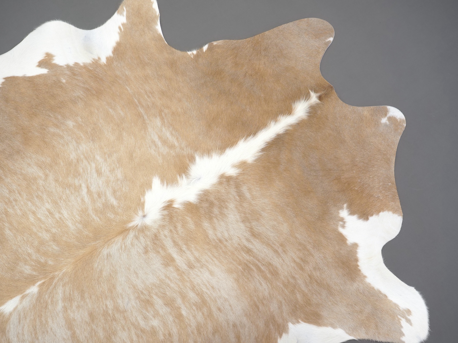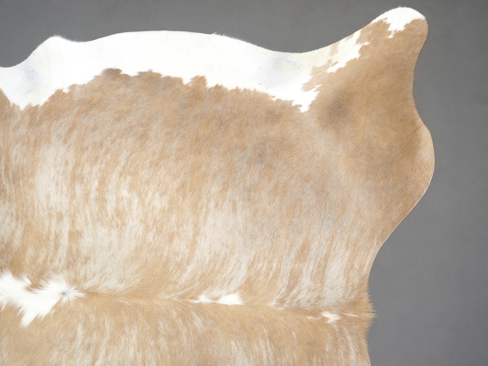 Коровья шкура натуральная бежево-белая - порода имеет бежевые оттенки и блеск волосяного покрова.