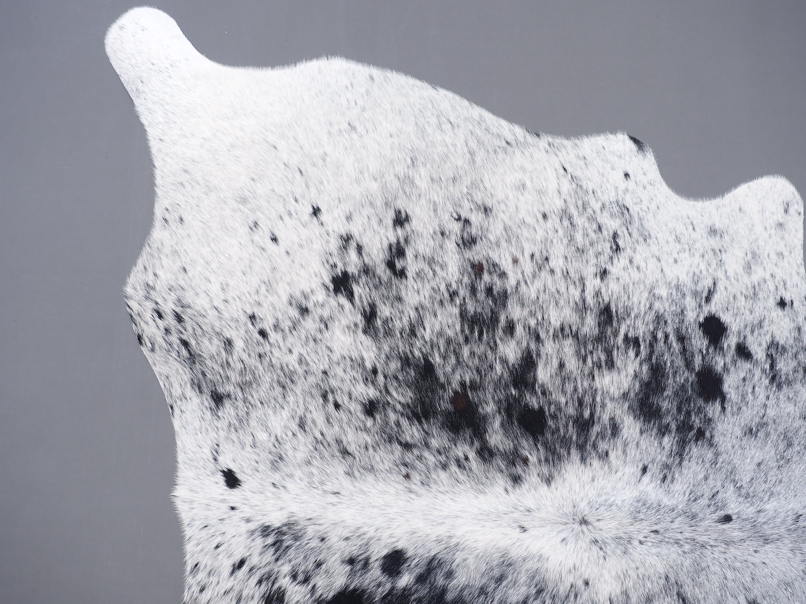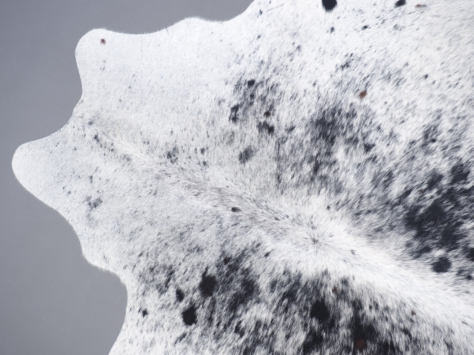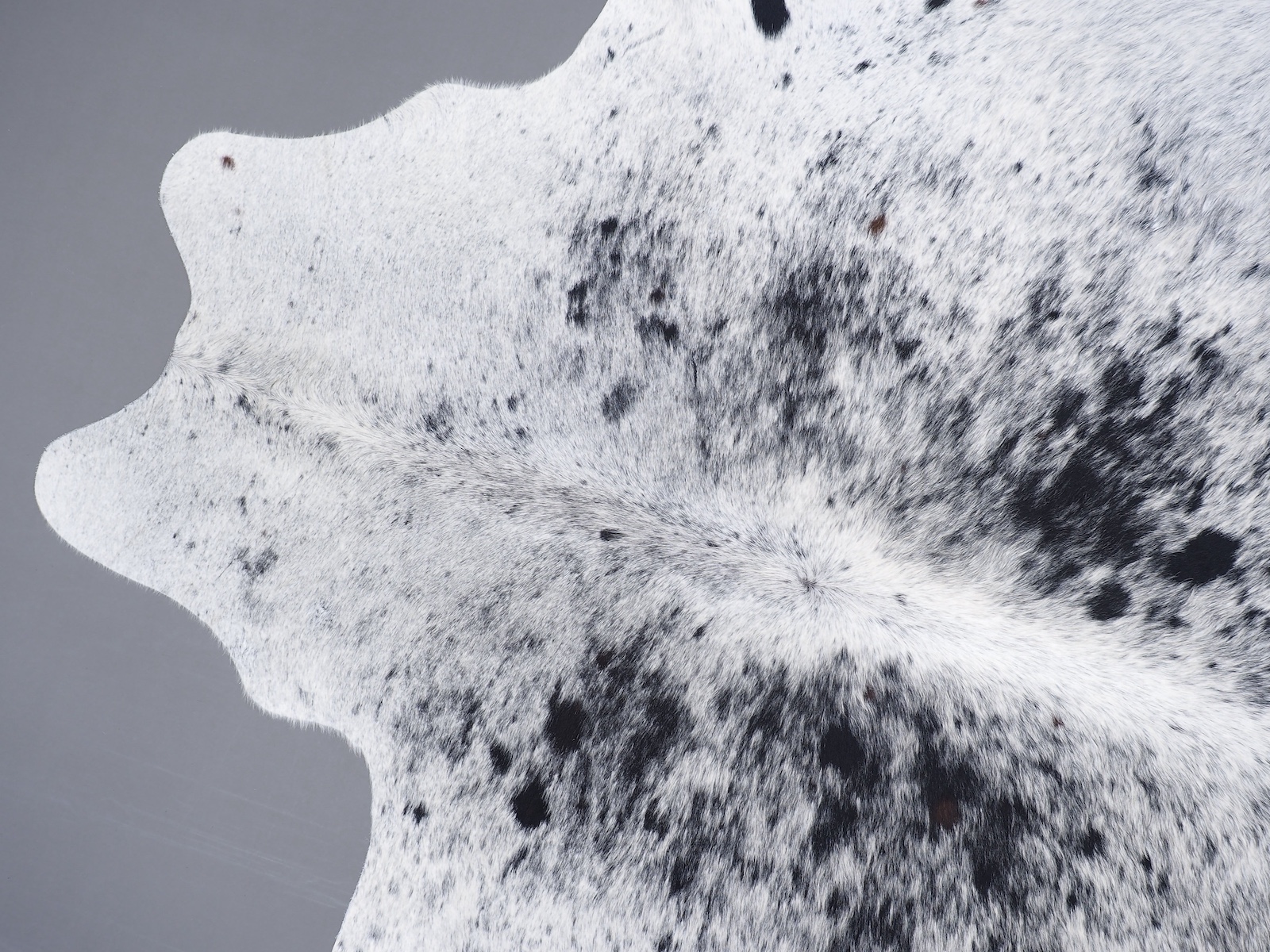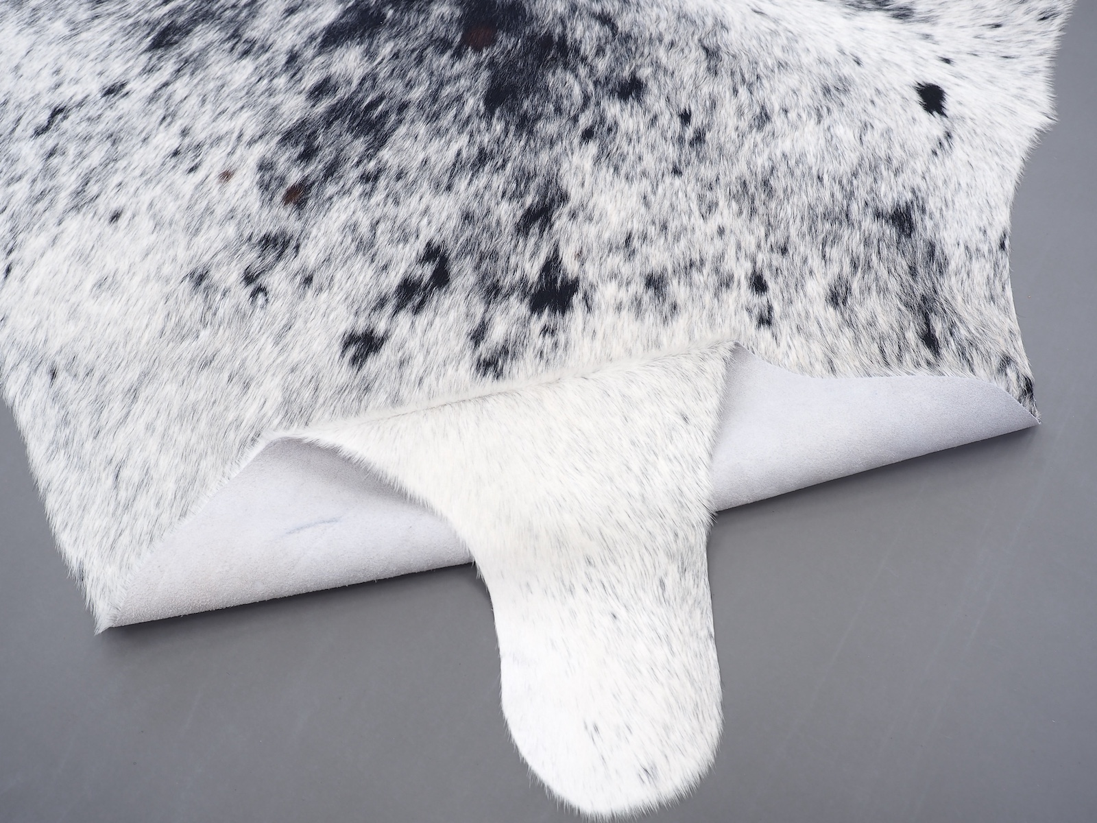 Шкура коровья натуральная соль и перец - порода имеет вкрампления черных или коричневых цветов на белом фоне волосяного покрова.