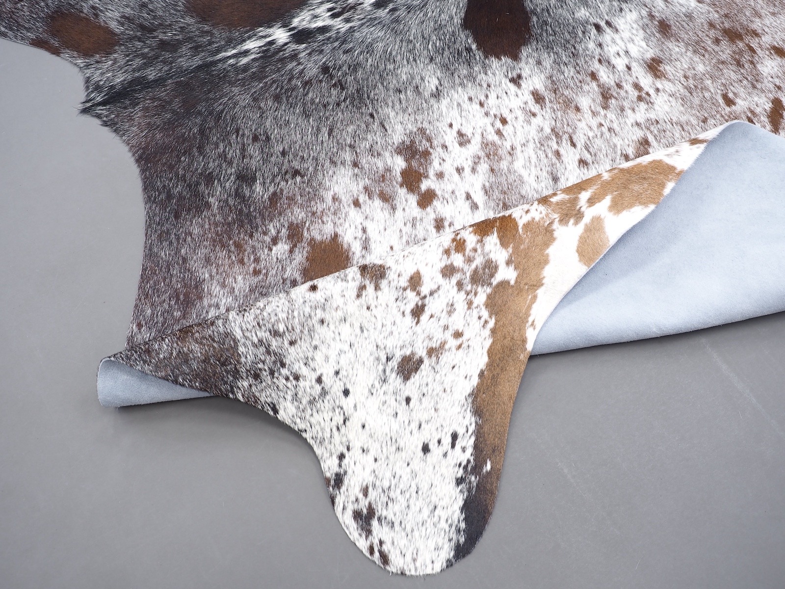 Шкура коровья натуральная соль и перец - порода имеет вкрампления черных или коричневых цветов на белом фоне волосяного покрова.