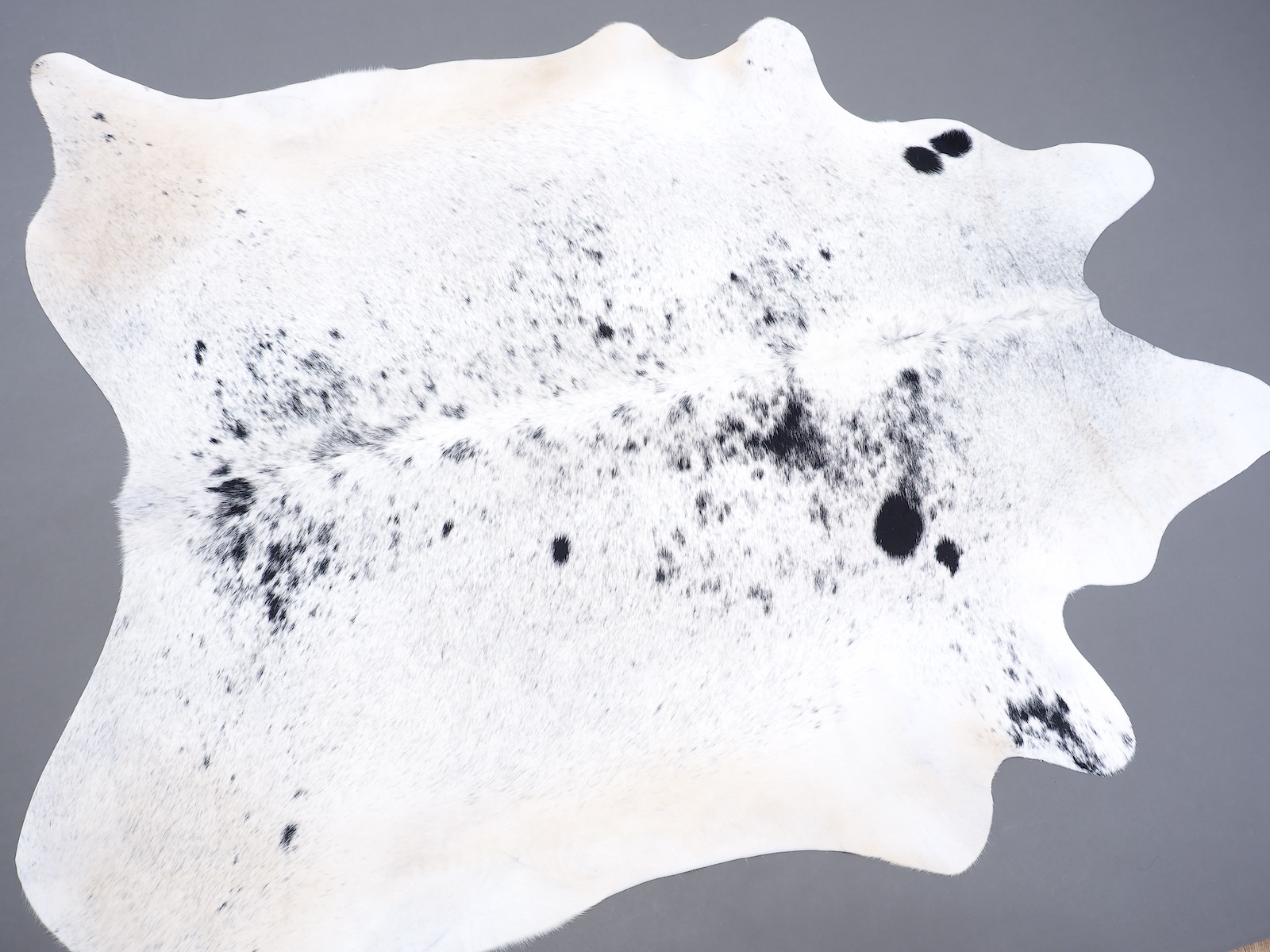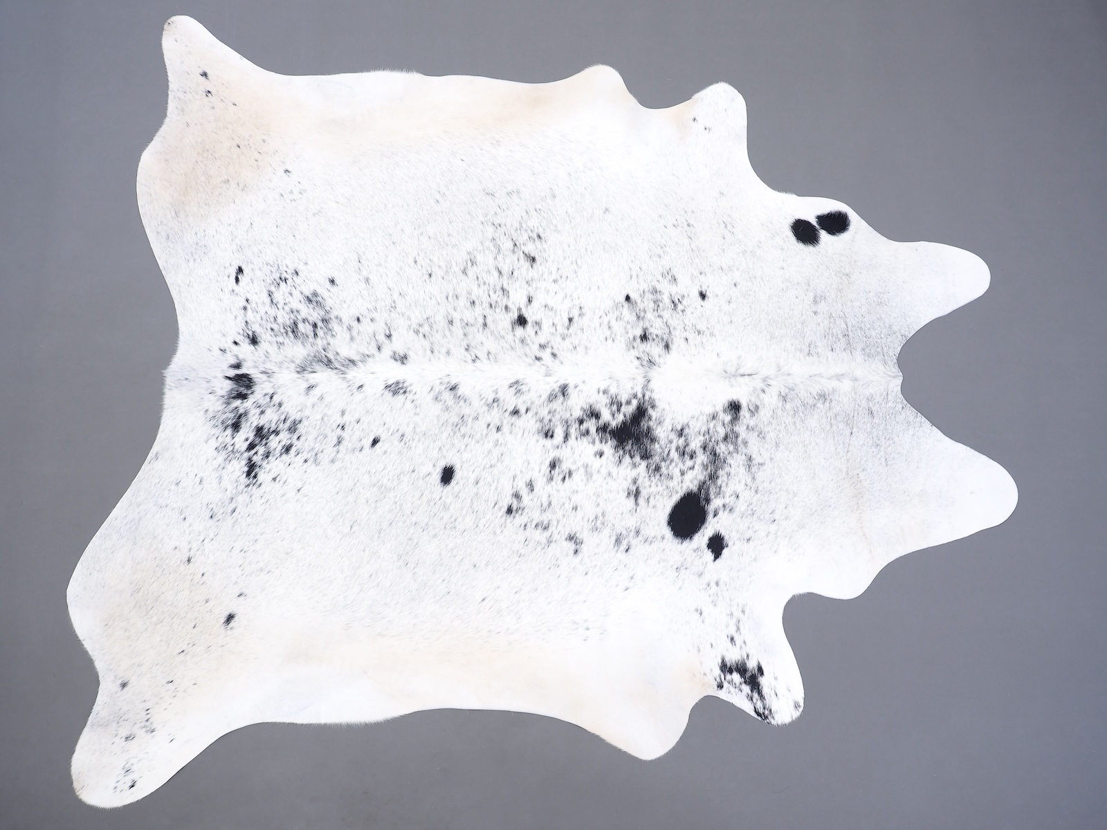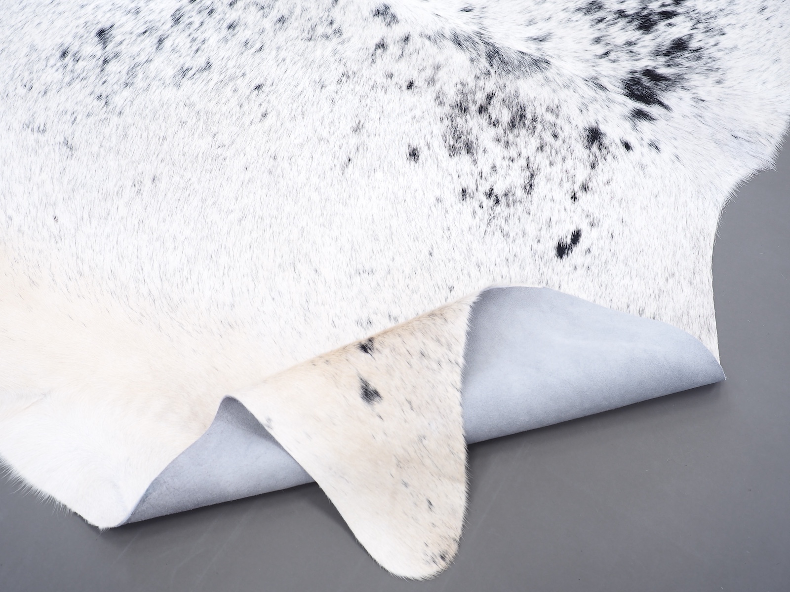 Шкура коровья натуральная соль и перец - порода имеет вкрампления черных или коричневых цветов на белом фоне волосяного покрова.