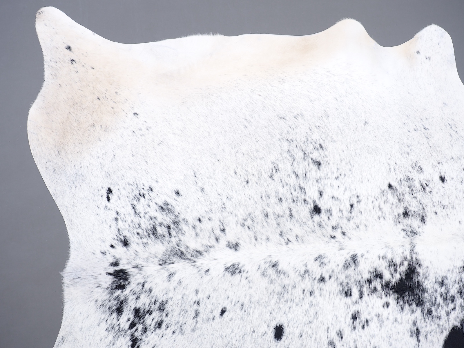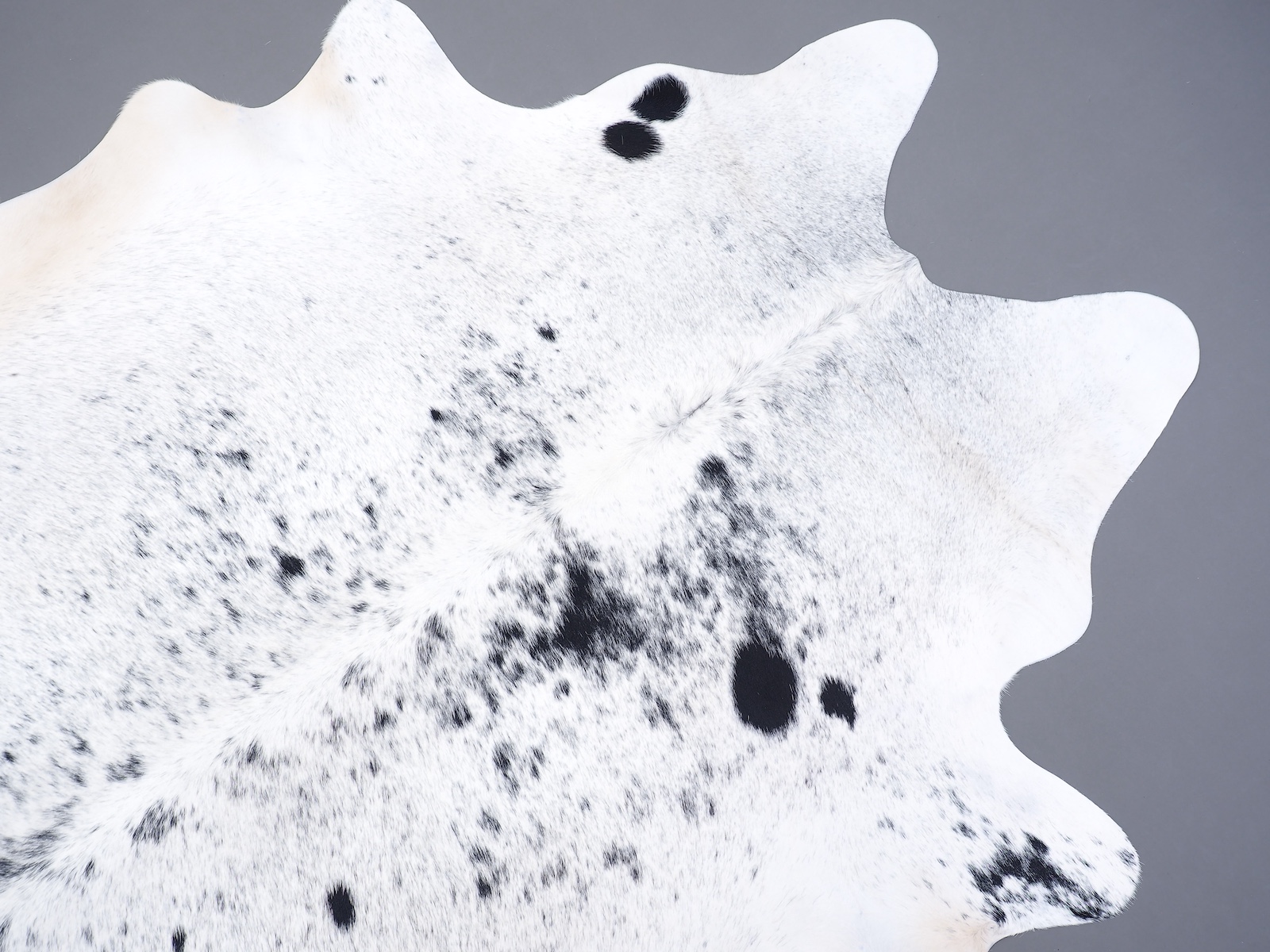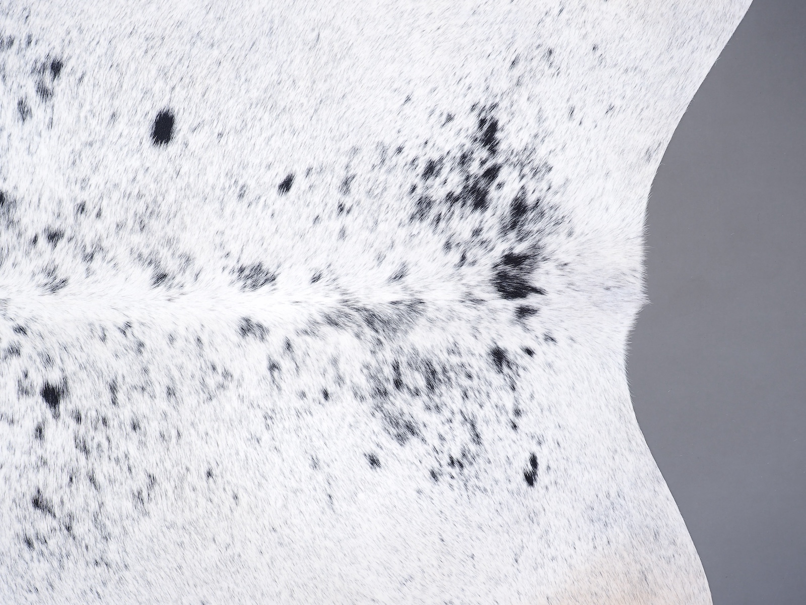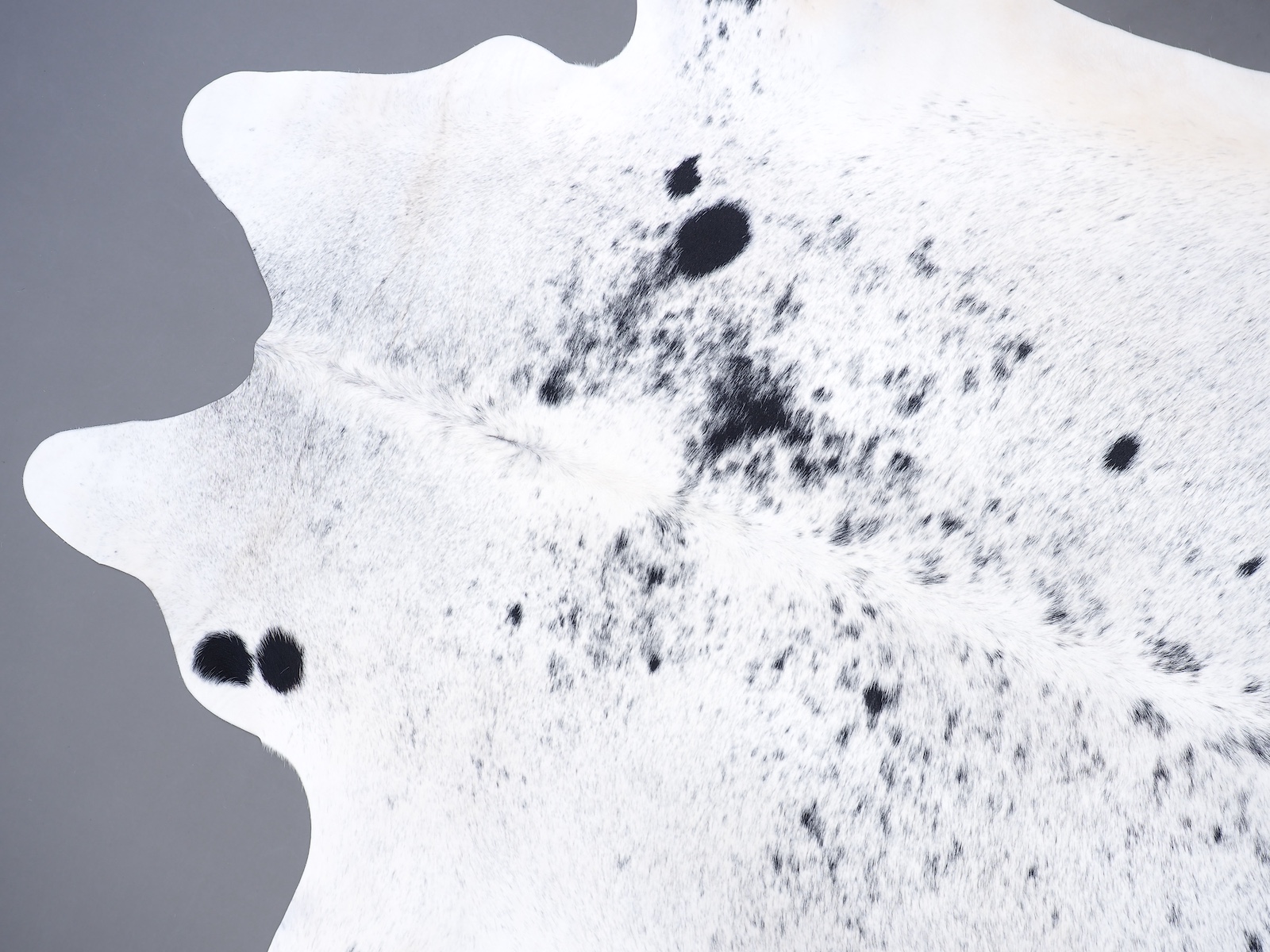 Шкура коровья натуральная соль и перец - порода имеет вкрампления черных или коричневых цветов на белом фоне волосяного покрова.