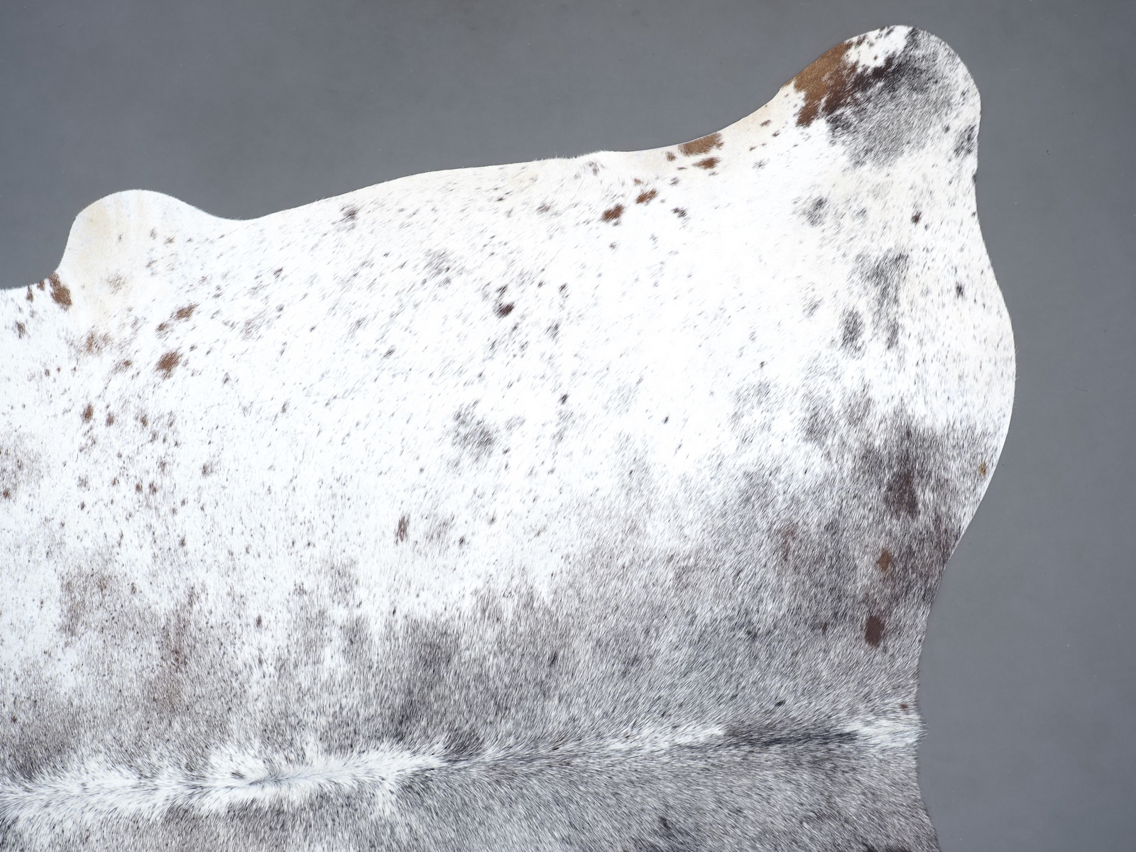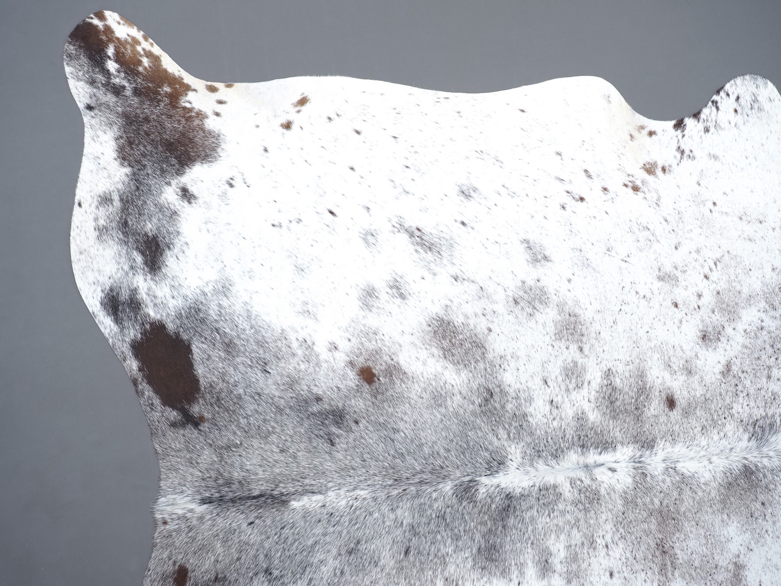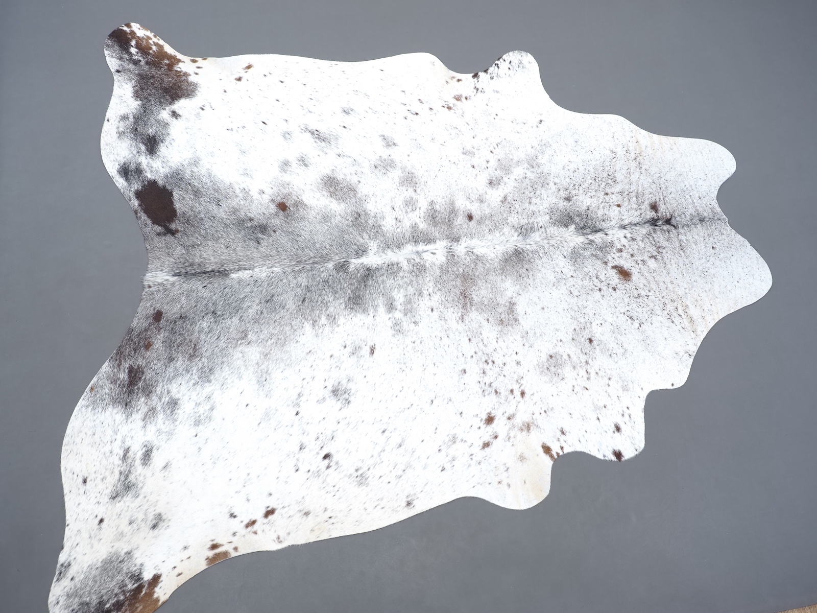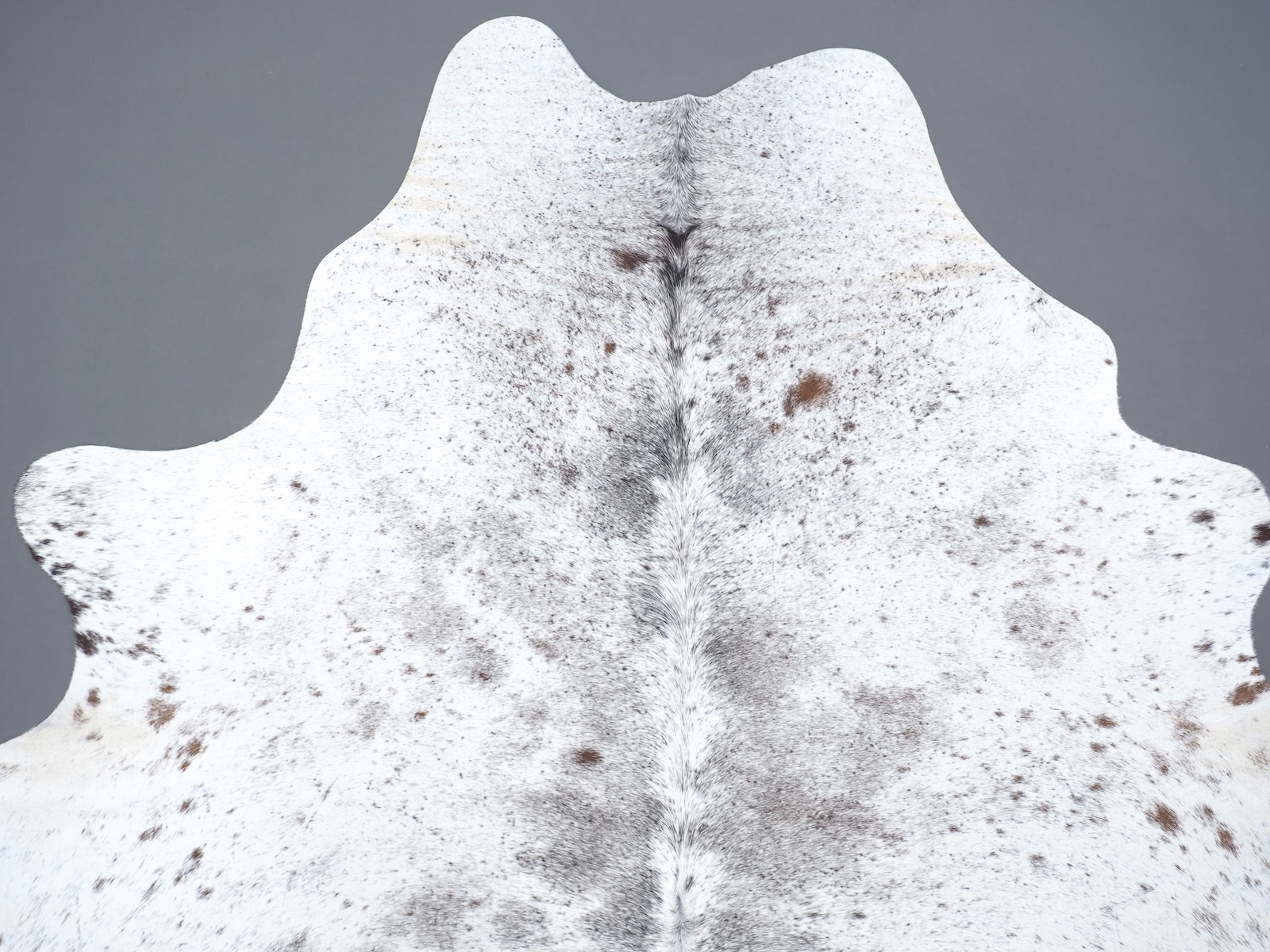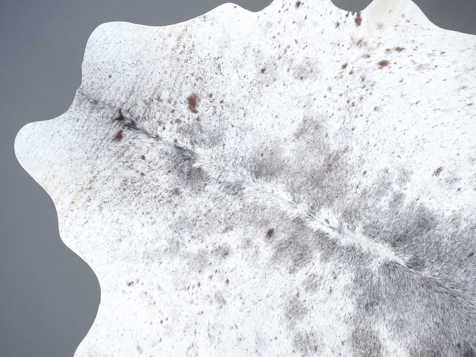 Шкура коровья натуральная соль и перец - порода имеет вкрампления черных или коричневых цветов на белом фоне волосяного покрова.