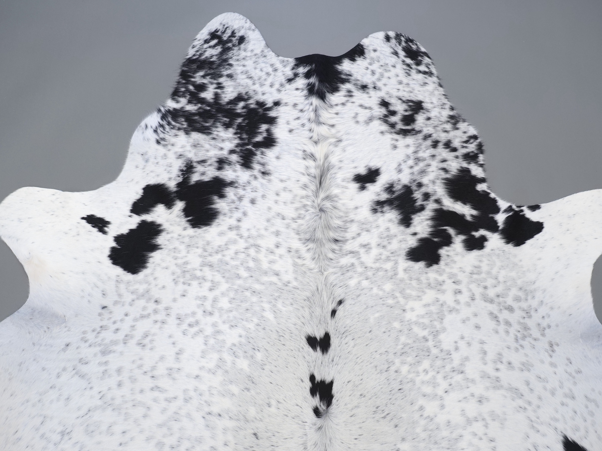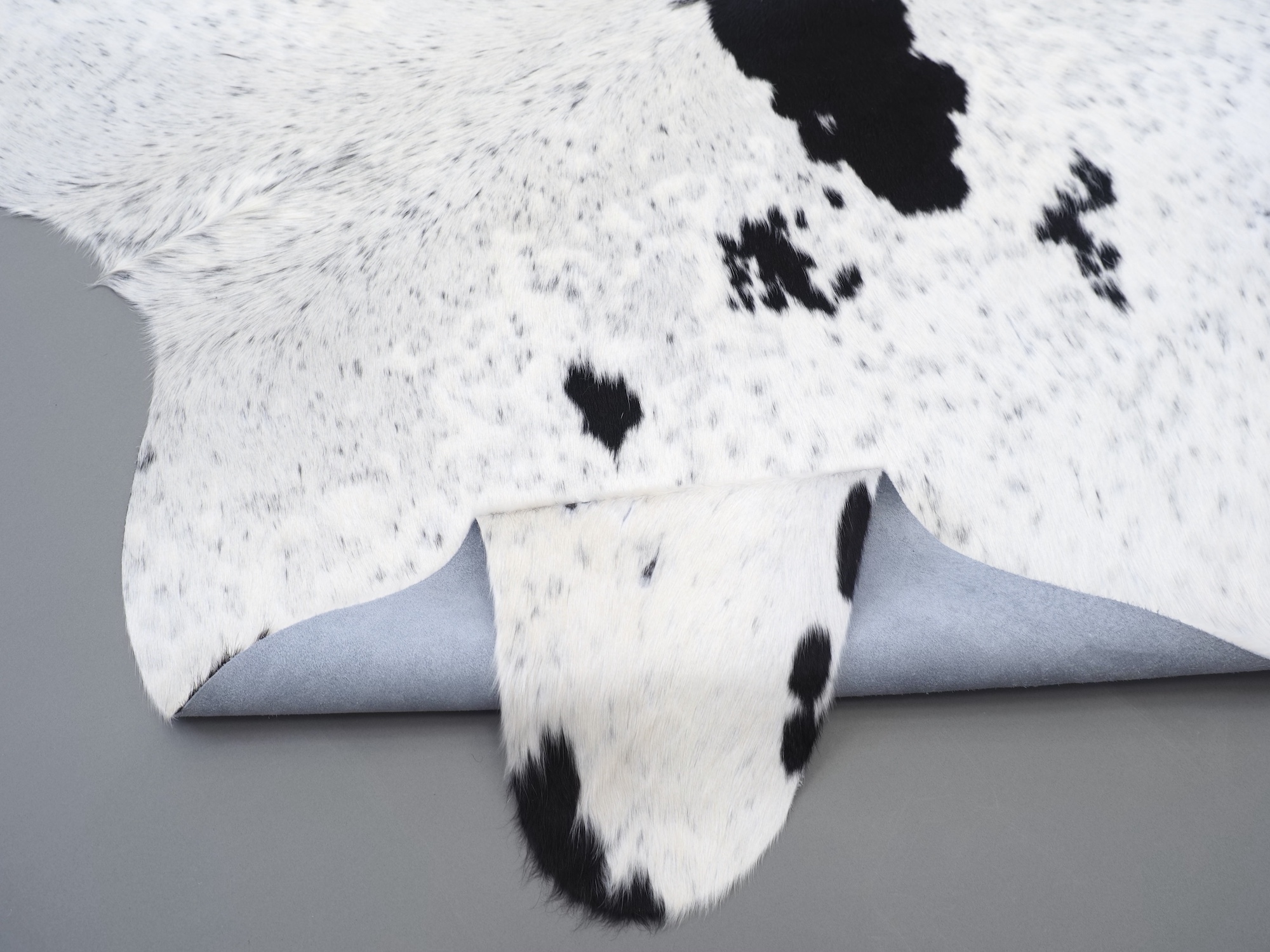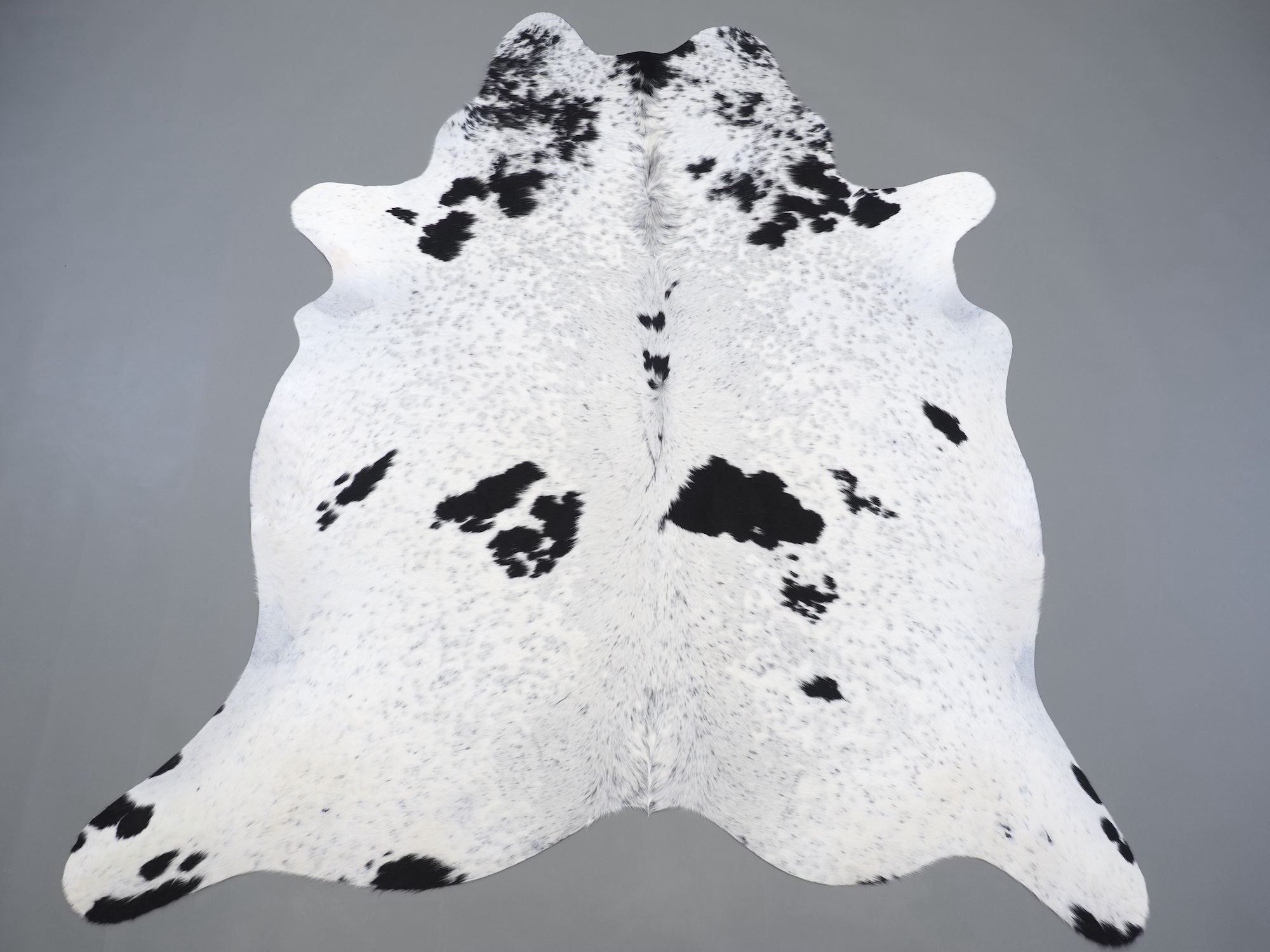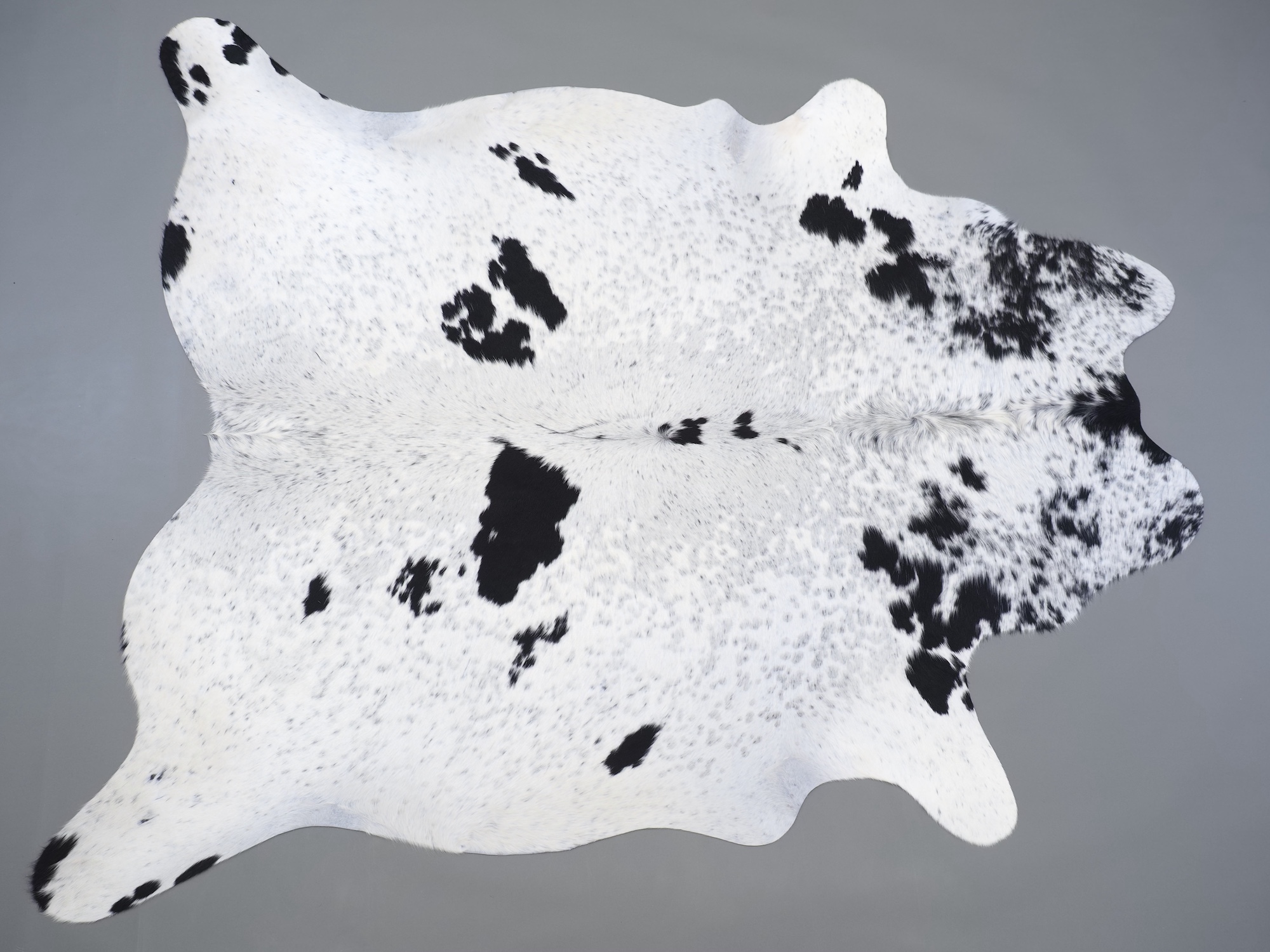 Шкура коровья натуральная соль и перец - порода имеет вкрампления черных или коричневых цветов на белом фоне волосяного покрова.