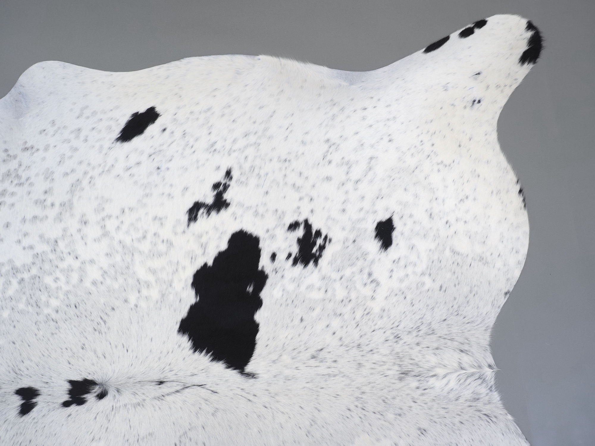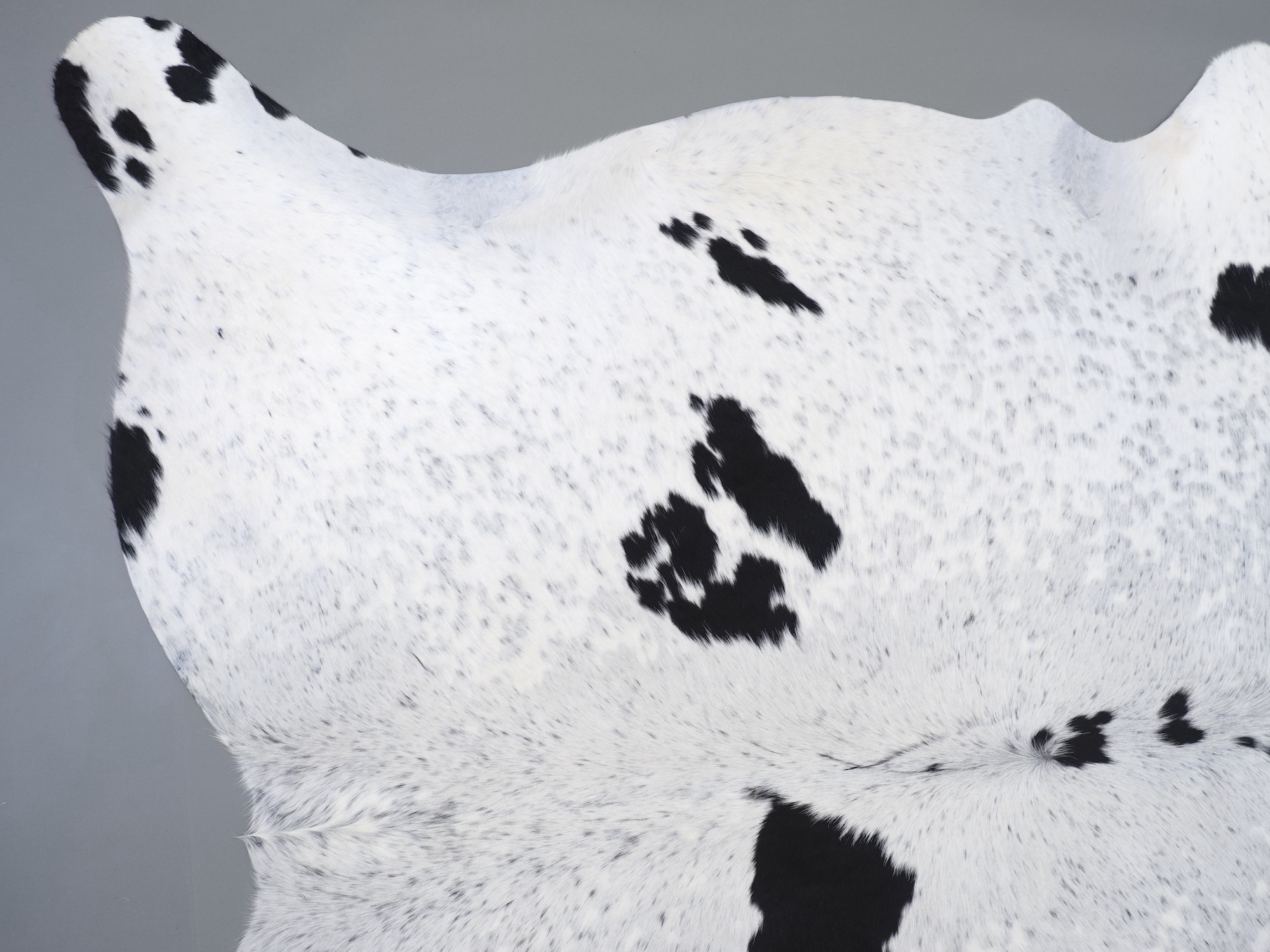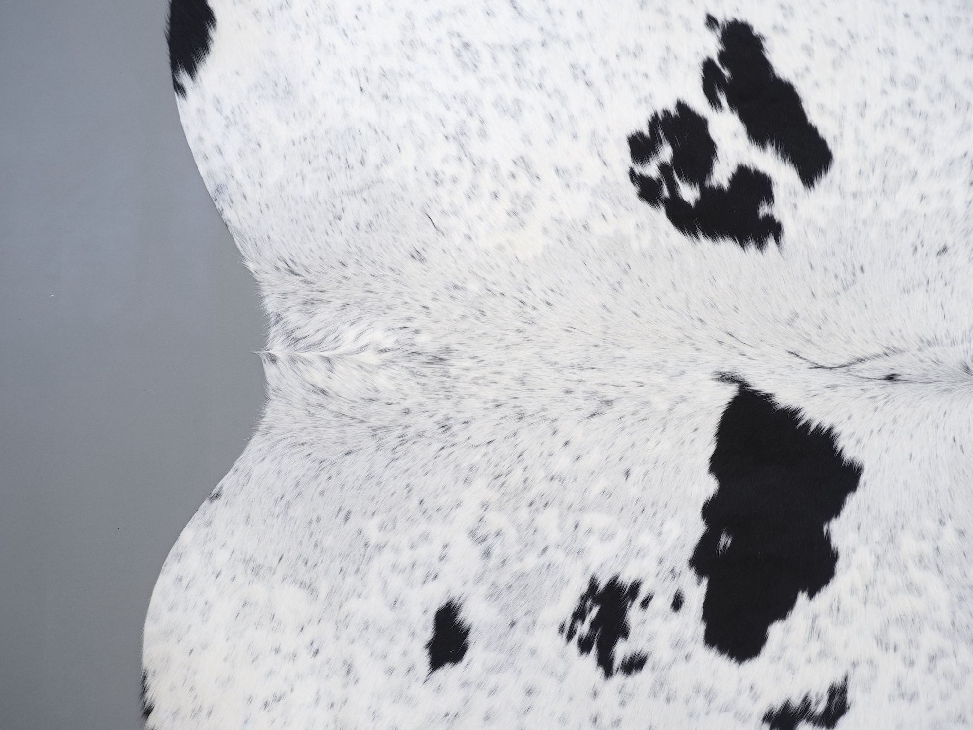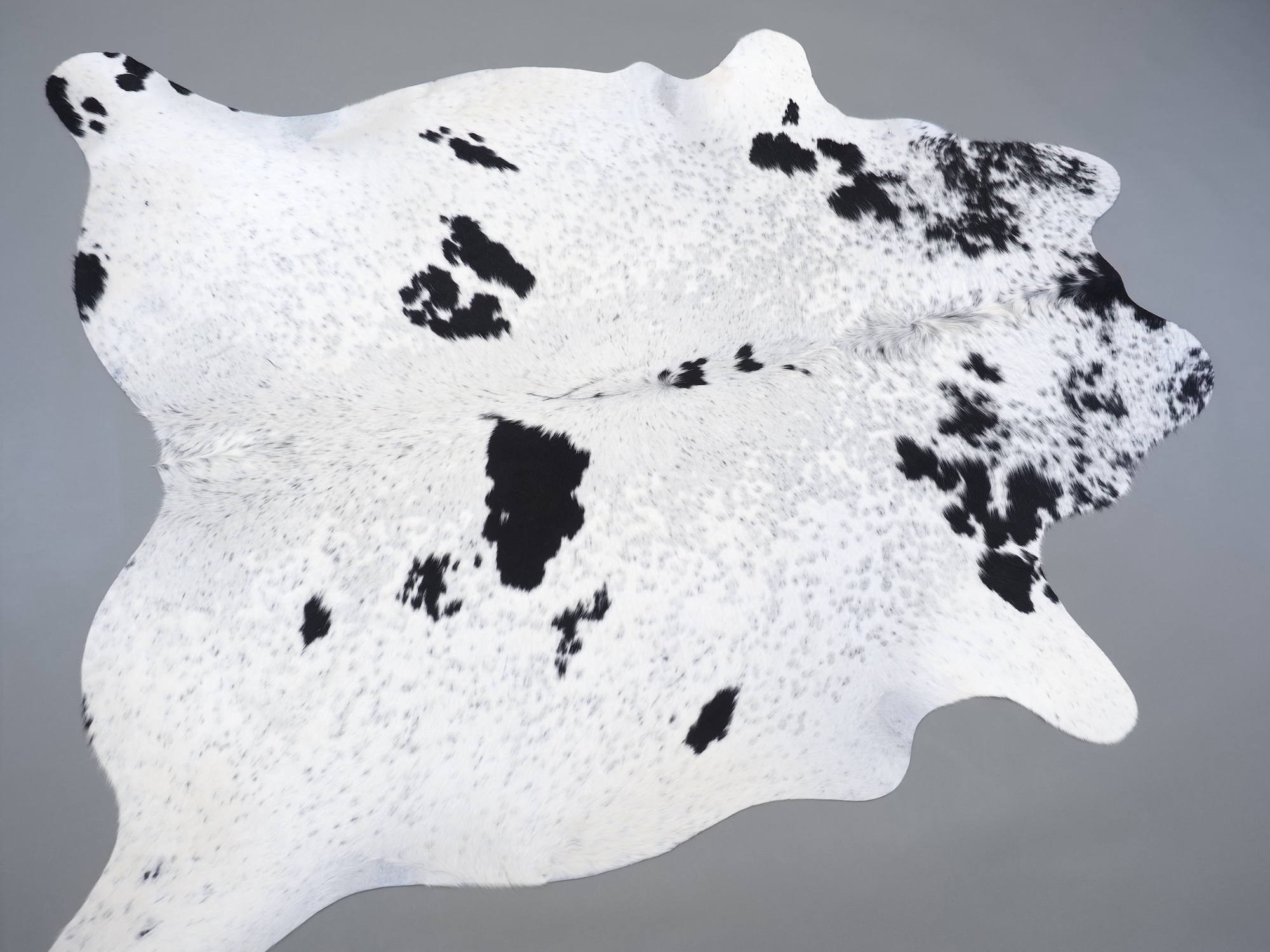 Шкура коровья натуральная соль и перец - порода имеет вкрампления черных или коричневых цветов на белом фоне волосяного покрова.