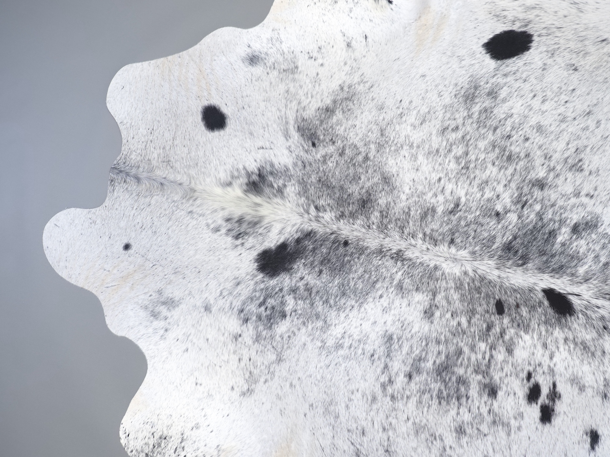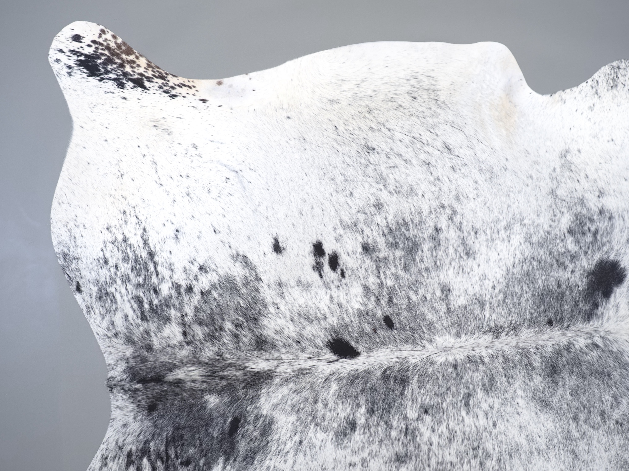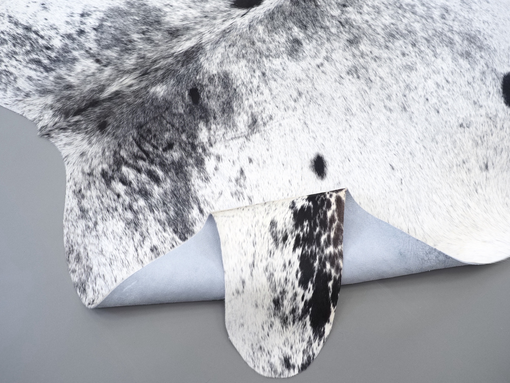Шкура коровья натуральная соль и перец - порода имеет вкрампления черных или коричневых цветов на белом фоне волосяного покрова.