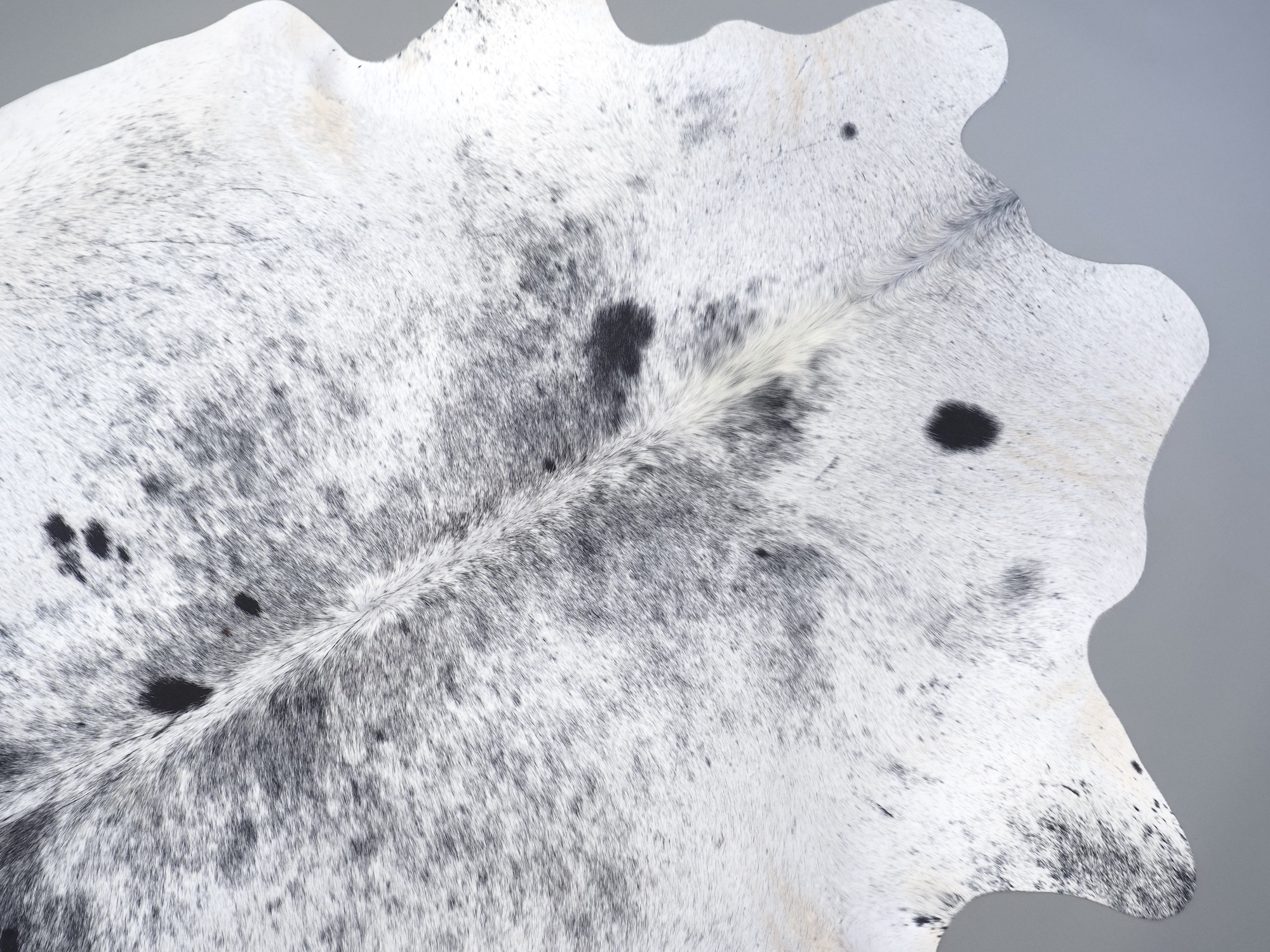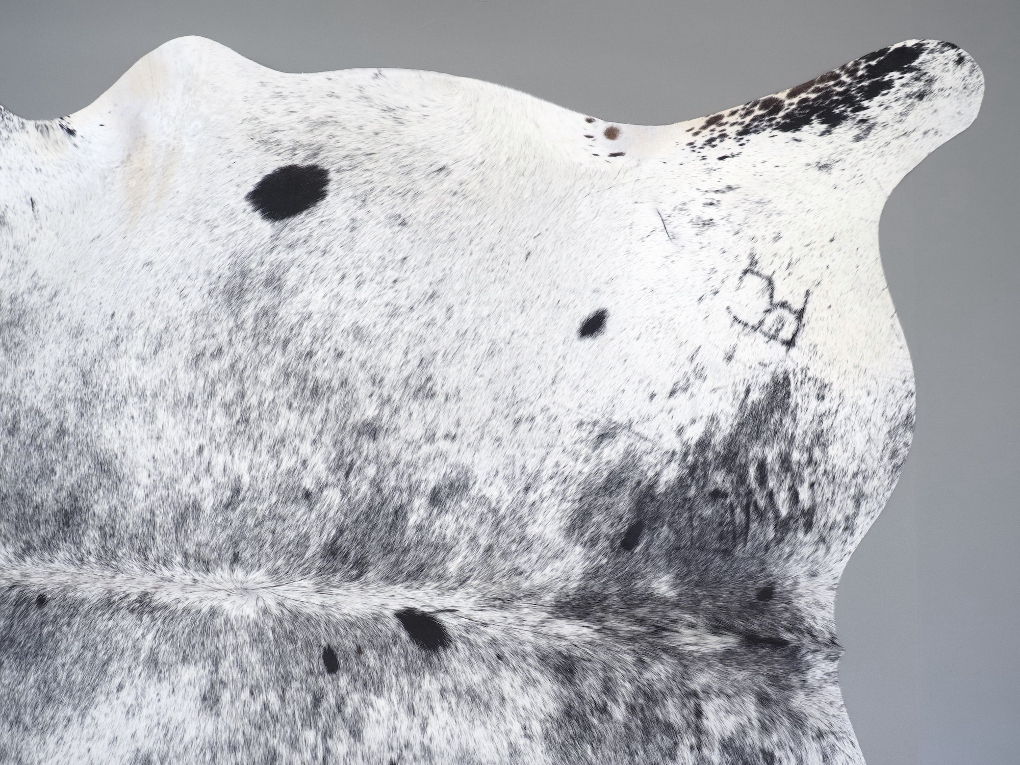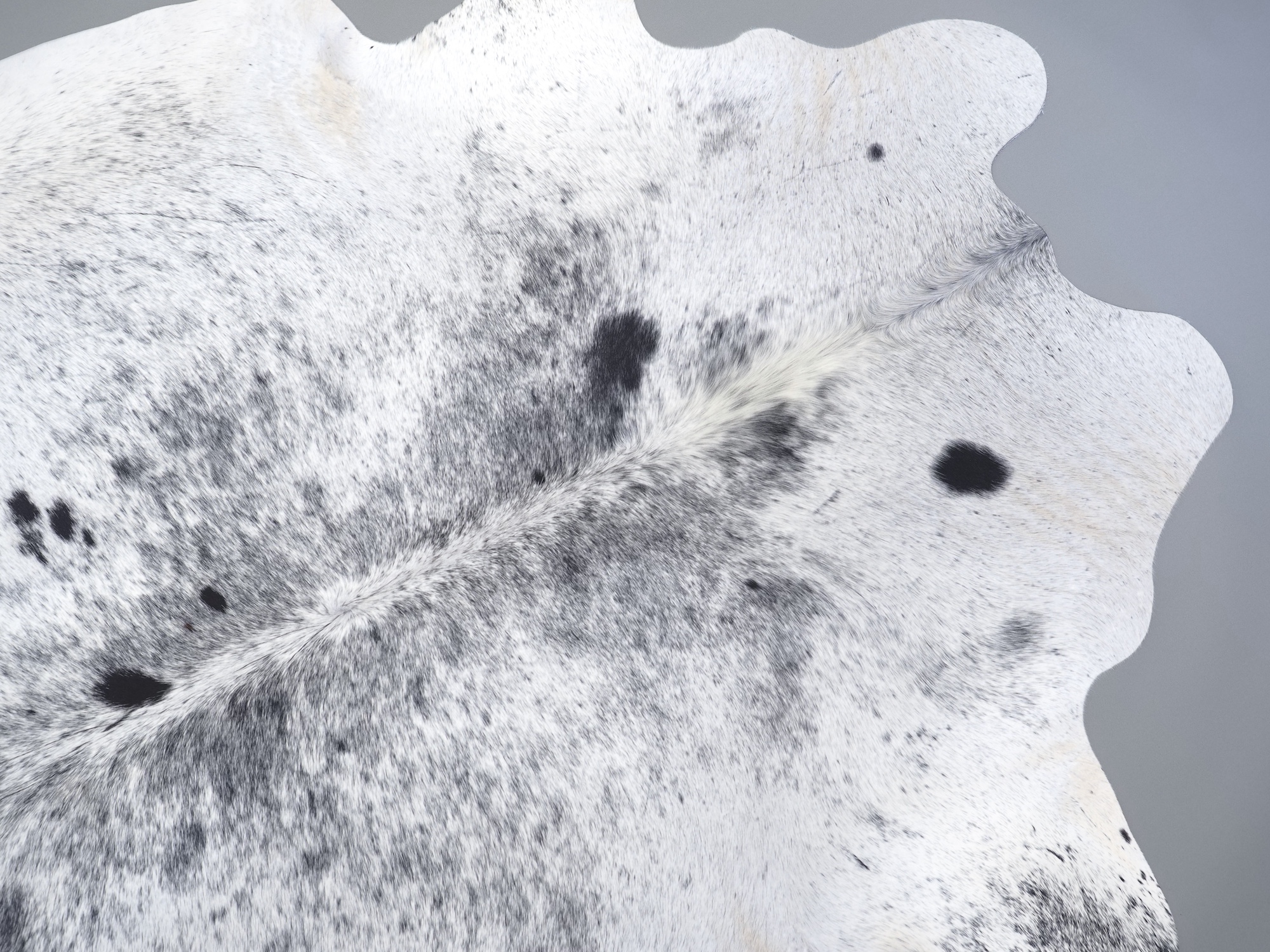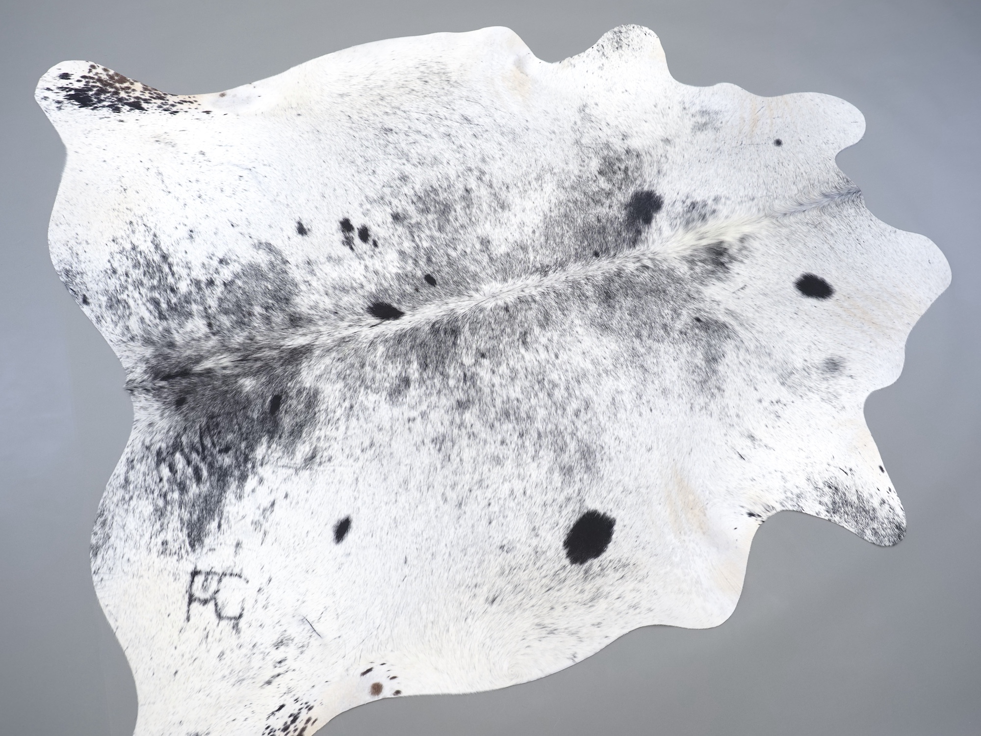 Шкура коровья натуральная соль и перец - порода имеет вкрампления черных или коричневых цветов на белом фоне волосяного покрова.