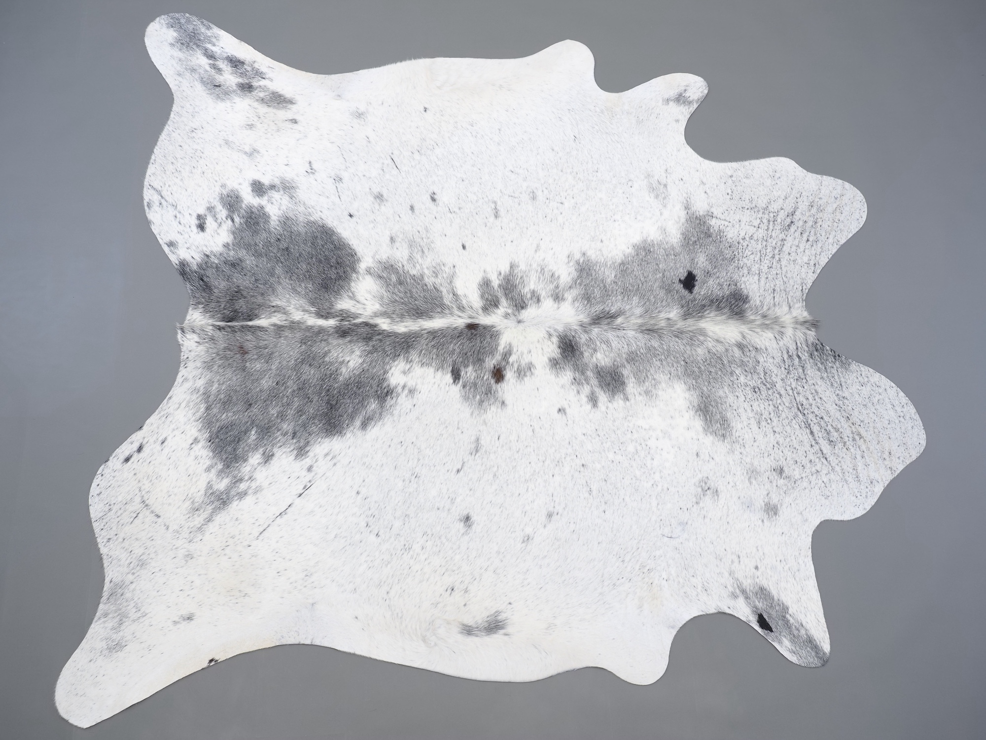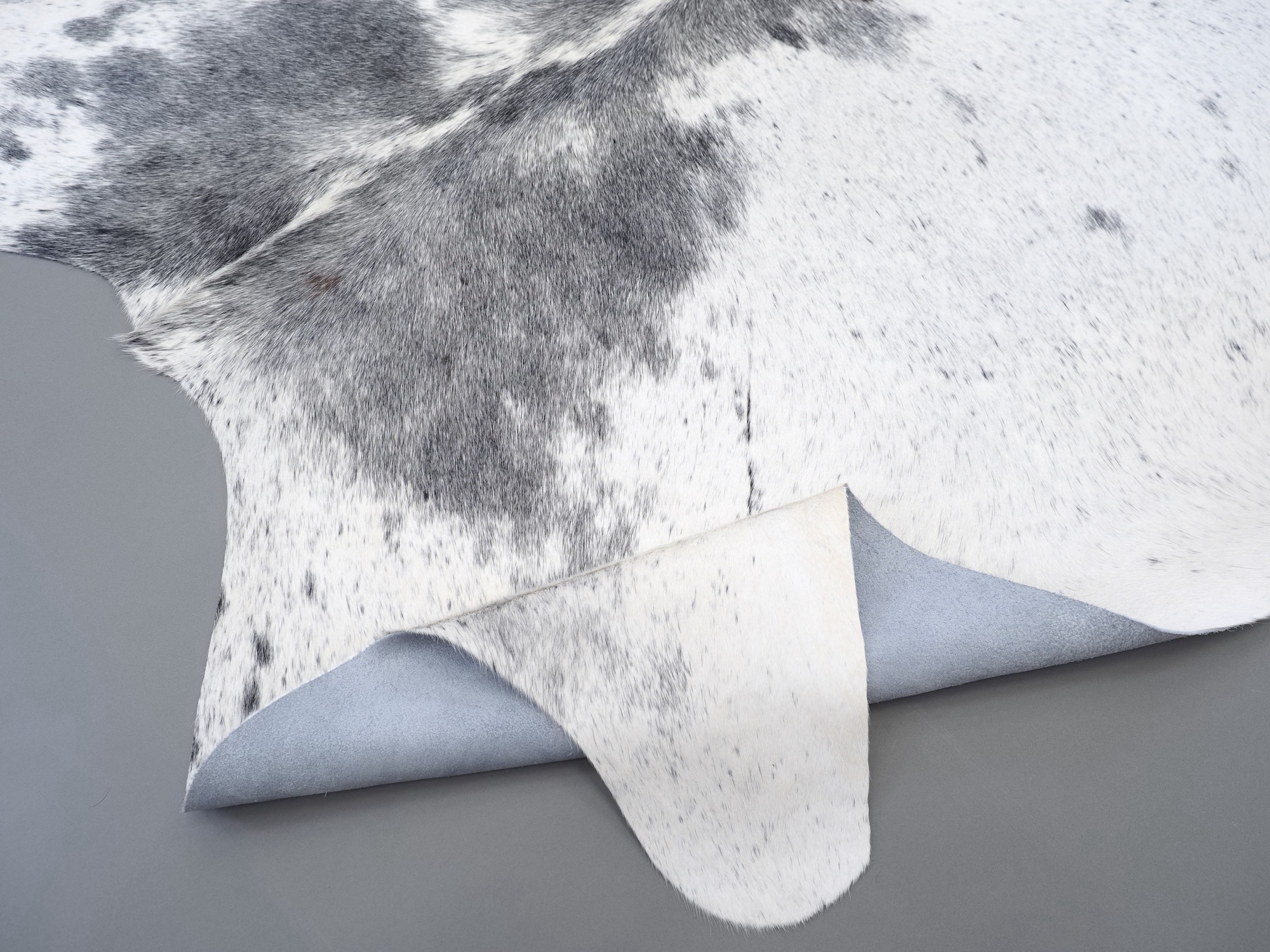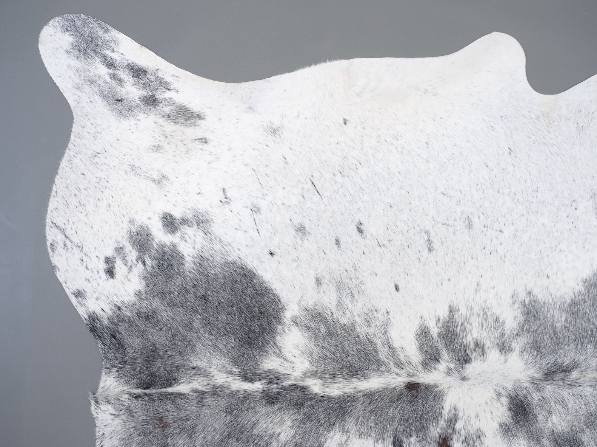 Шкура коровья натуральная соль и перец - порода имеет вкрампления черных или коричневых цветов на белом фоне волосяного покрова.