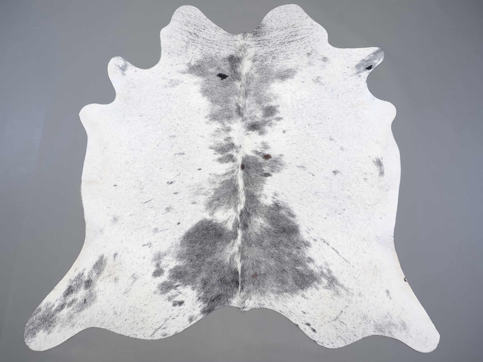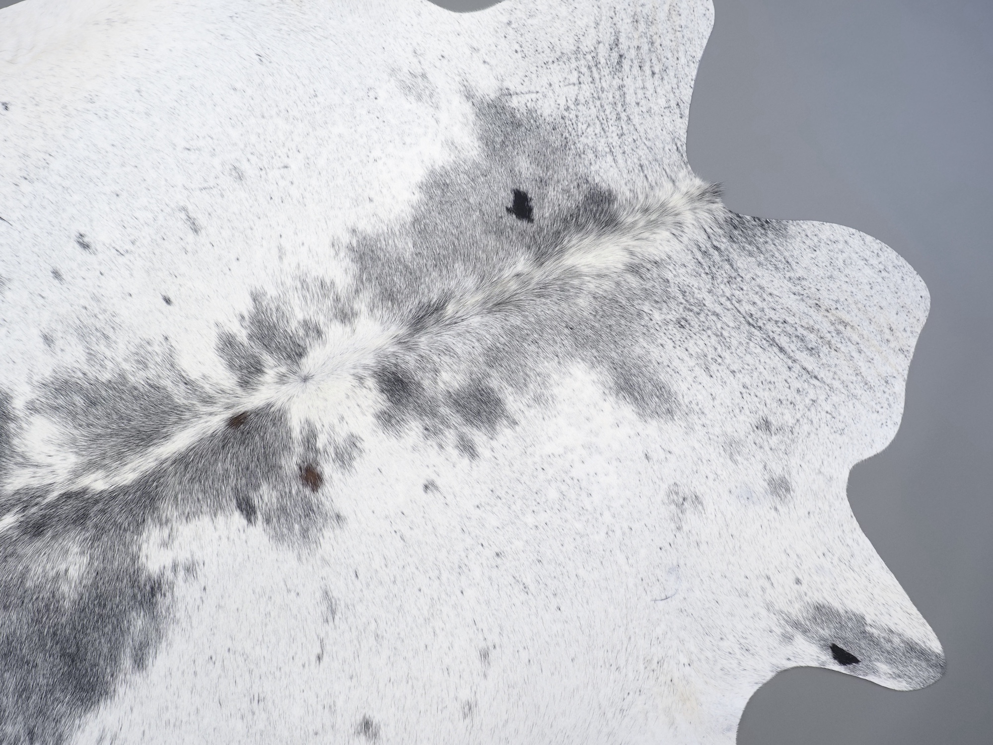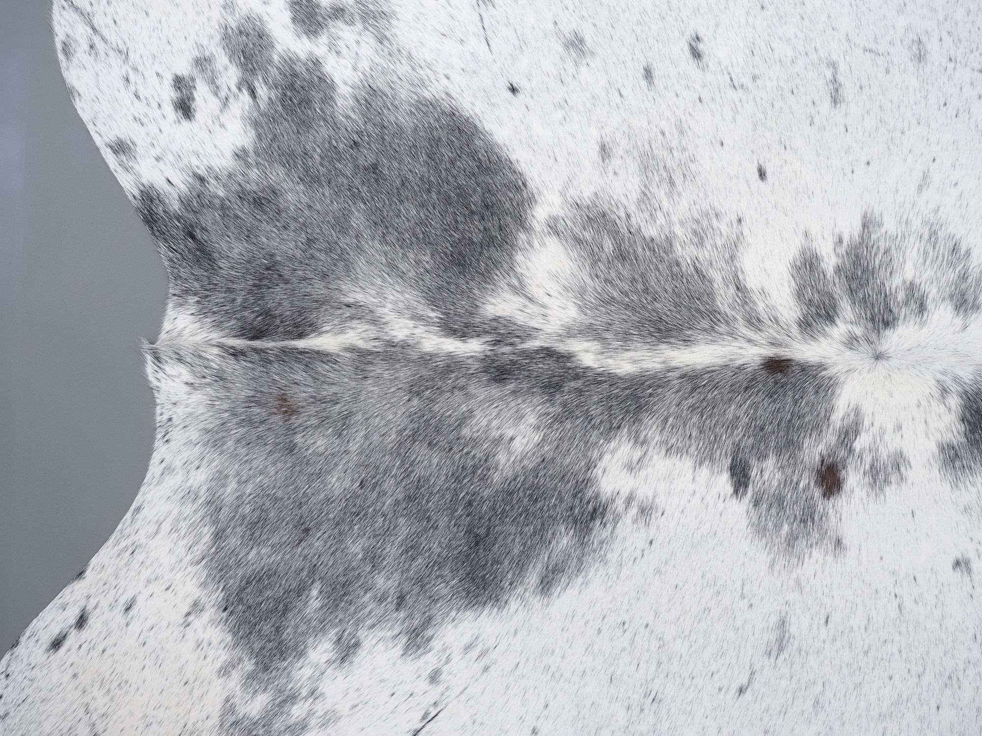 Шкура коровья натуральная соль и перец - порода имеет вкрампления черных или коричневых цветов на белом фоне волосяного покрова.