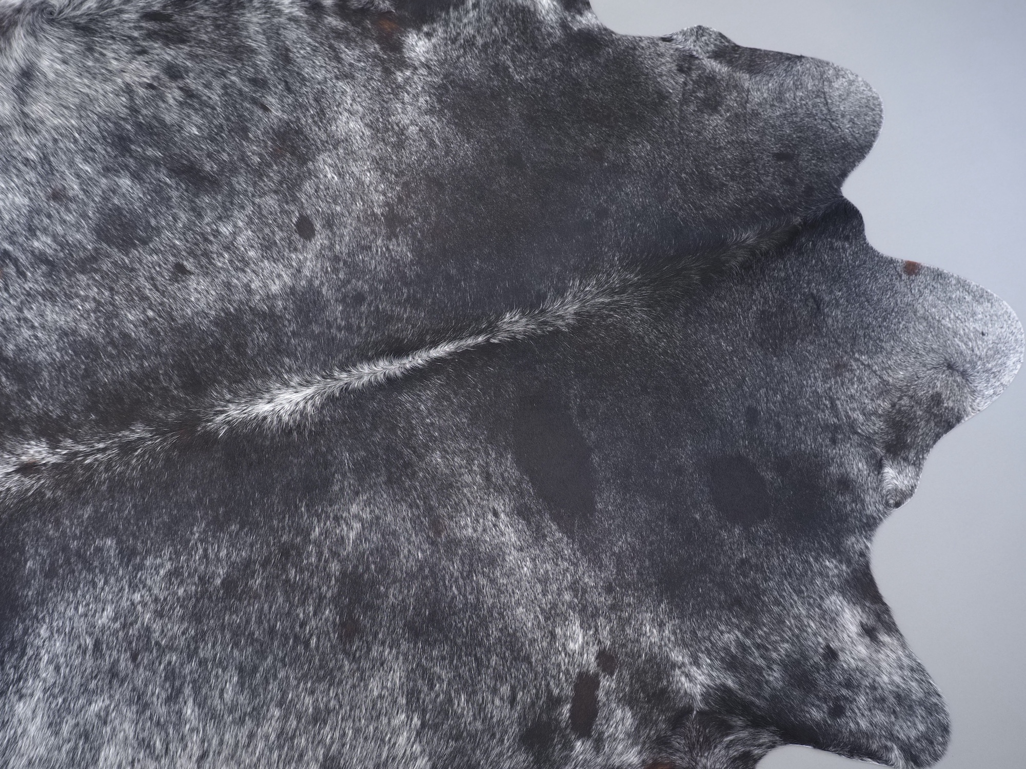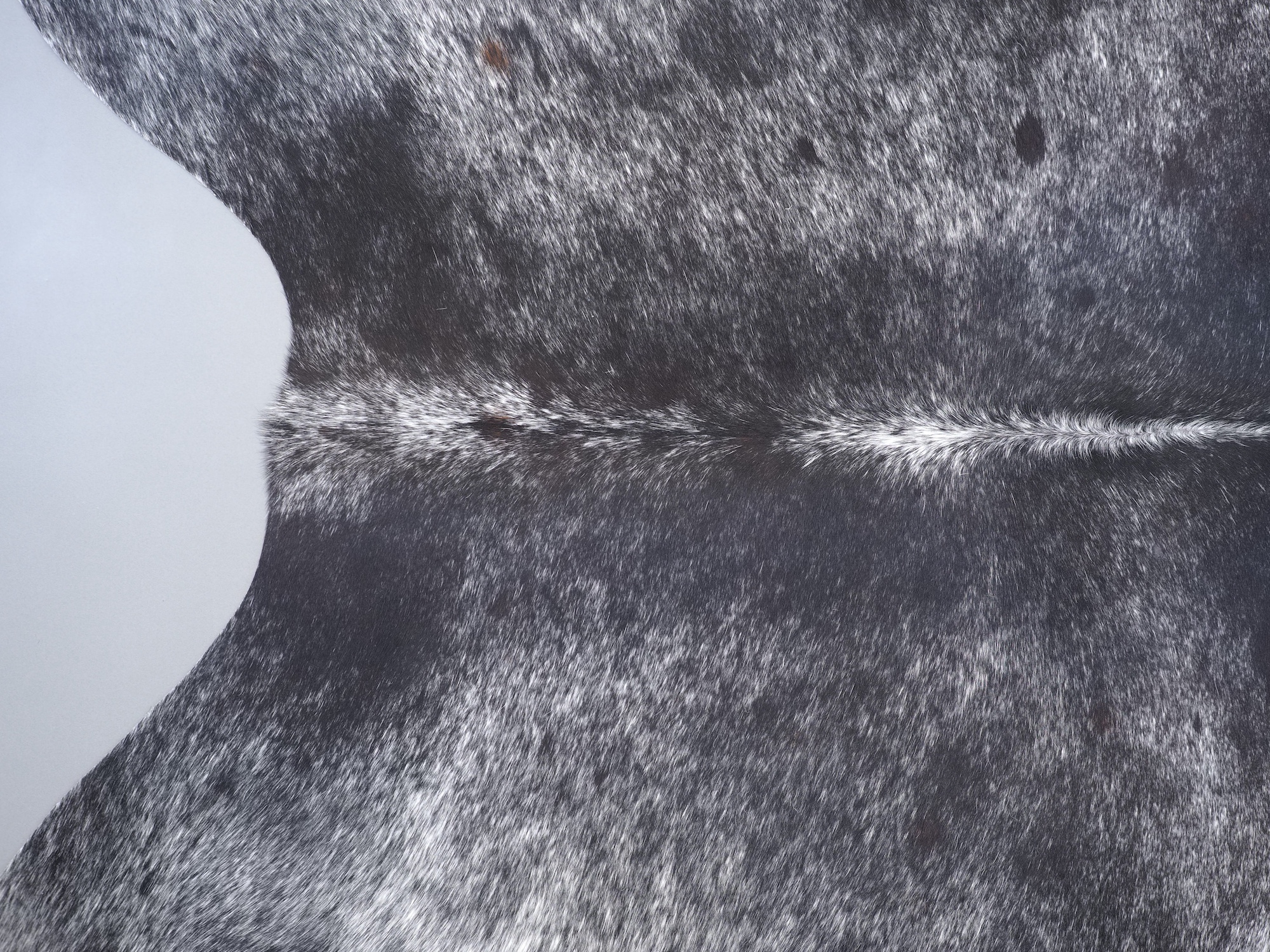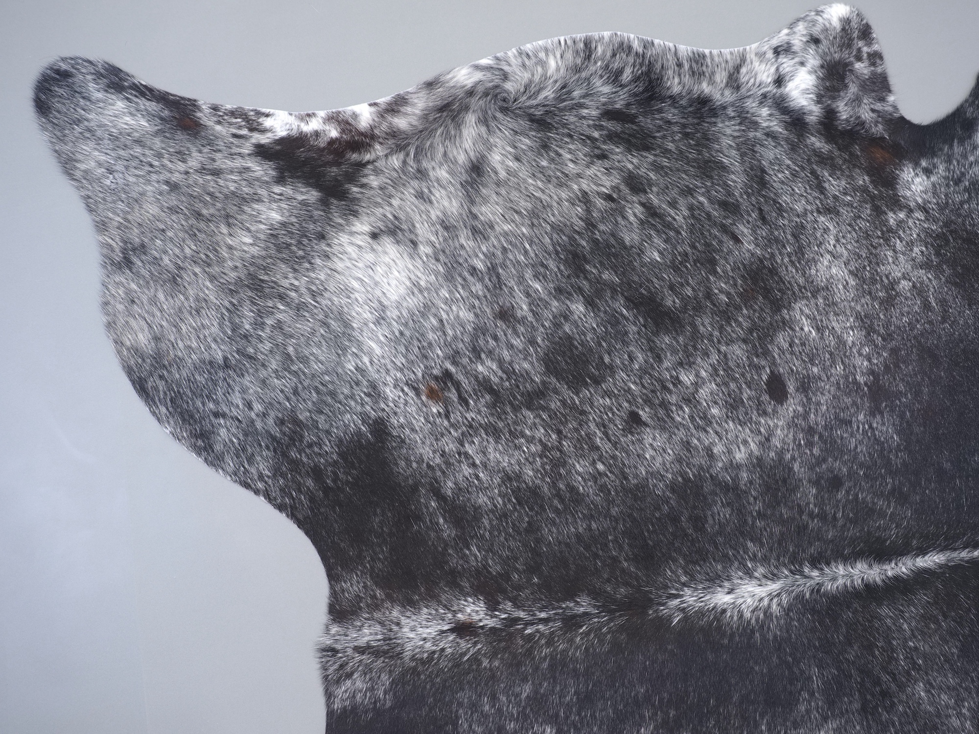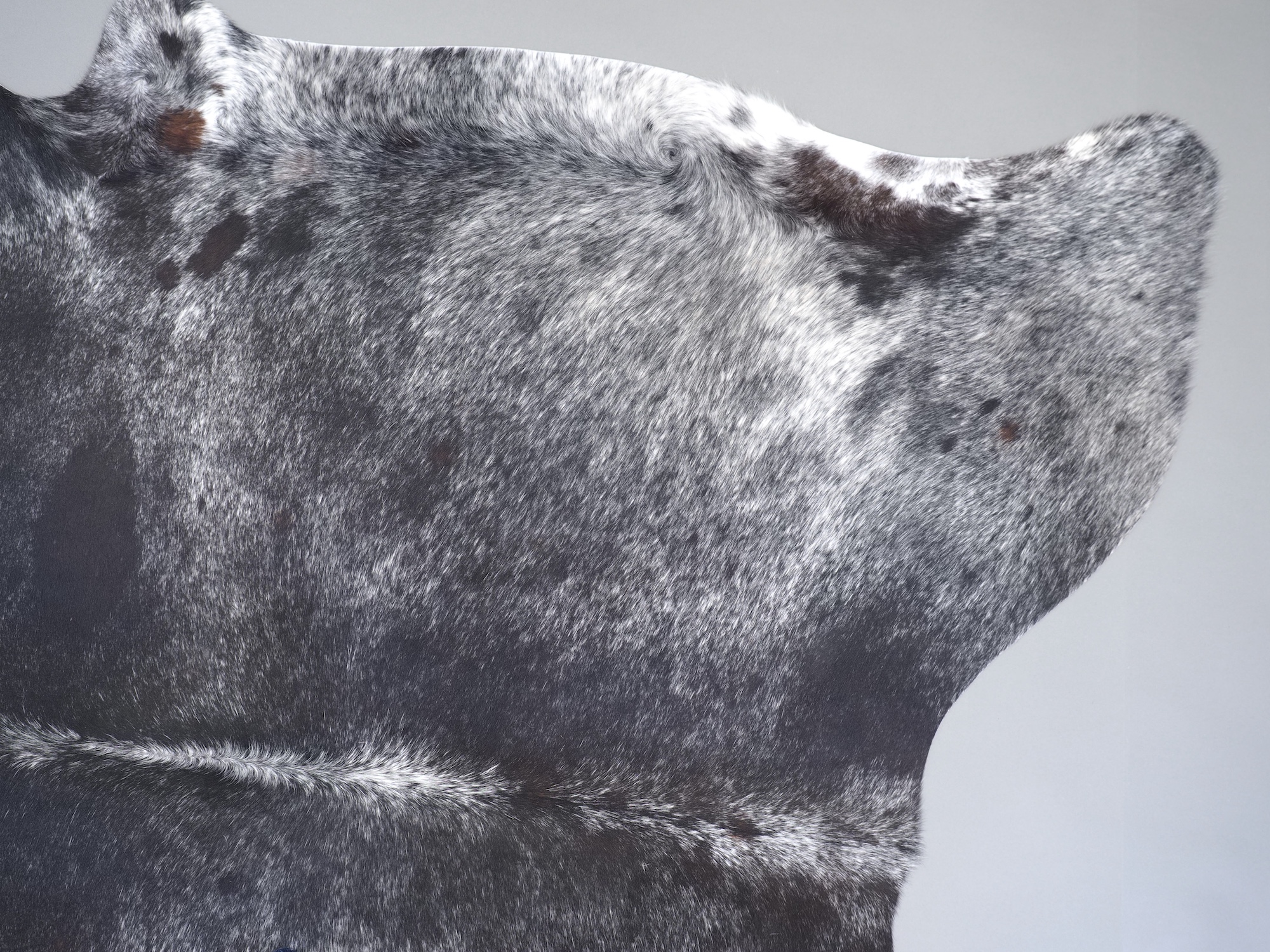 Шкура коровья натуральная соль и перец - порода имеет вкрампления черных или коричневых цветов на белом фоне волосяного покрова.