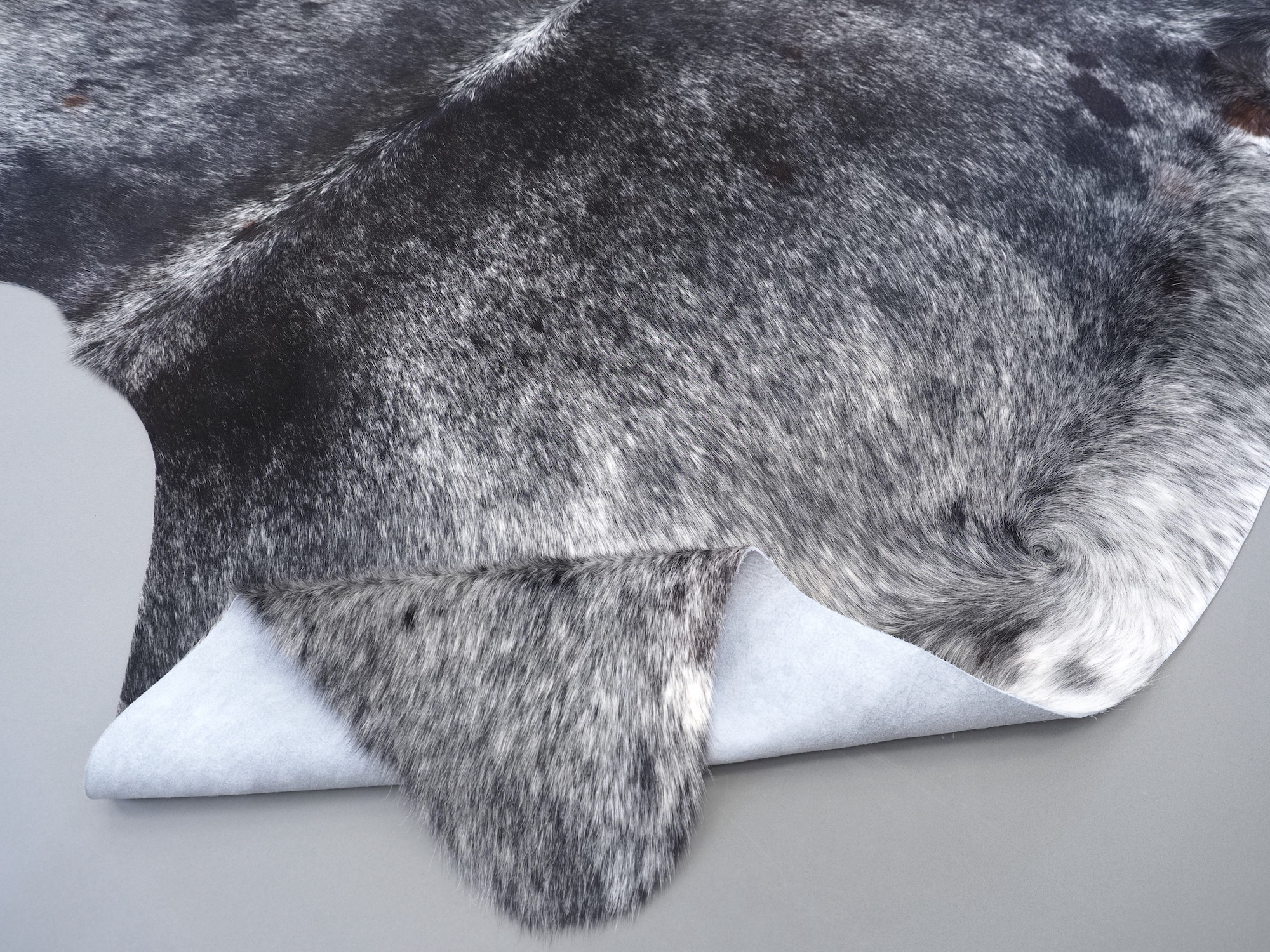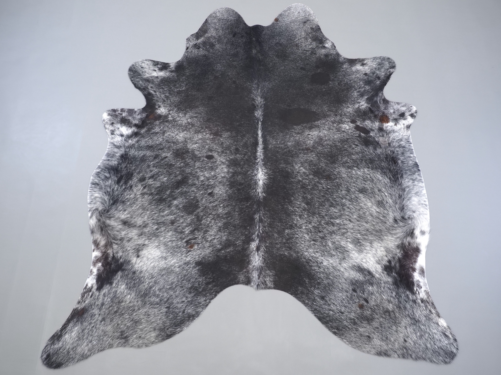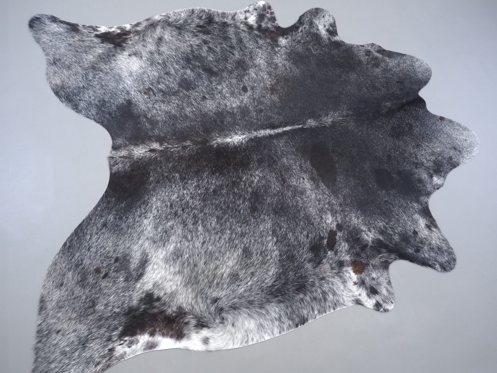 Шкура коровья натуральная соль и перец - порода имеет вкрампления черных или коричневых цветов на белом фоне волосяного покрова.