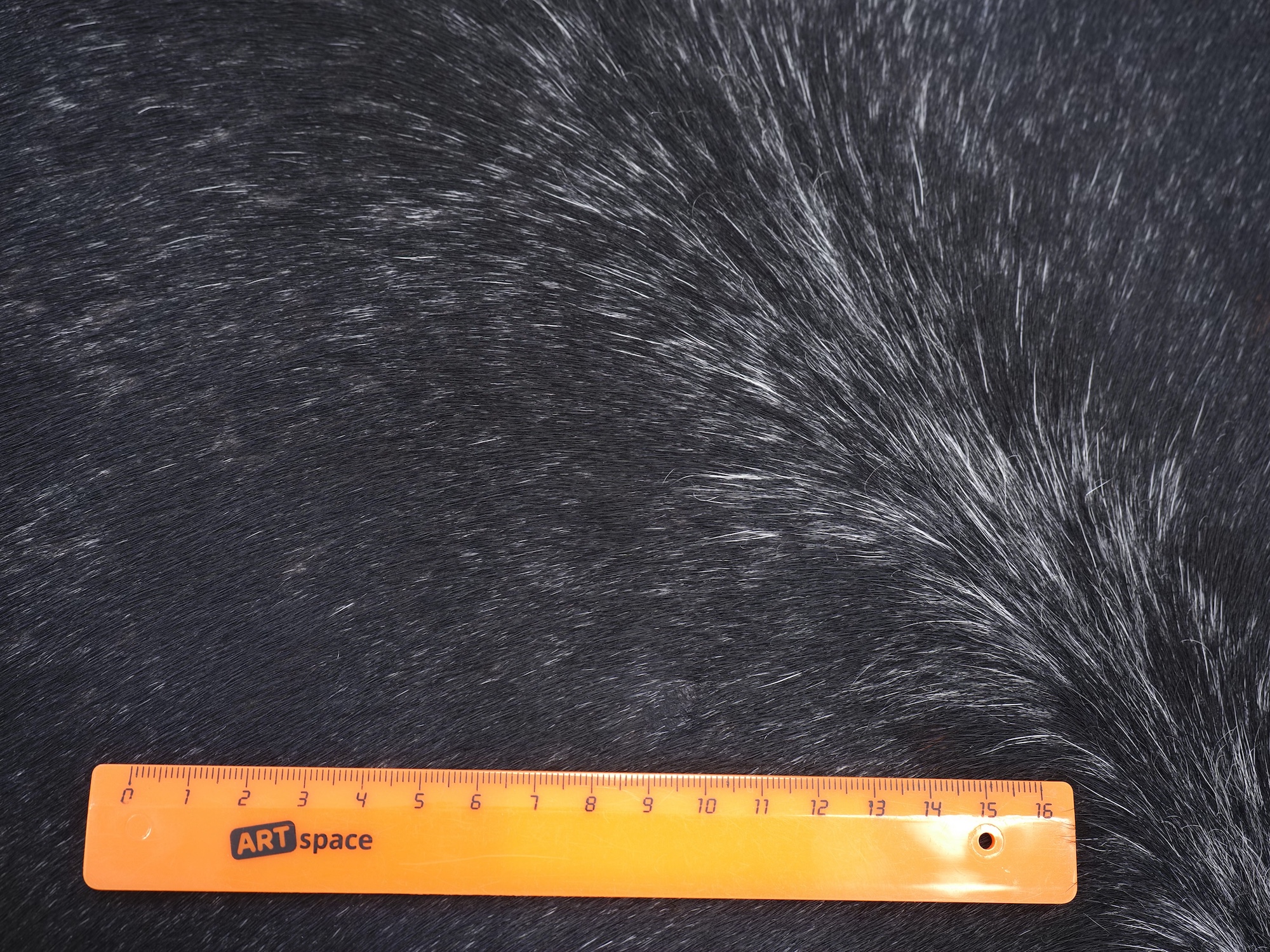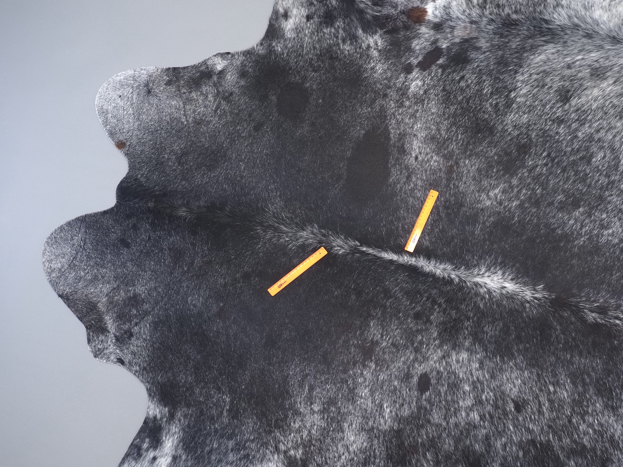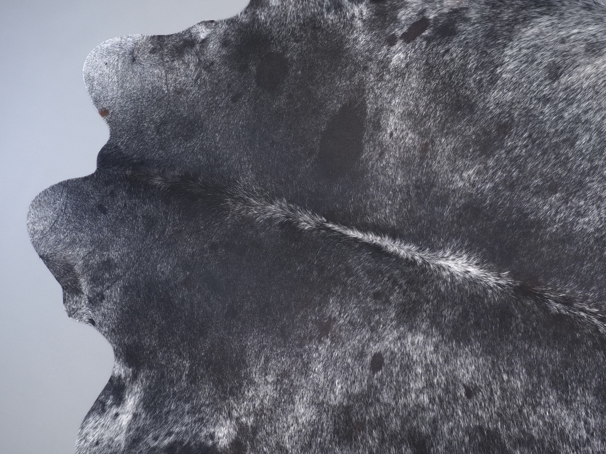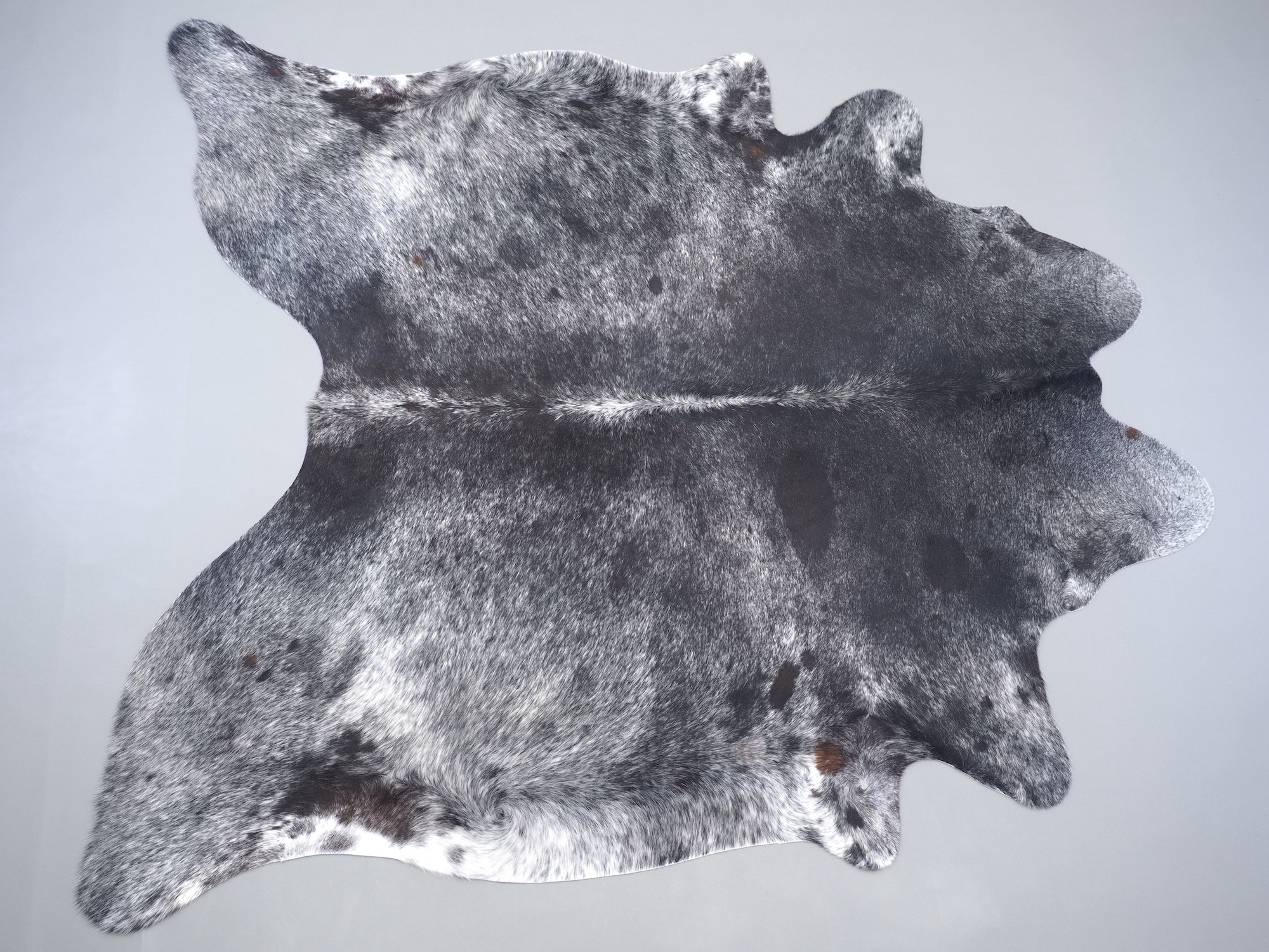 Шкура коровья натуральная соль и перец - порода имеет вкрампления черных или коричневых цветов на белом фоне волосяного покрова.