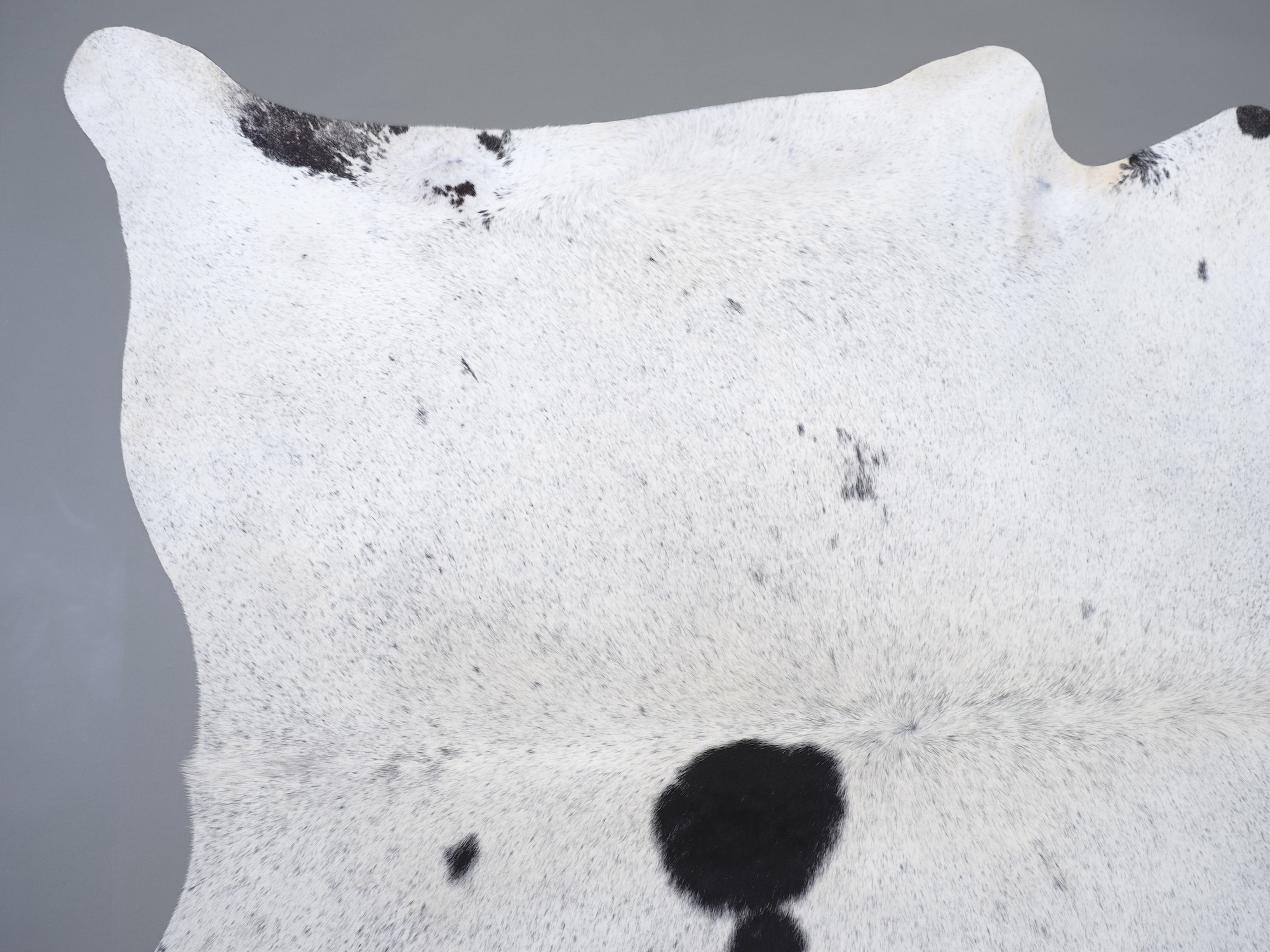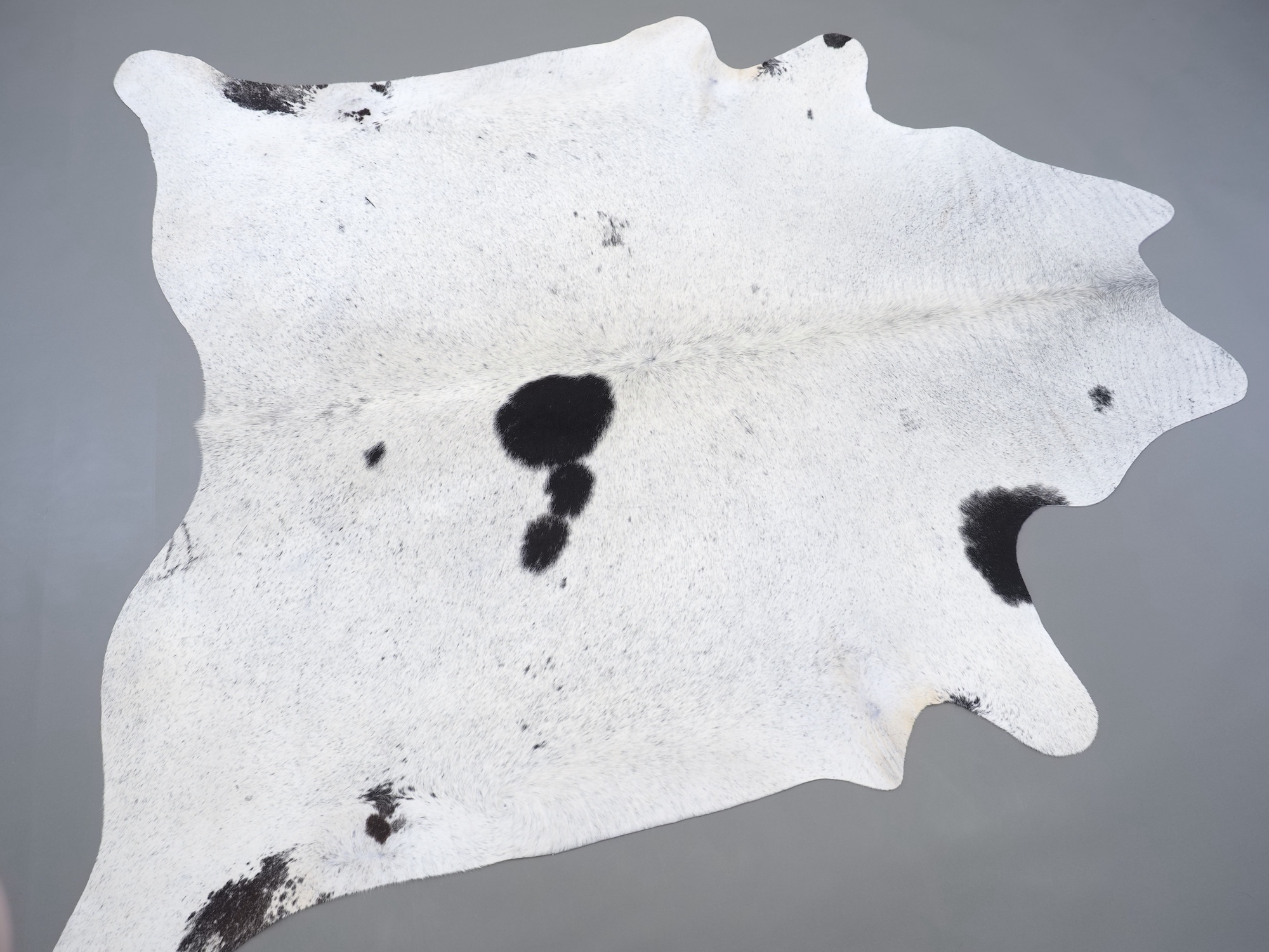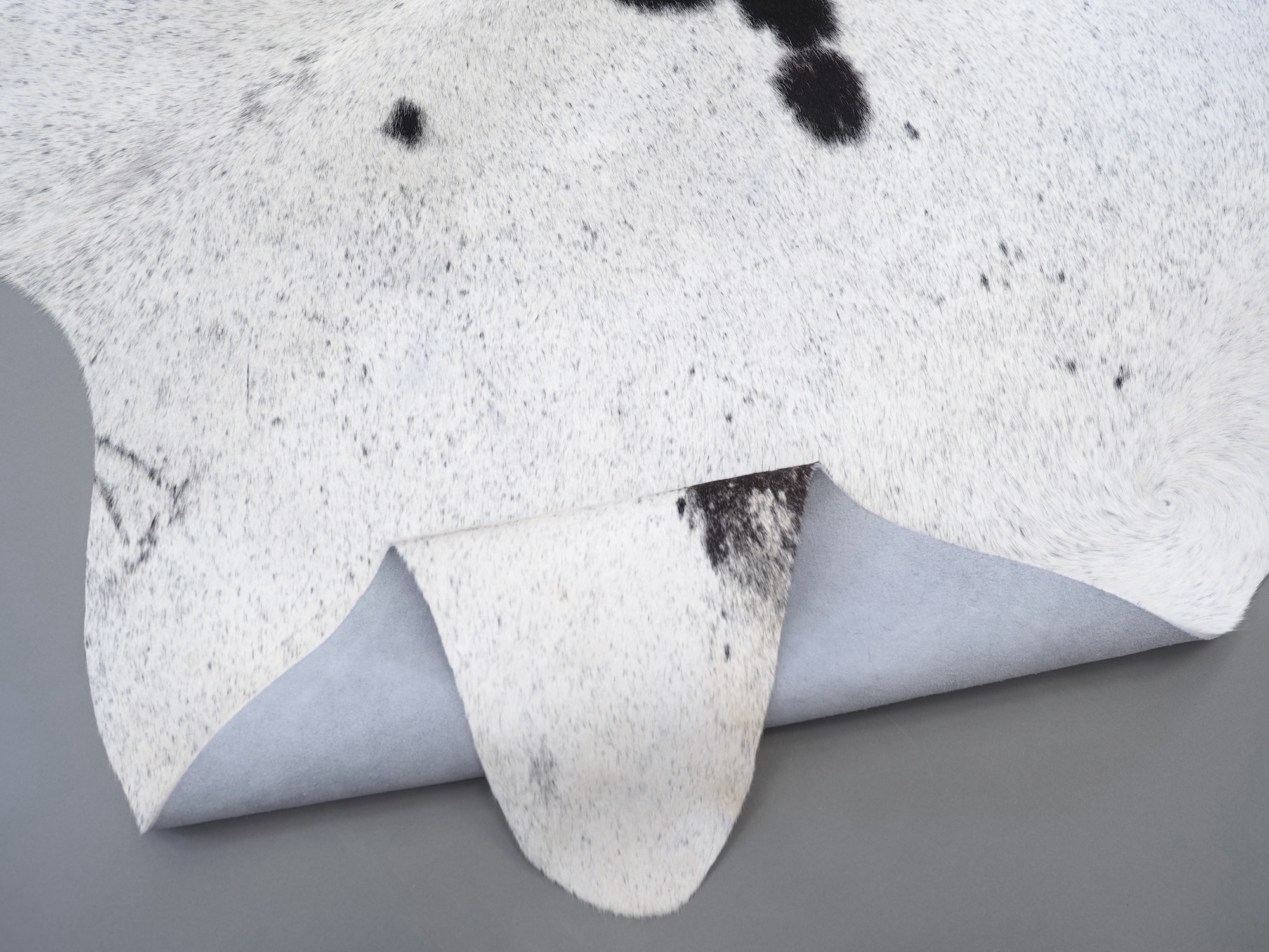 Шкура коровья натуральная соль и перец - порода имеет вкрампления черных или коричневых цветов на белом фоне волосяного покрова.