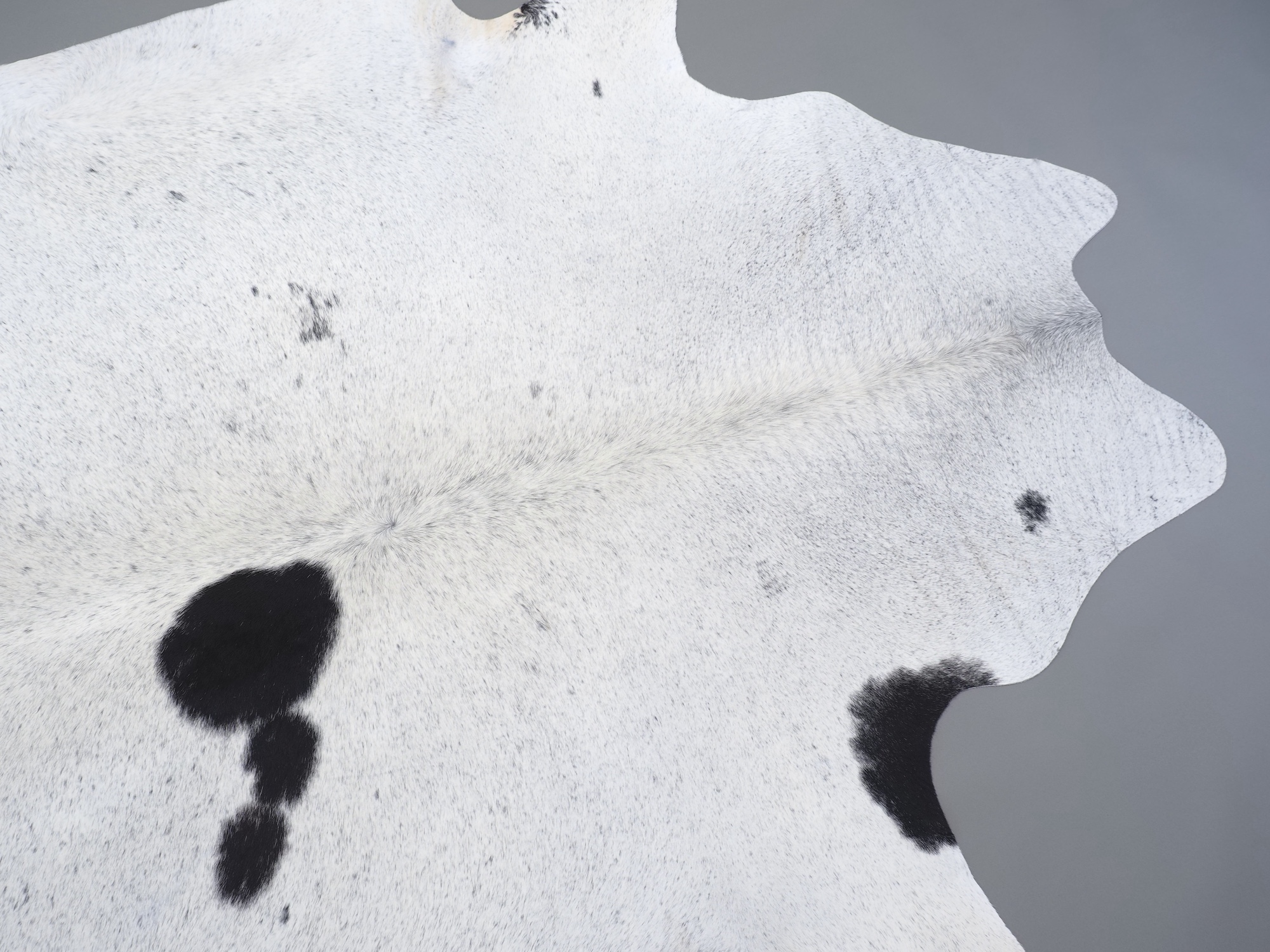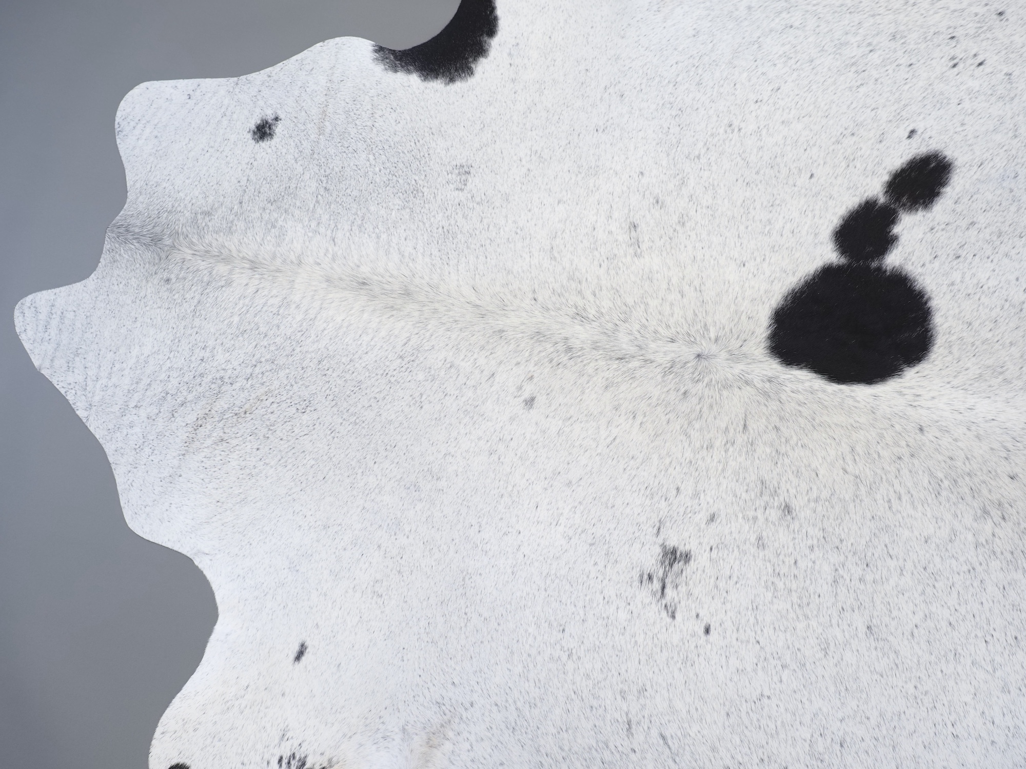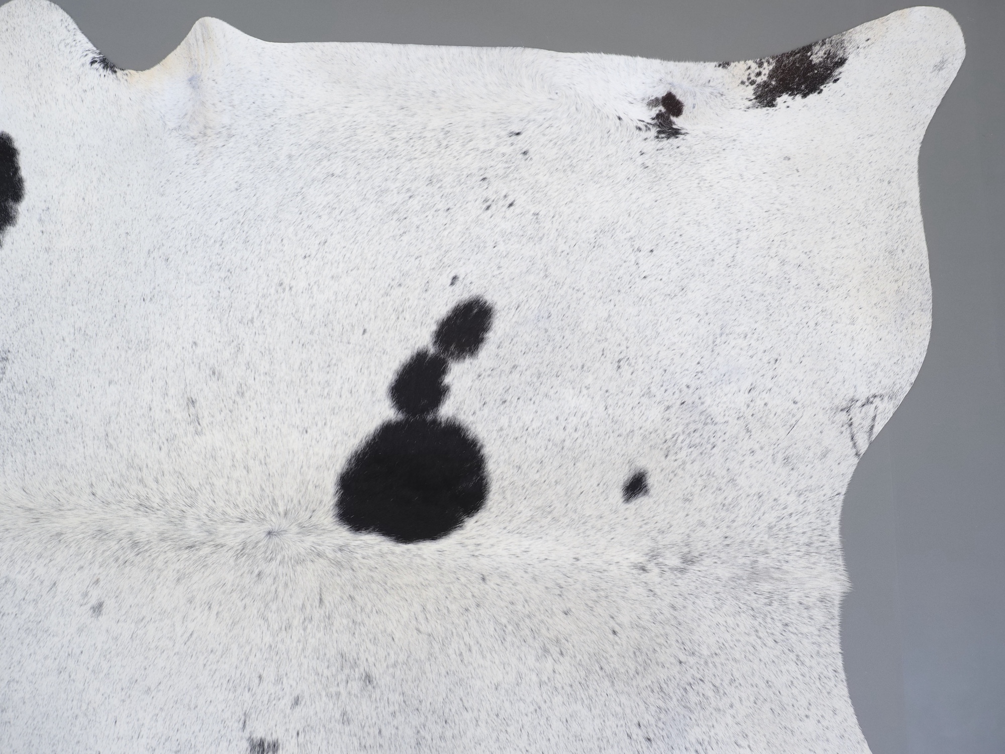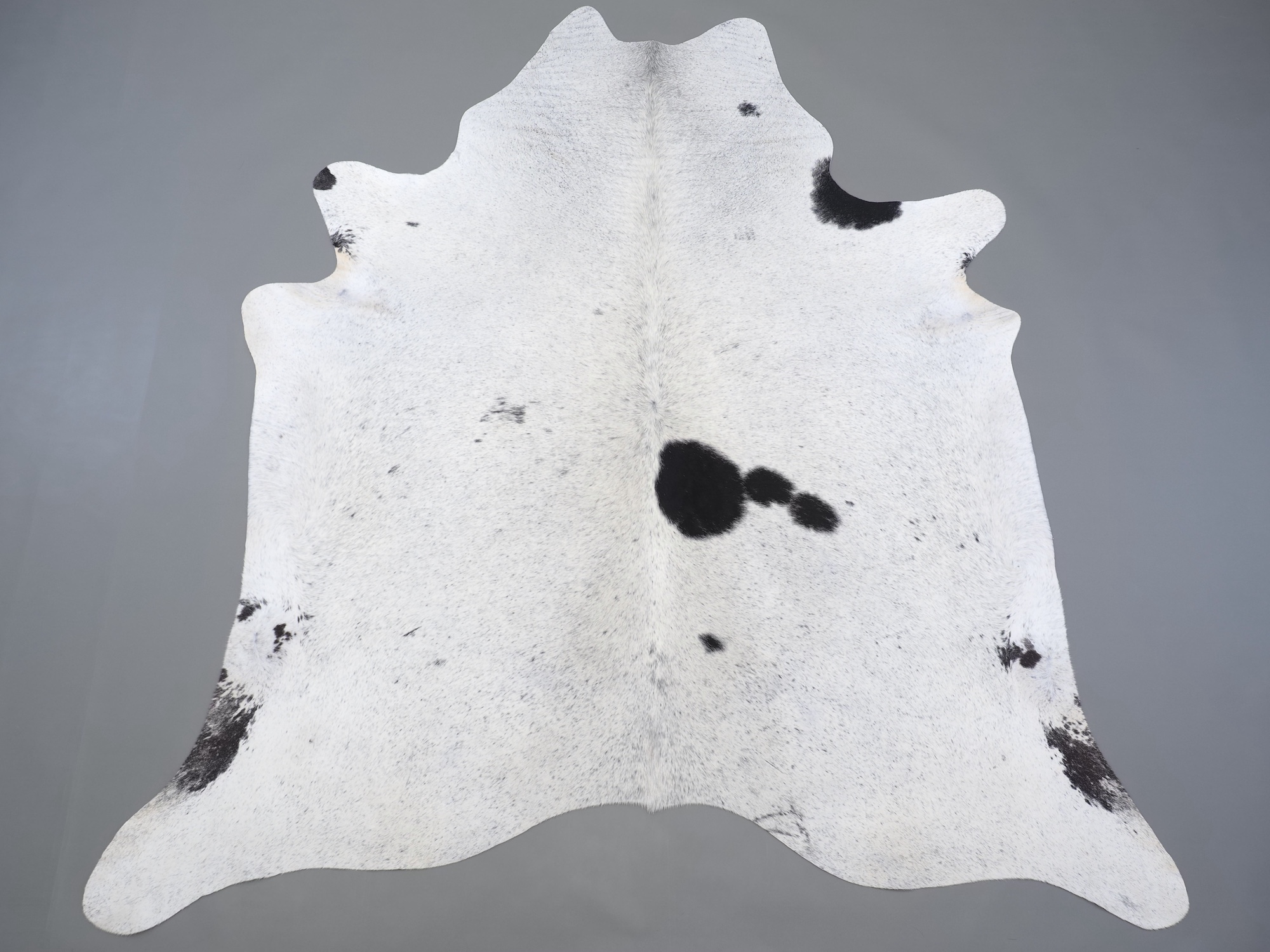 Шкура коровья натуральная соль и перец - порода имеет вкрампления черных или коричневых цветов на белом фоне волосяного покрова.