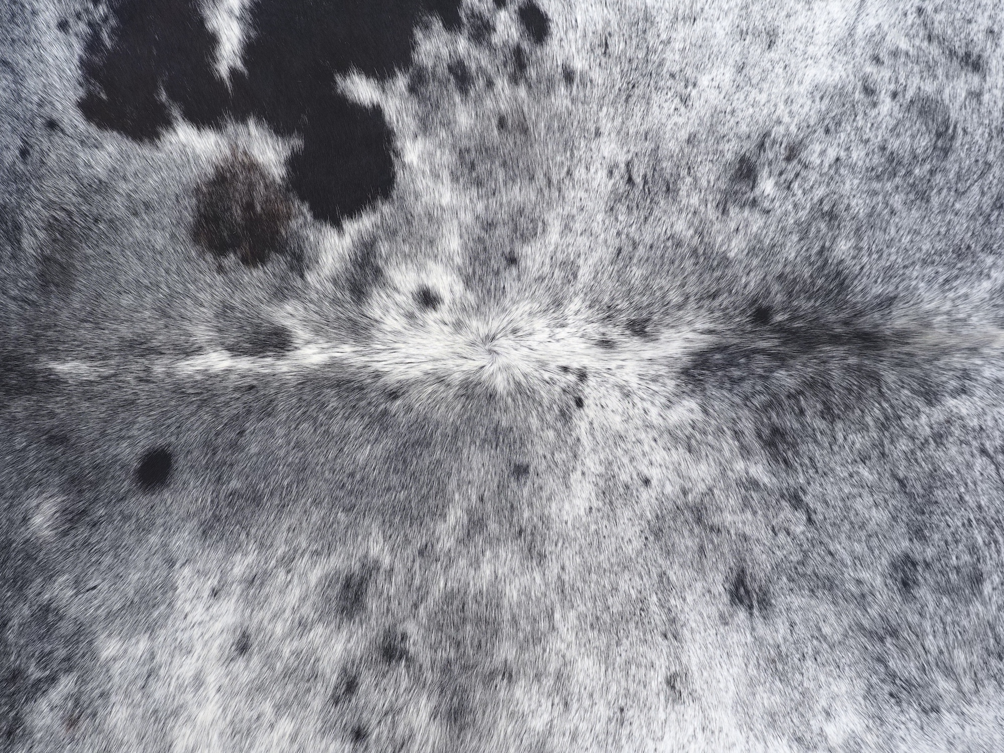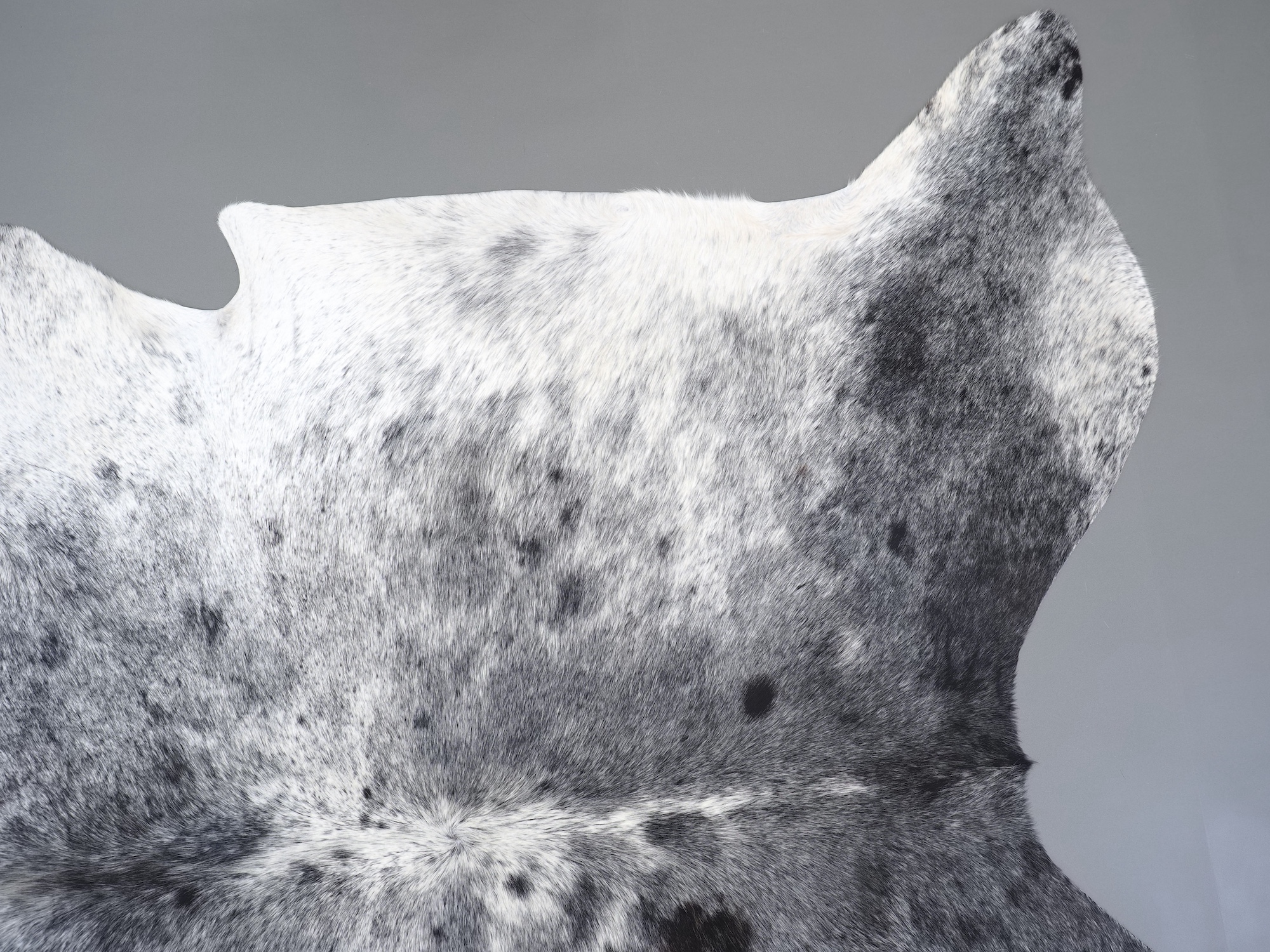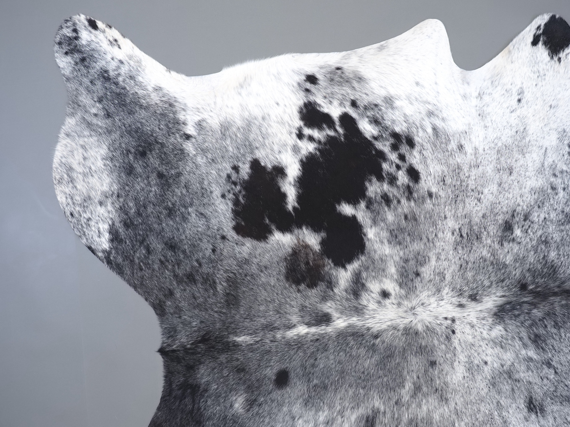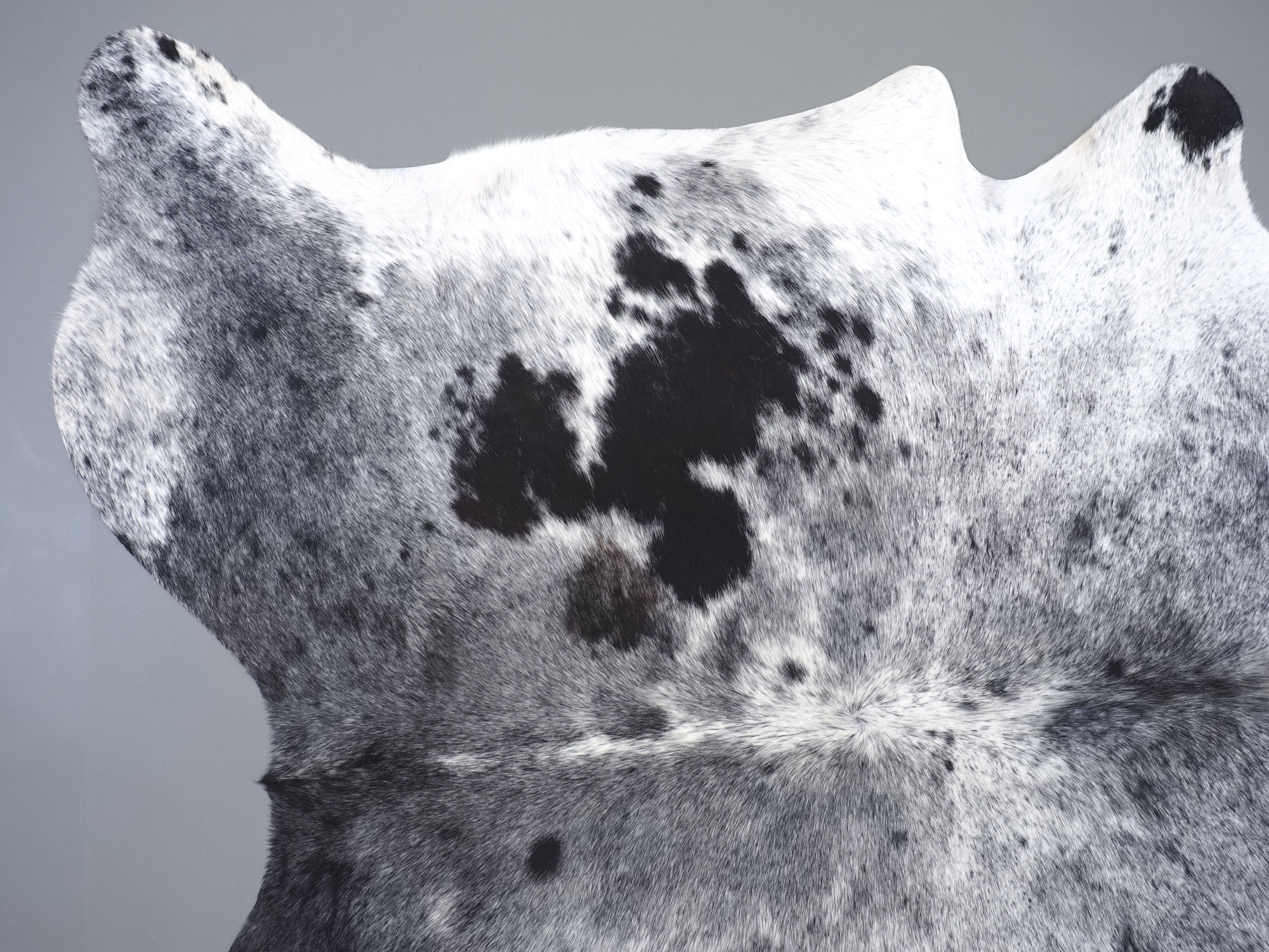 Шкура коровья натуральная соль и перец - порода имеет вкрампления черных или коричневых цветов на белом фоне волосяного покрова.