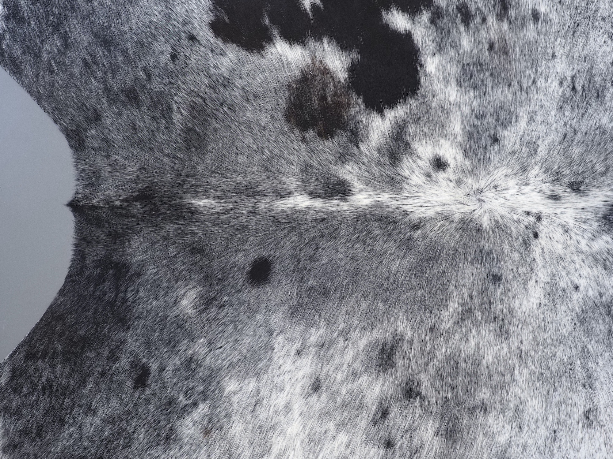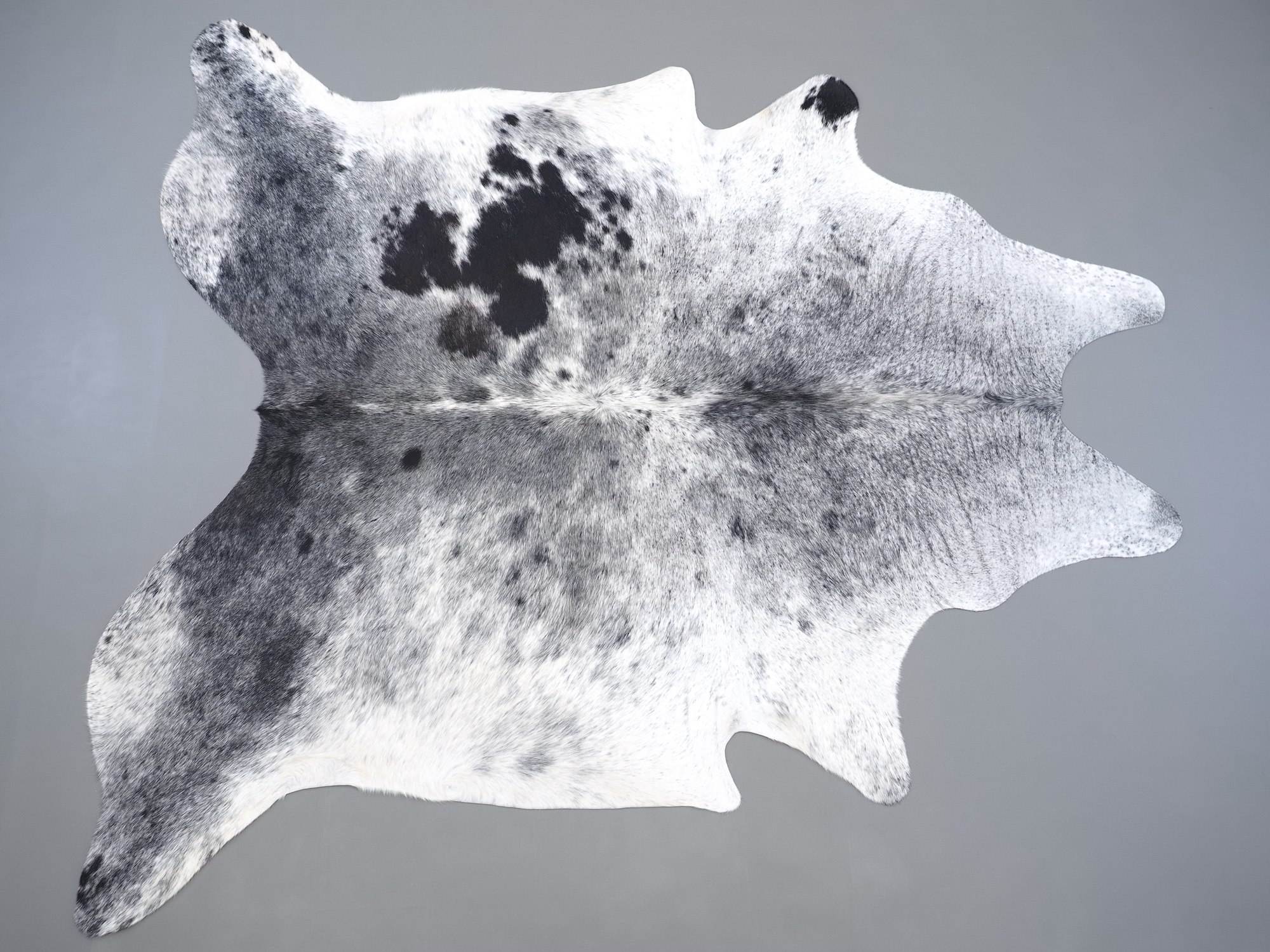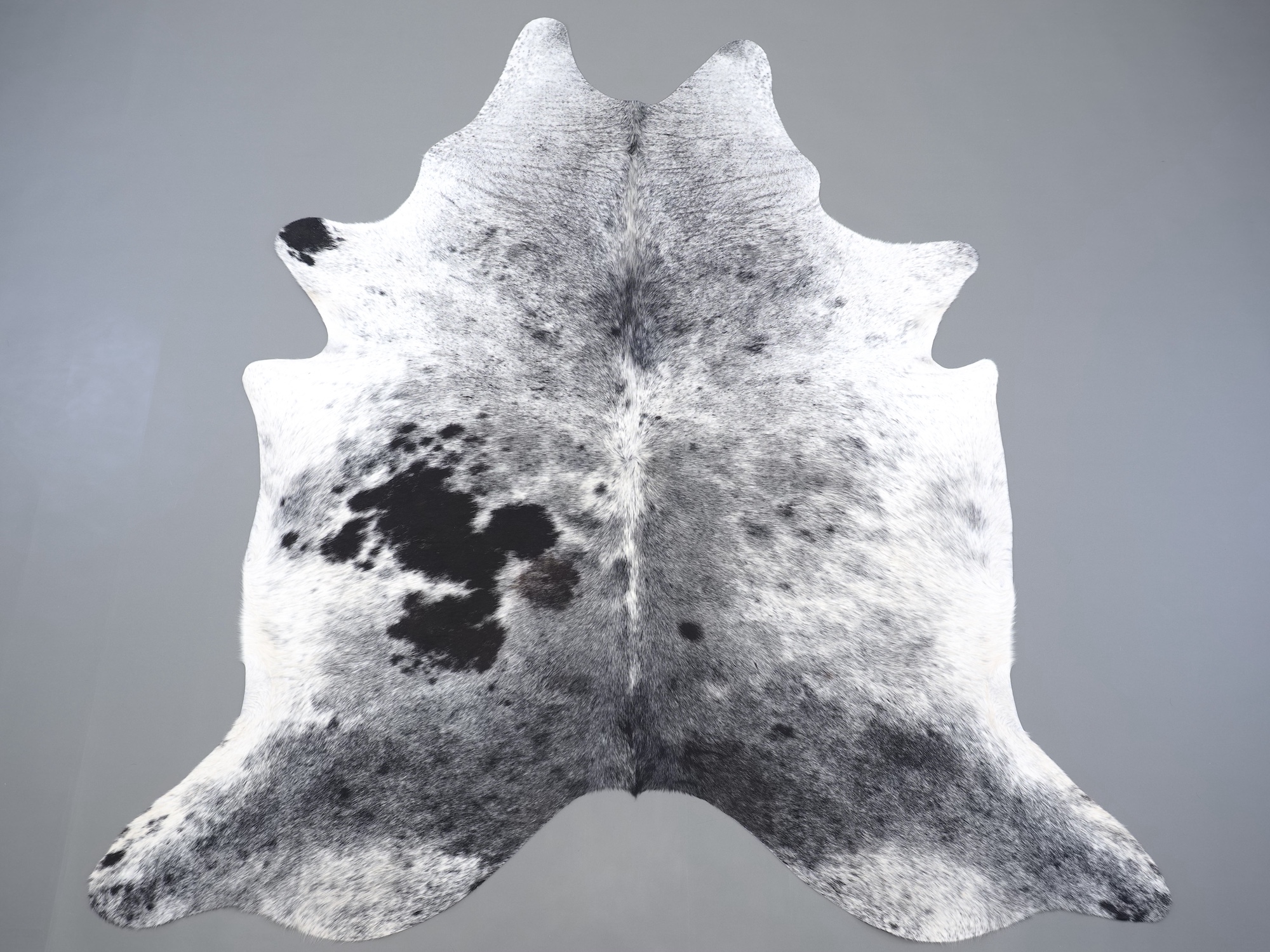 Шкура коровья натуральная соль и перец - порода имеет вкрампления черных или коричневых цветов на белом фоне волосяного покрова.