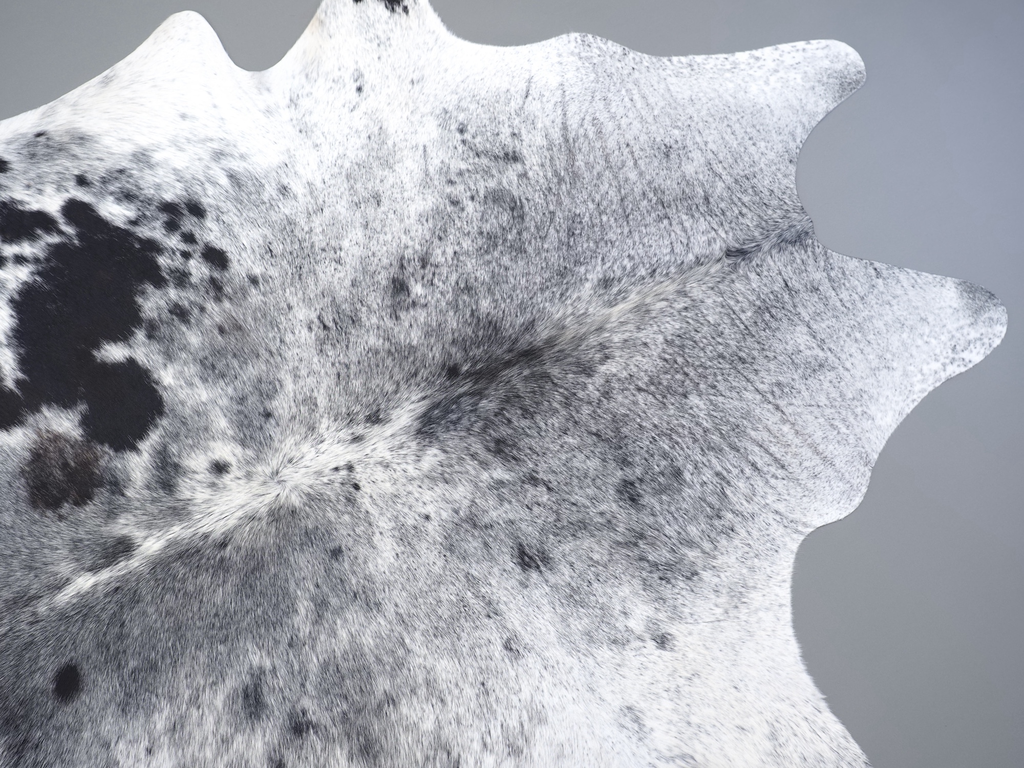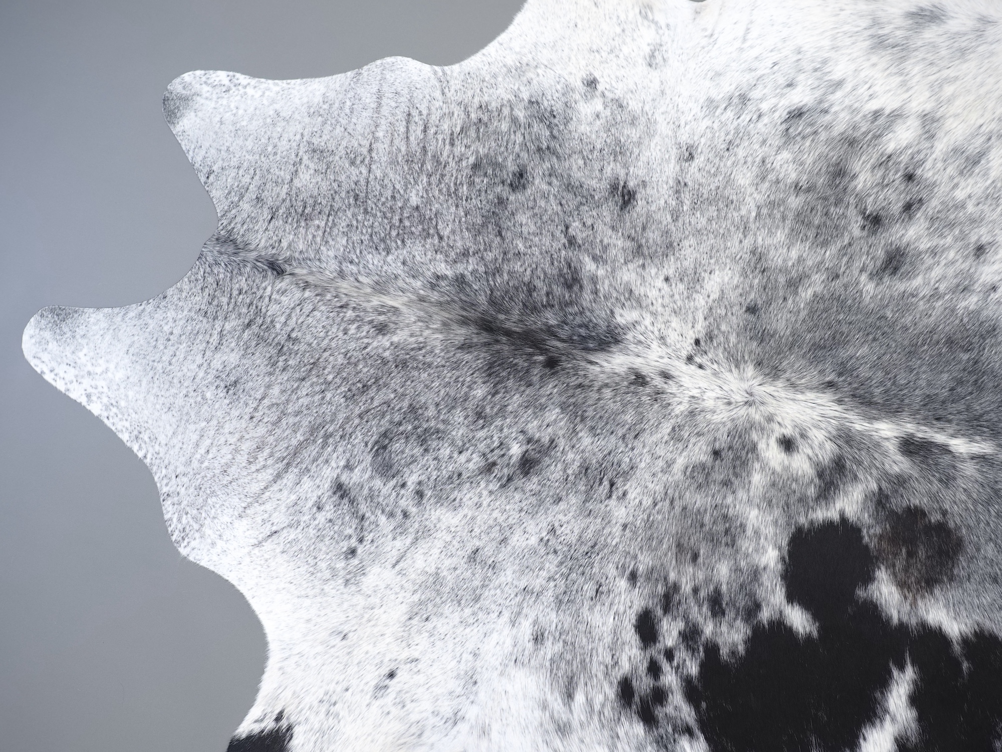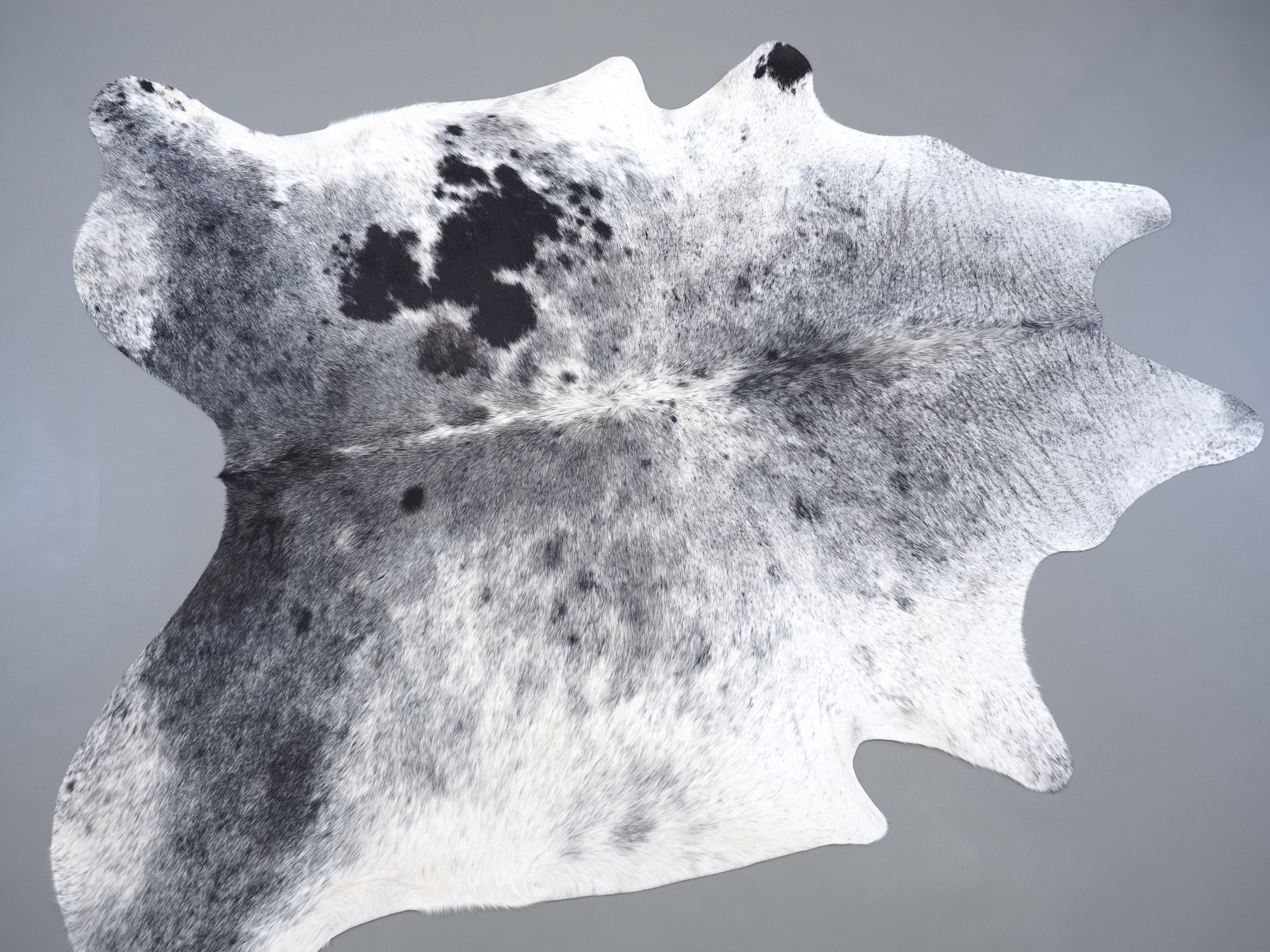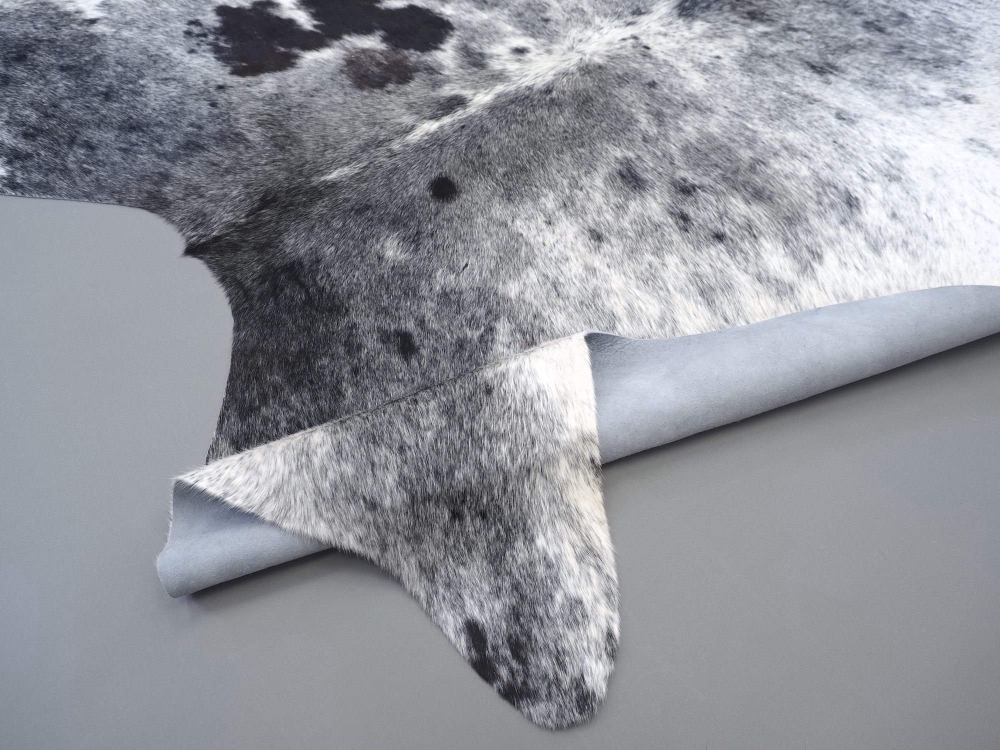 Шкура коровья натуральная соль и перец - порода имеет вкрампления черных или коричневых цветов на белом фоне волосяного покрова.